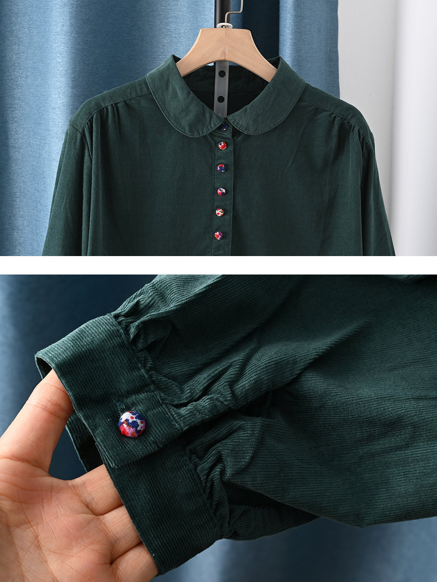 Women Artsy Colorful Button Corduroy Shirt