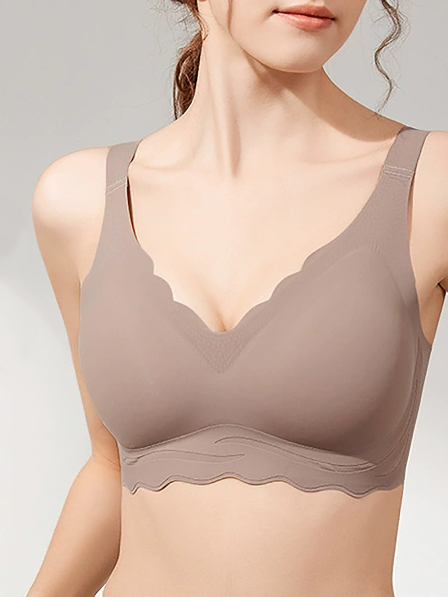 Women Artsy Pure Color Soft Support Wireless Bra