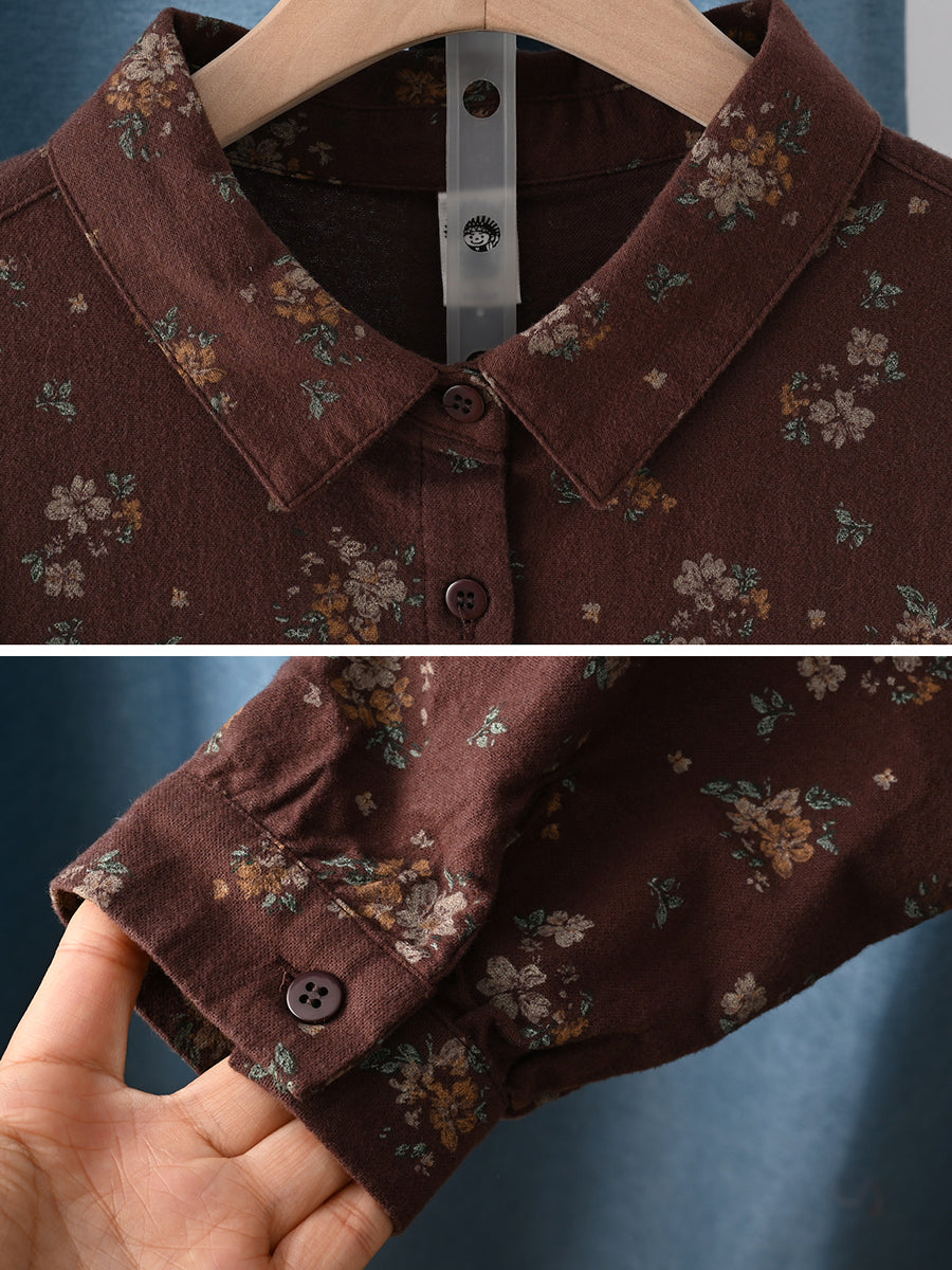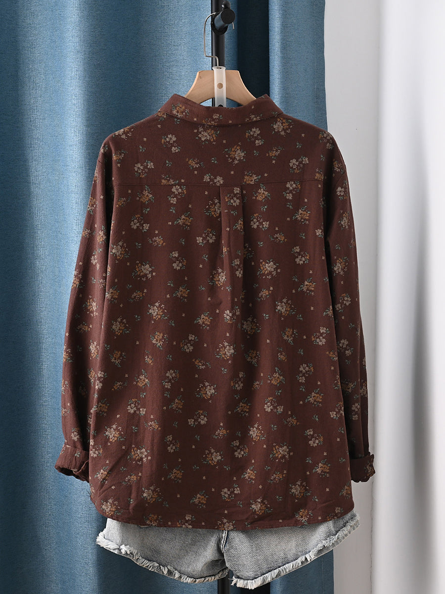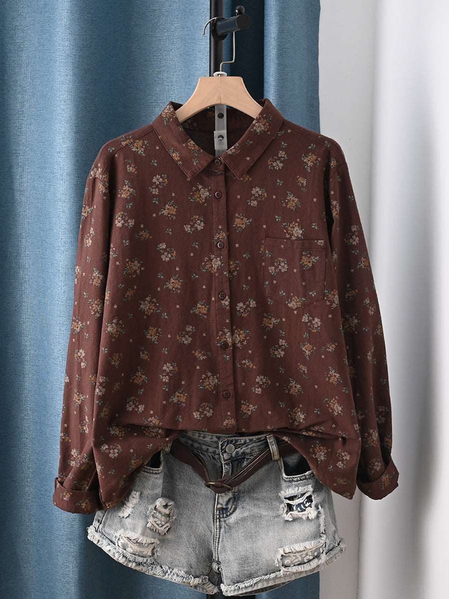 Women Artsy Spring Floral Turn-down Collar 100%Cotton Shirt