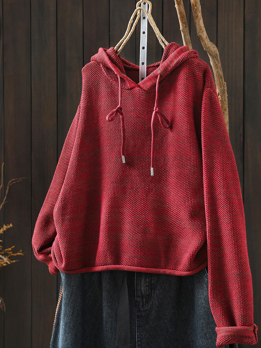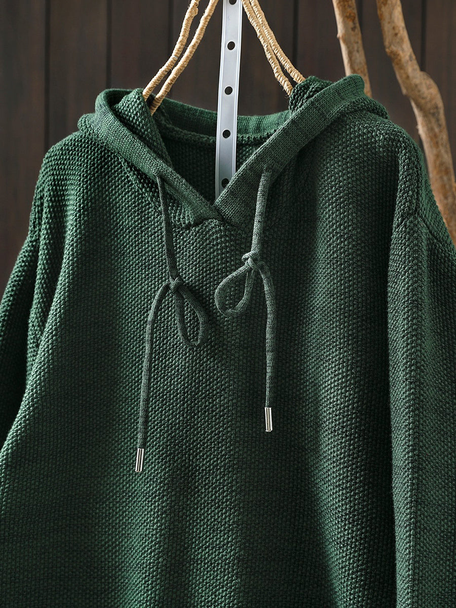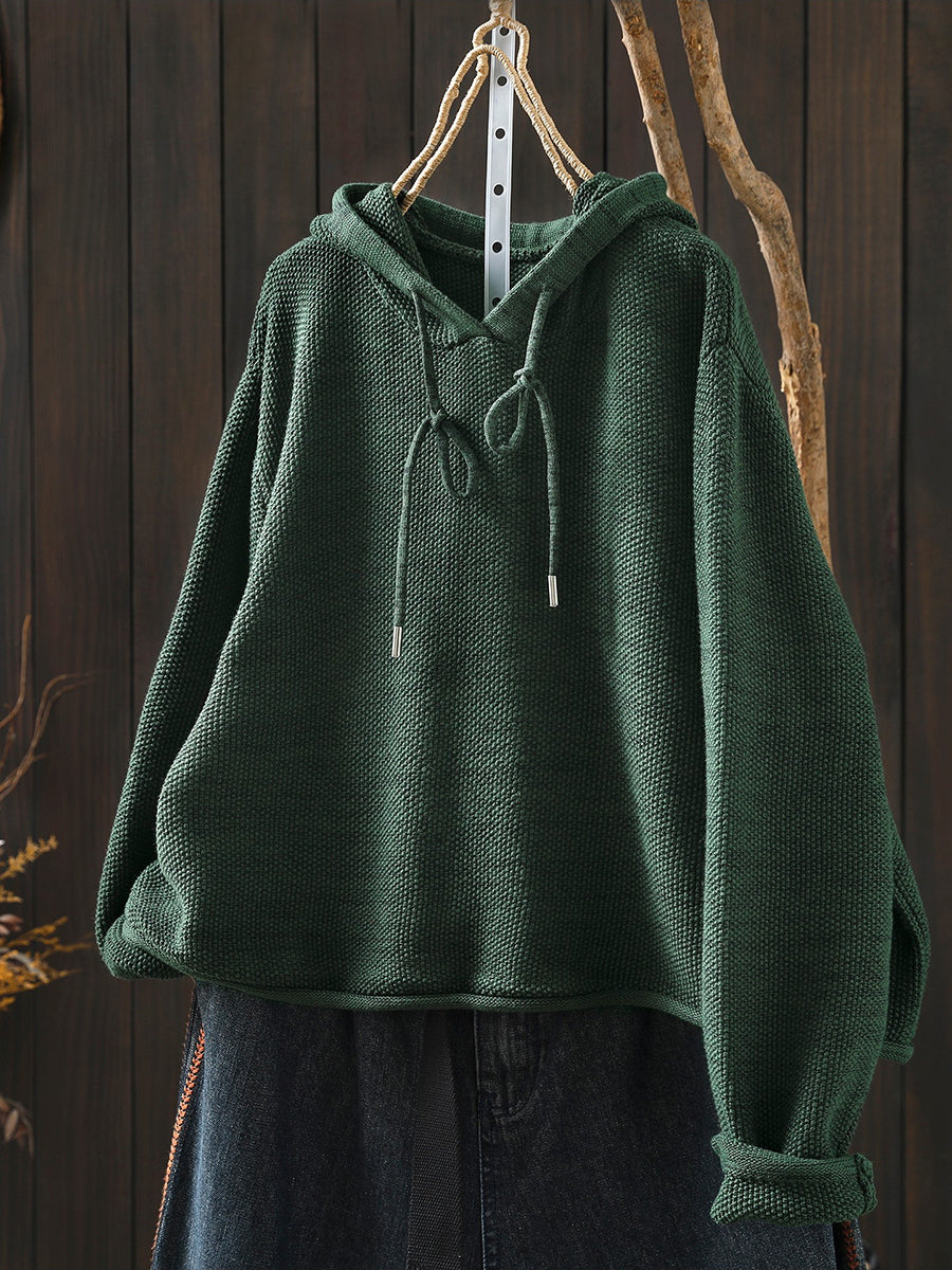 Women Artsy Spring Pure Color Hooded Sweater