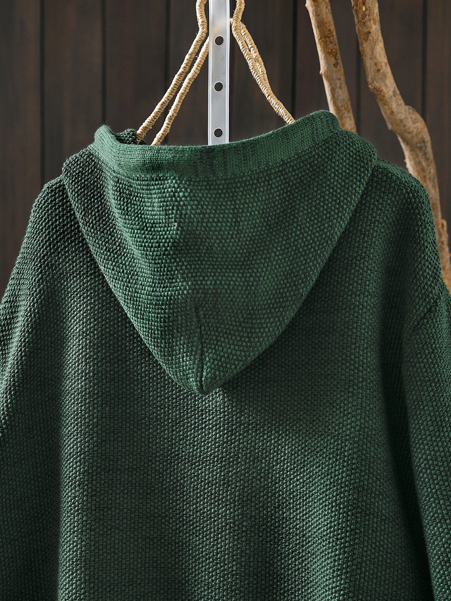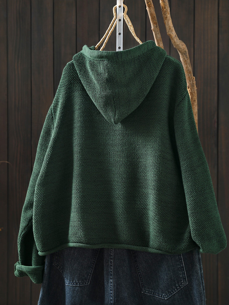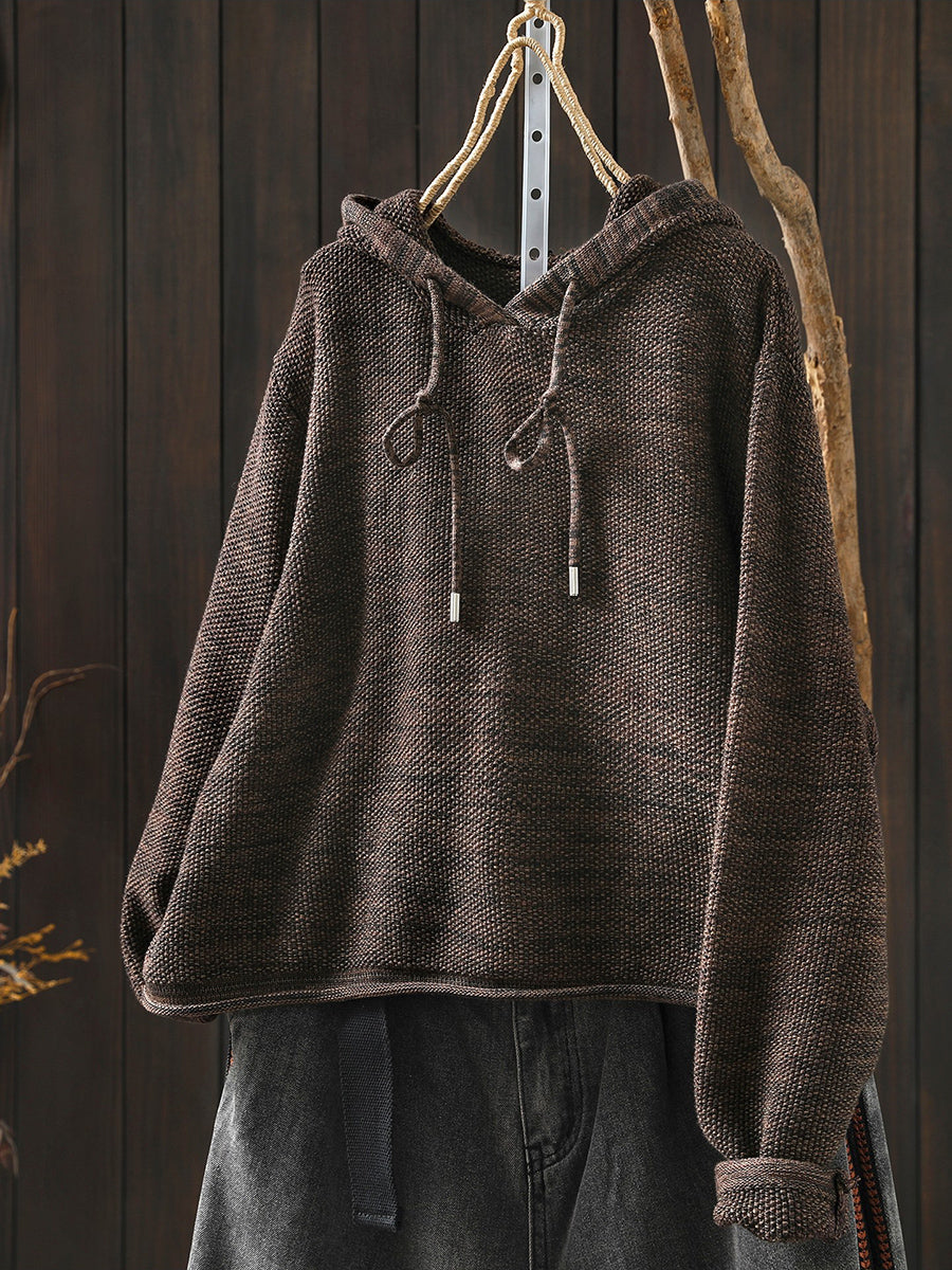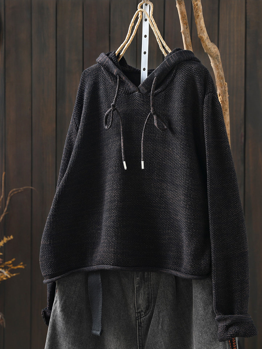 Women Artsy Spring Pure Color Hooded Sweater