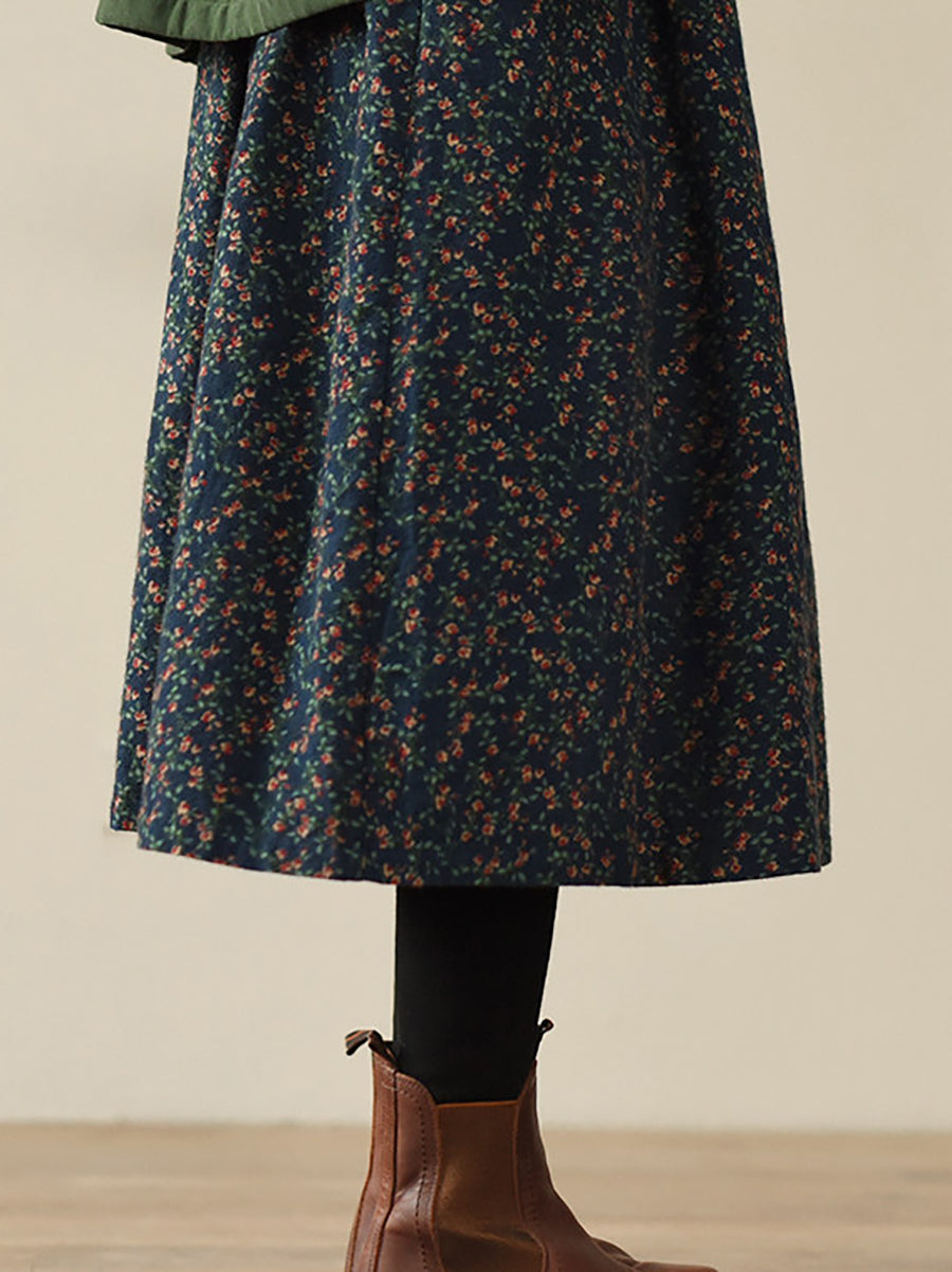 Women Autumn Artsy Floral Stand Collar Cotton Dress
