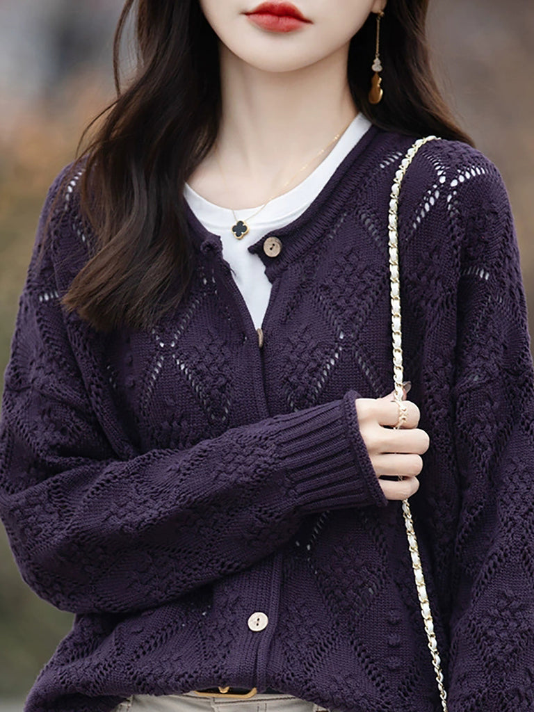 Women Autumn Artsy Knitted O-Neck Cardigan Sweater