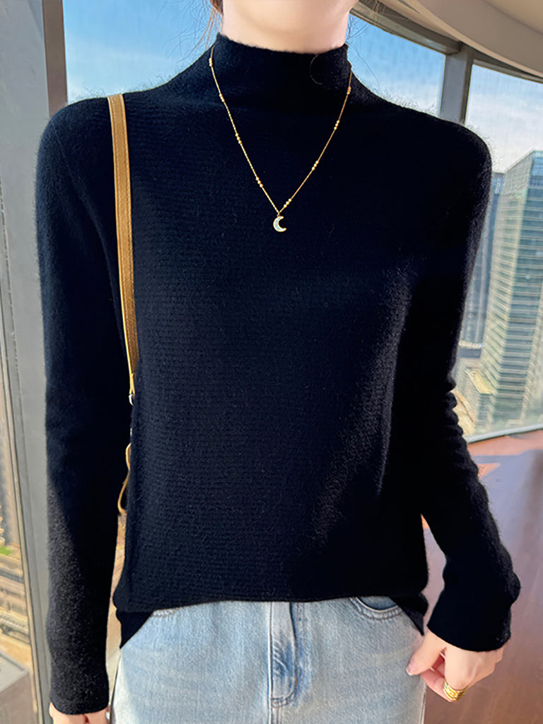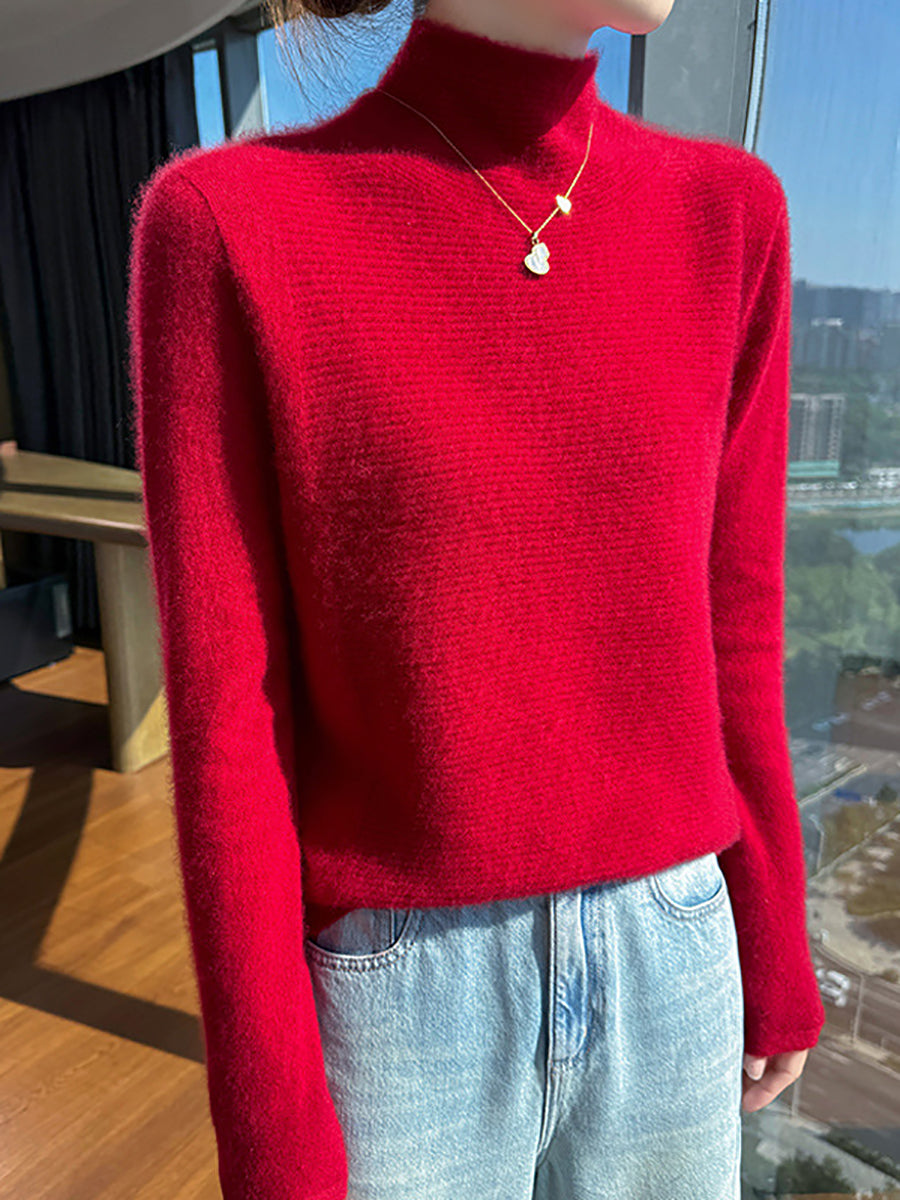 Women Autumn Artsy Pure Color Half-Turtleneck Sweater