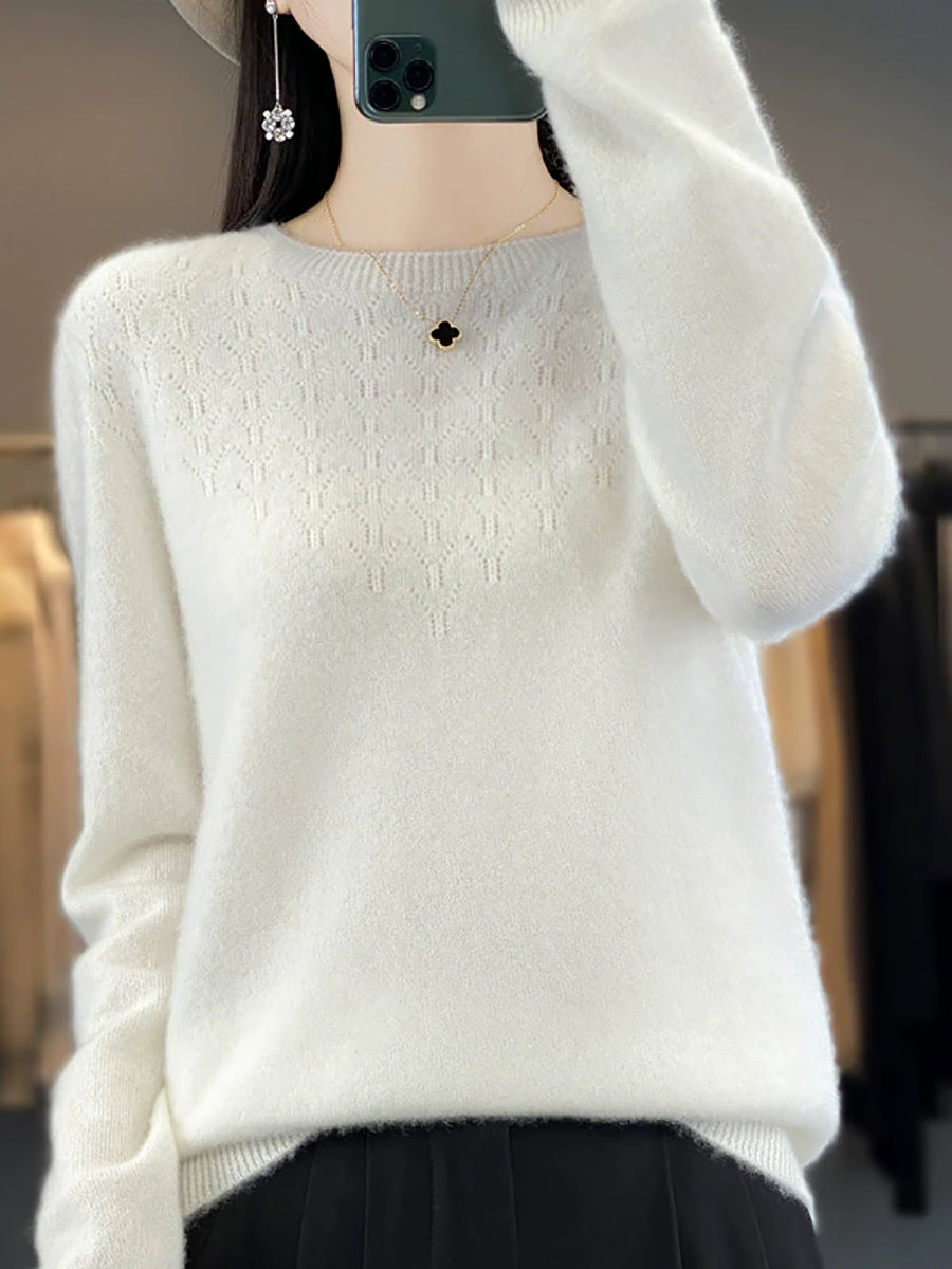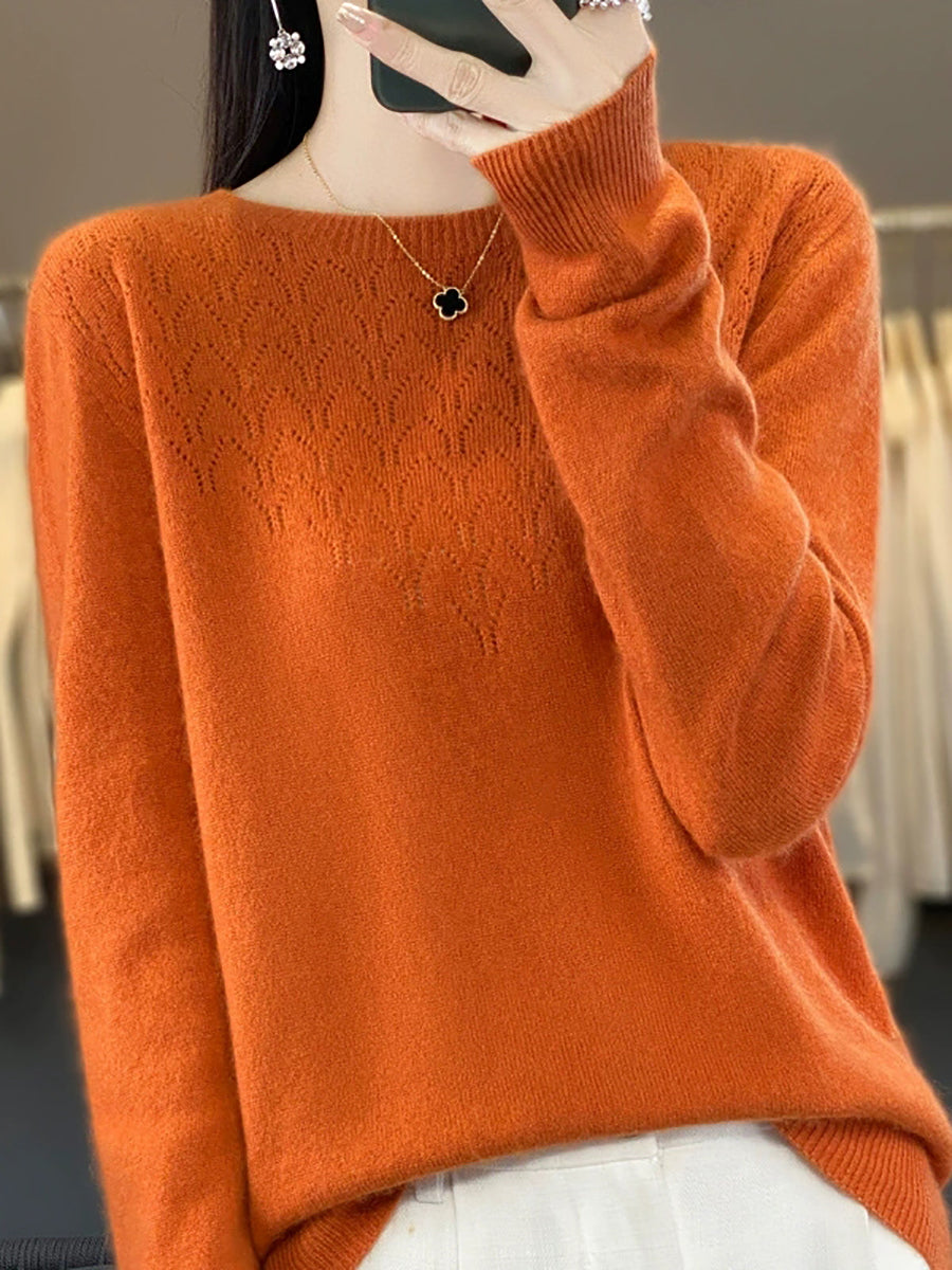 Women Autumn Artsy Pure Color O-Neck Sweater