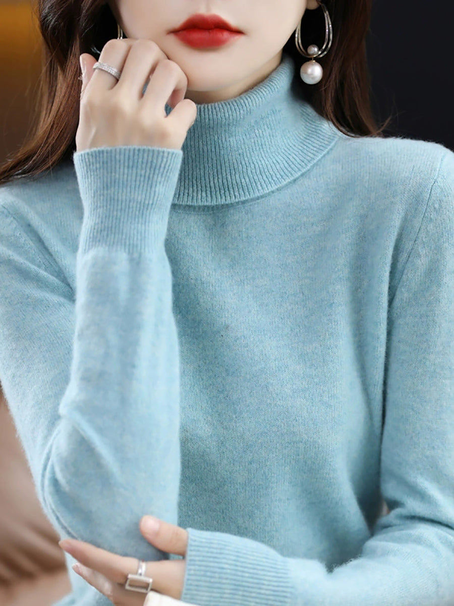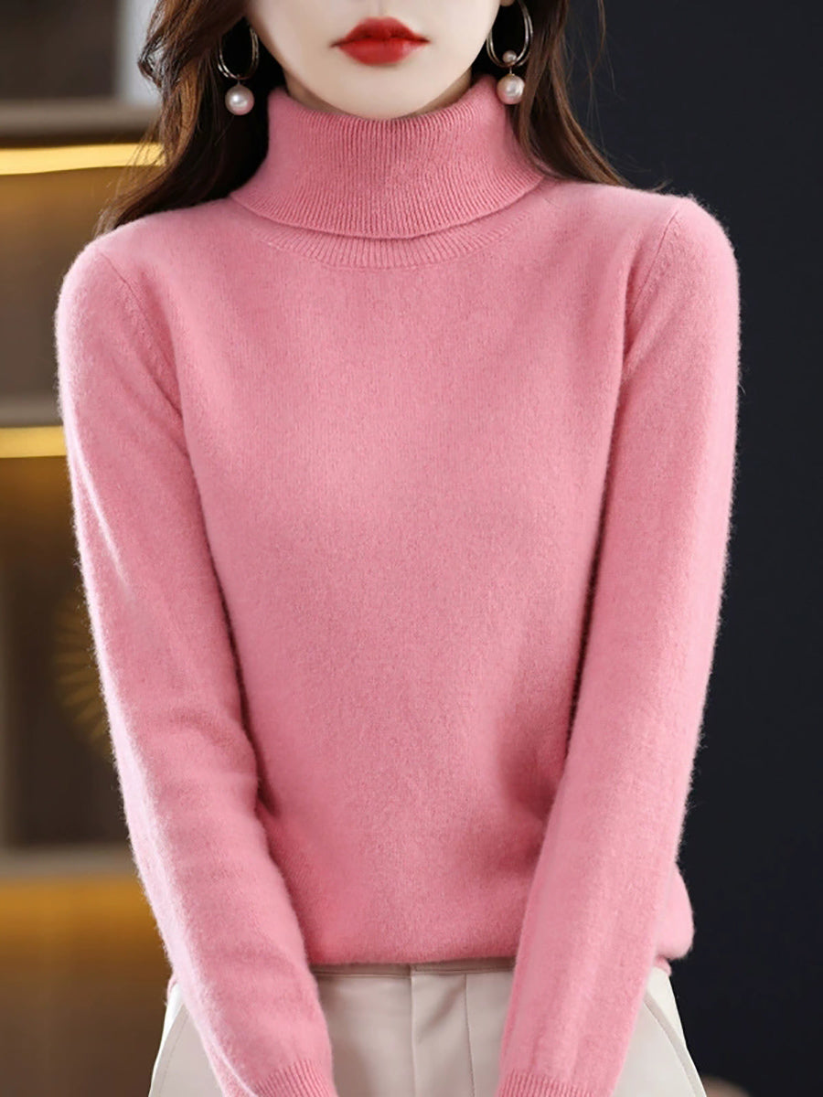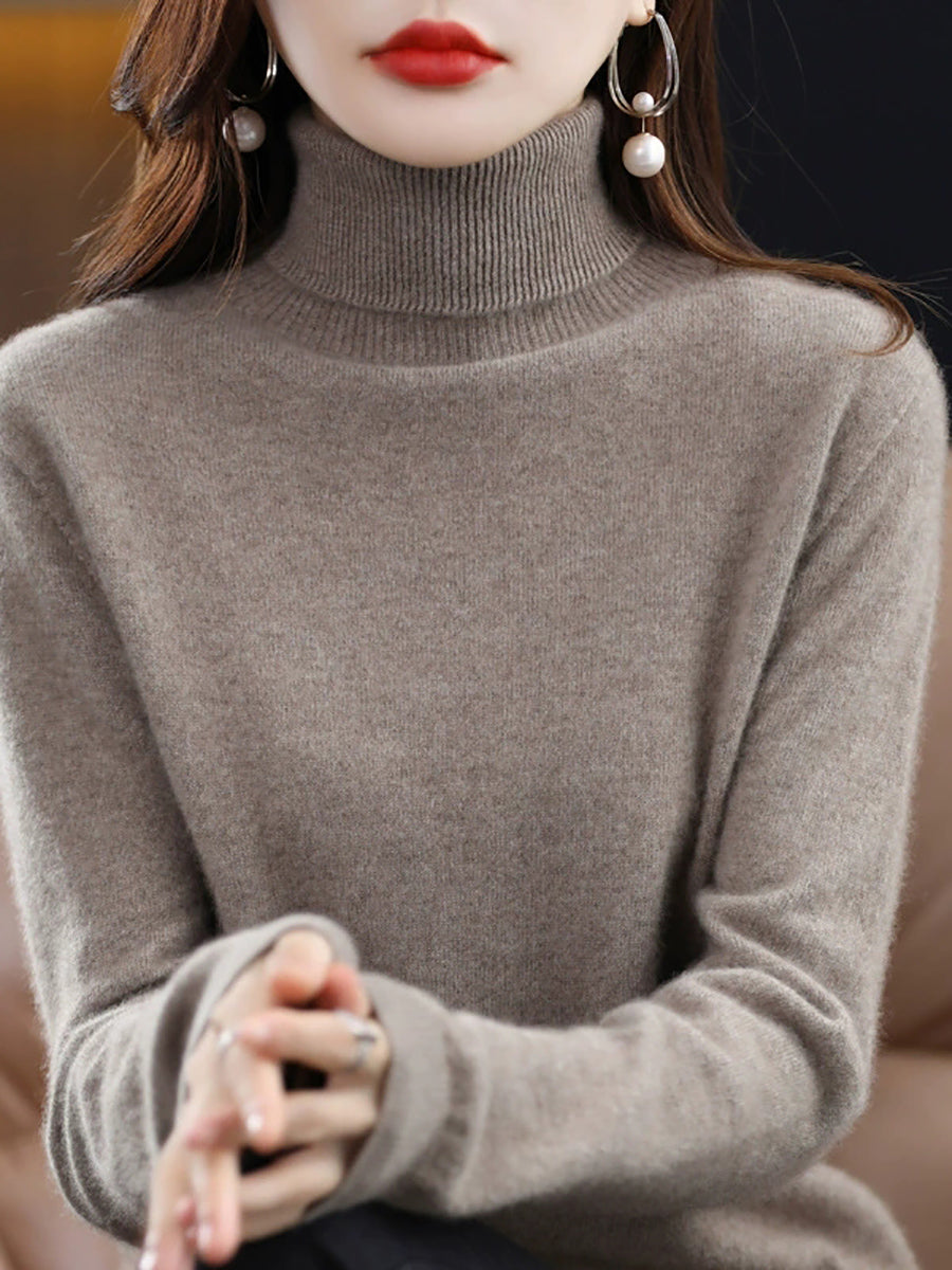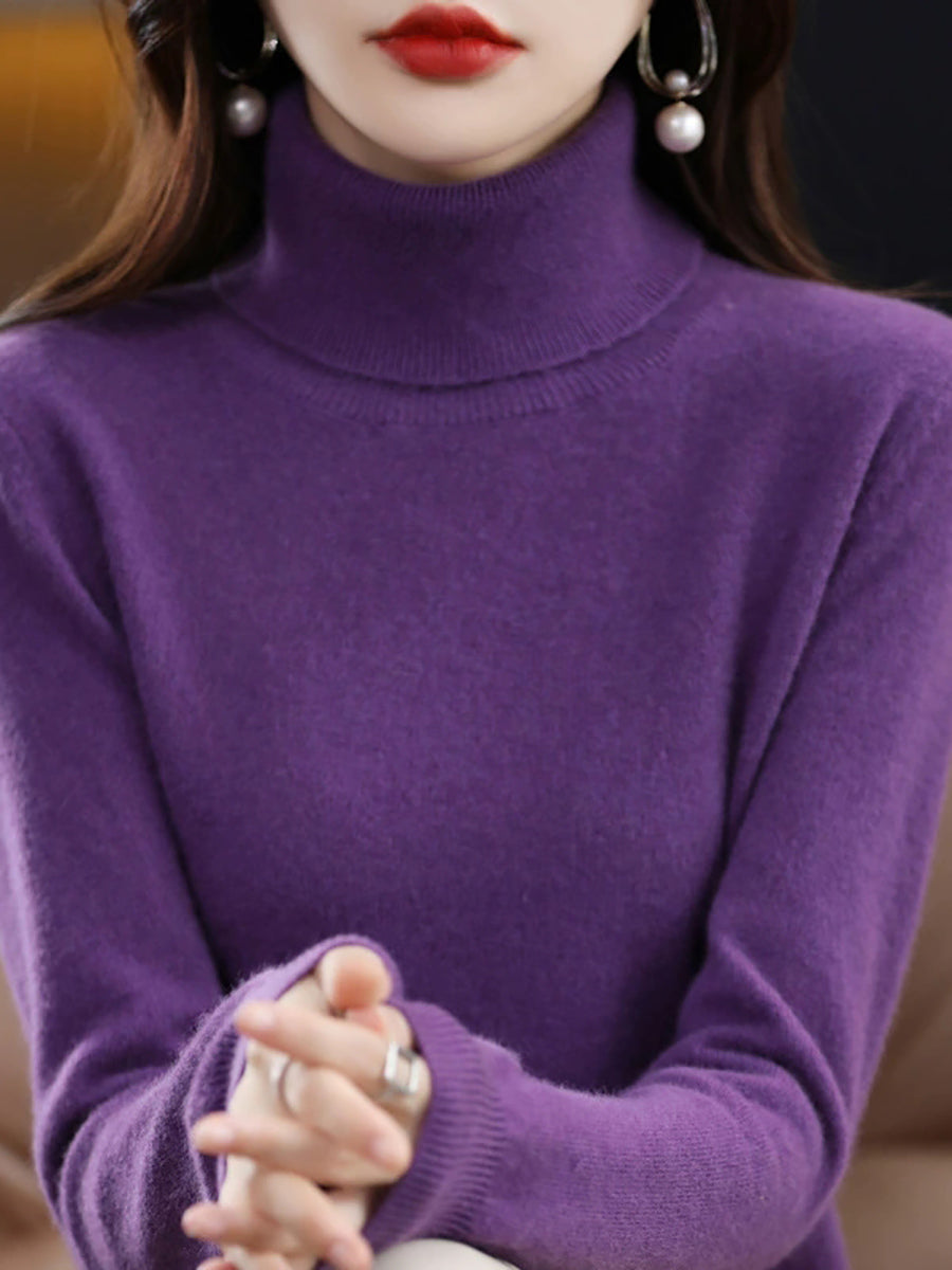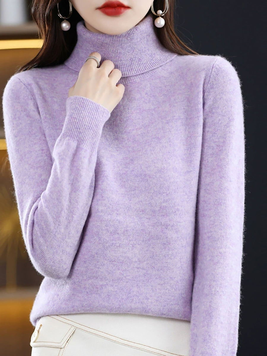 Women Autumn Artsy Pure Color Turtleneck Sweater