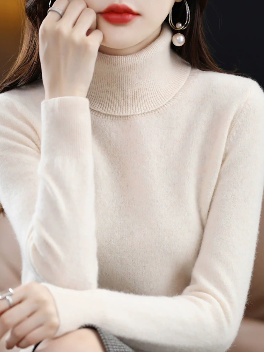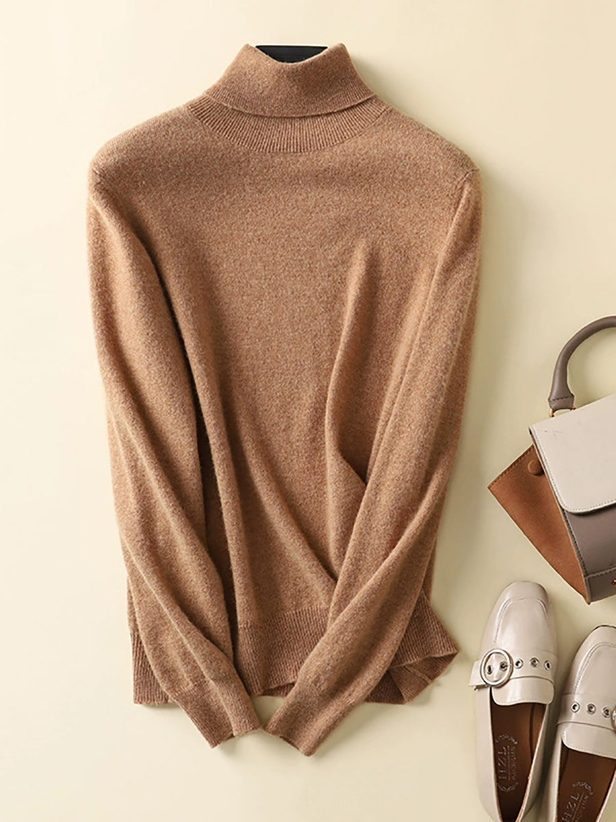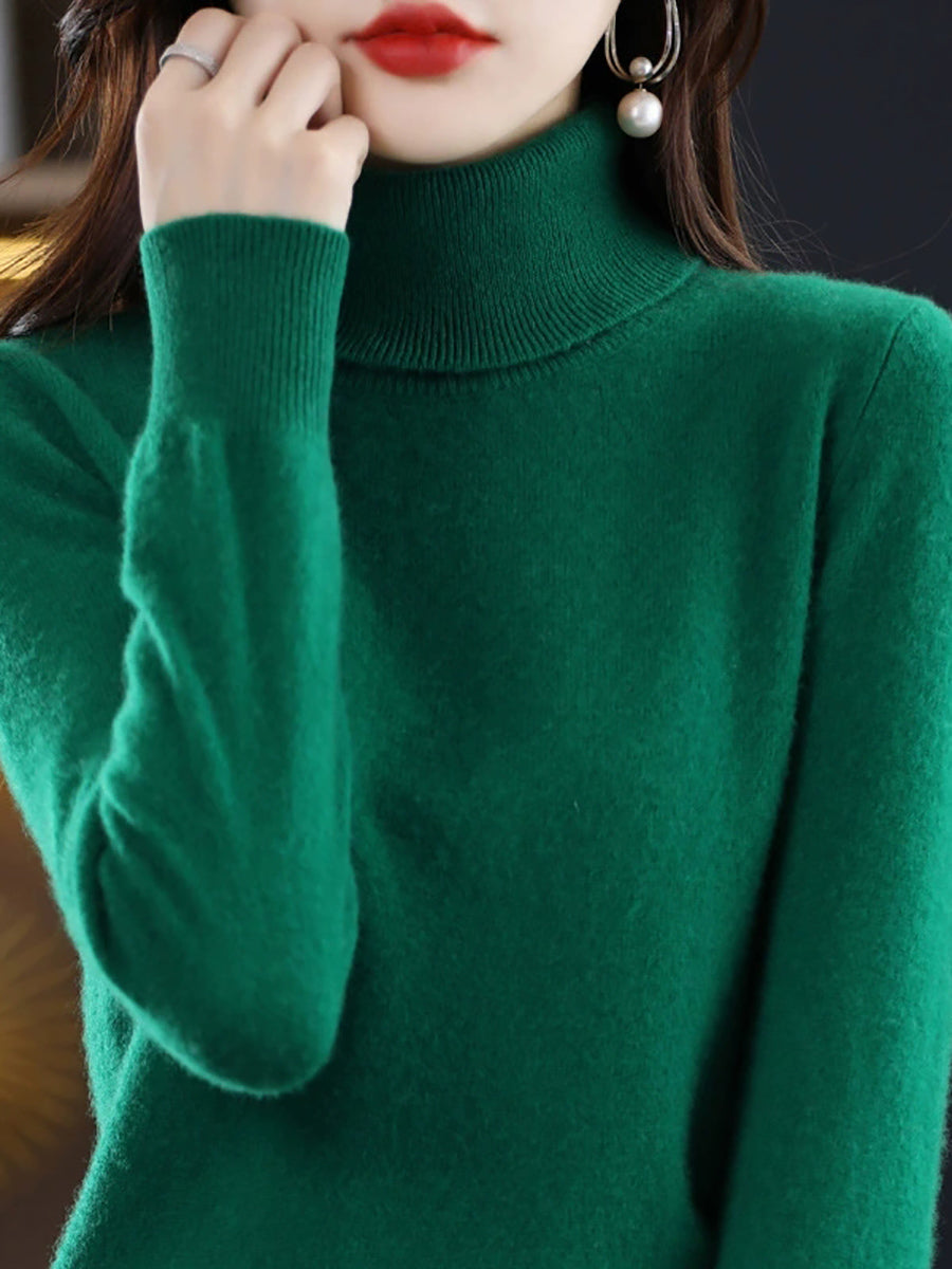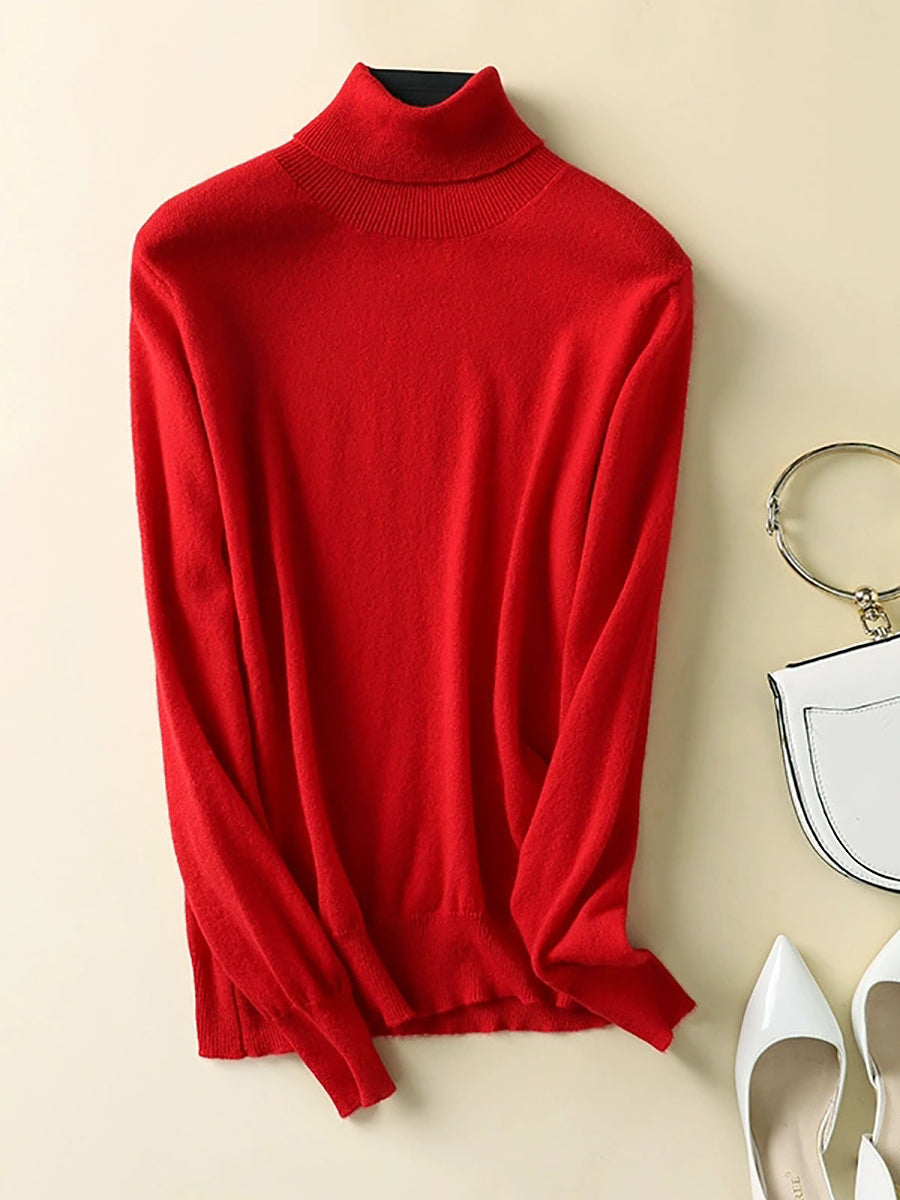 Women Autumn Artsy Pure Color Turtleneck Sweater