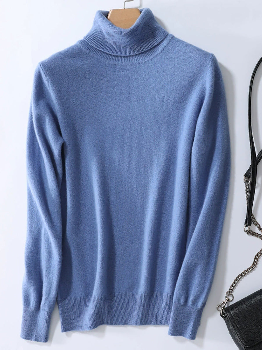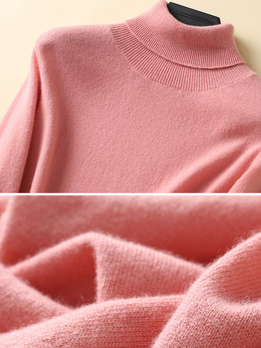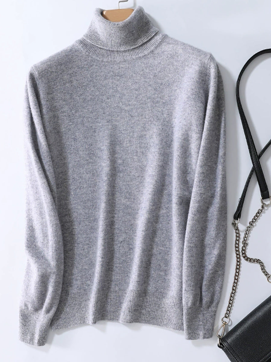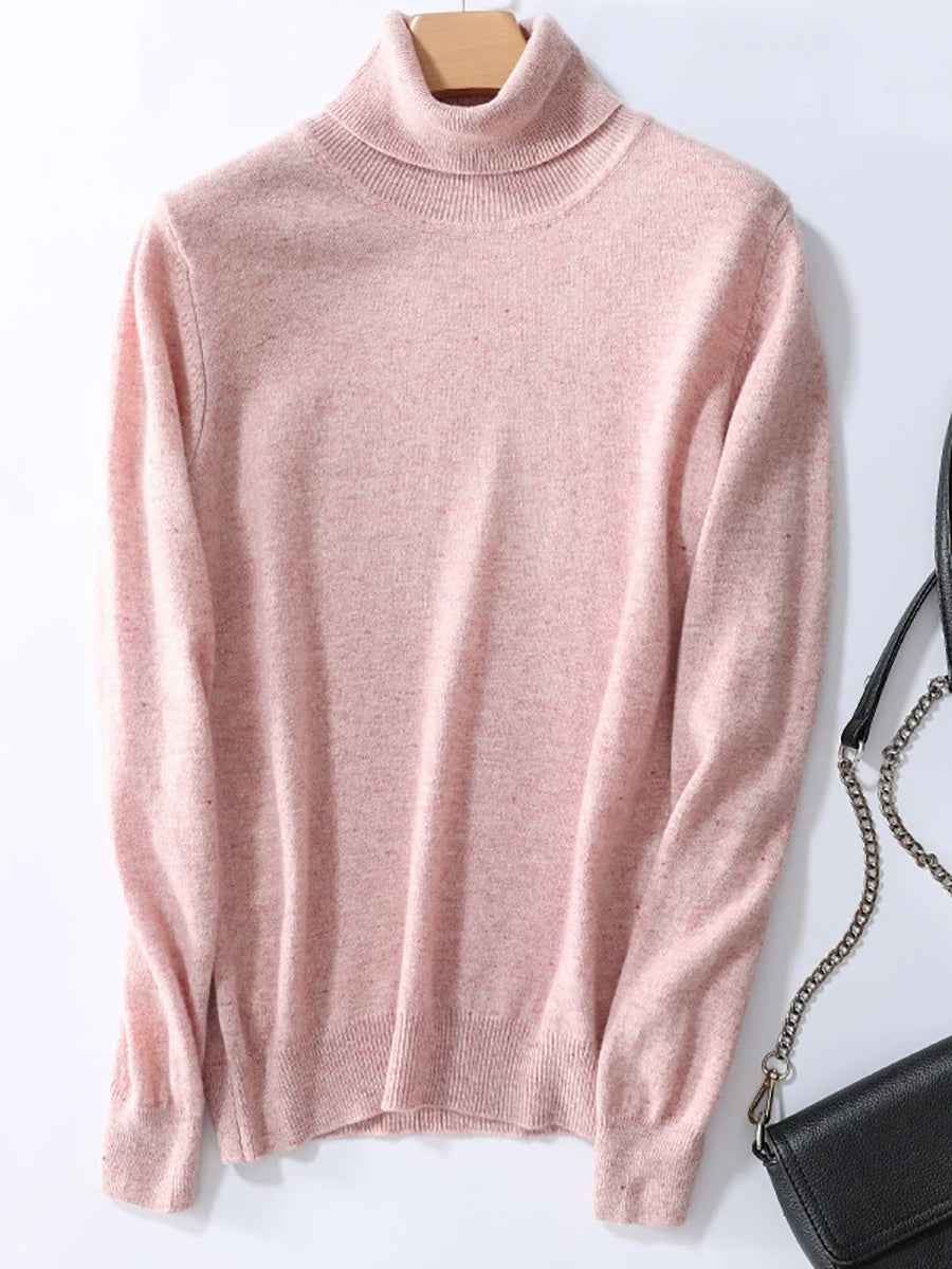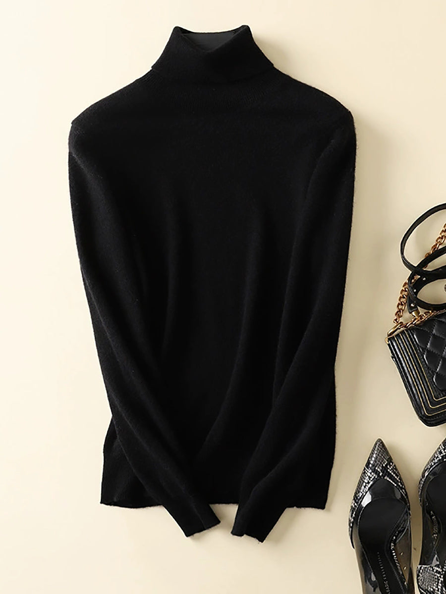Women Autumn Artsy Pure Color Turtleneck Sweater