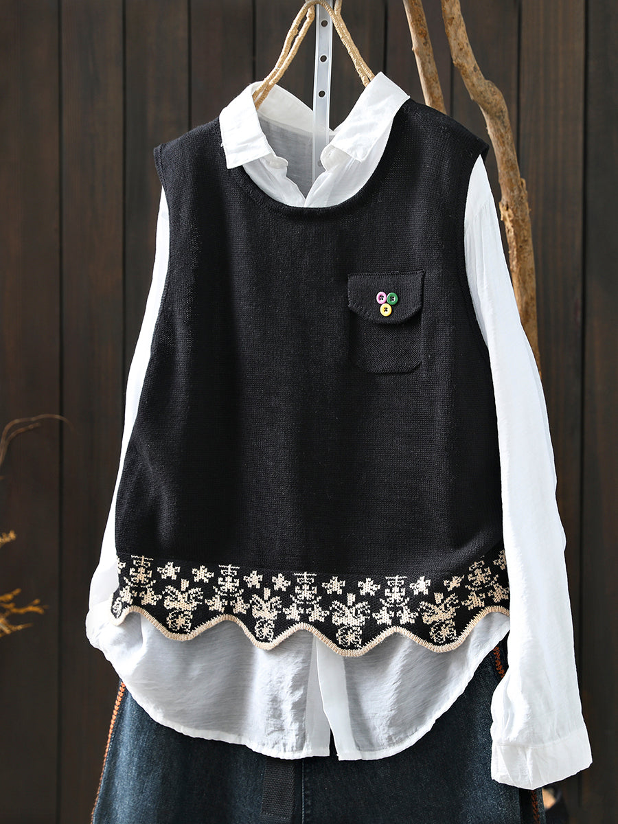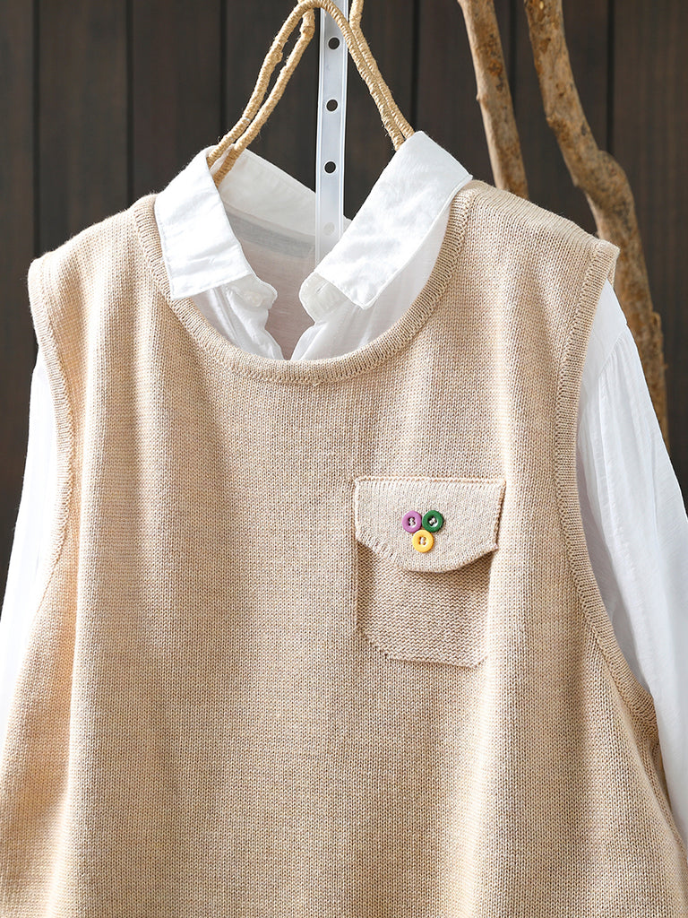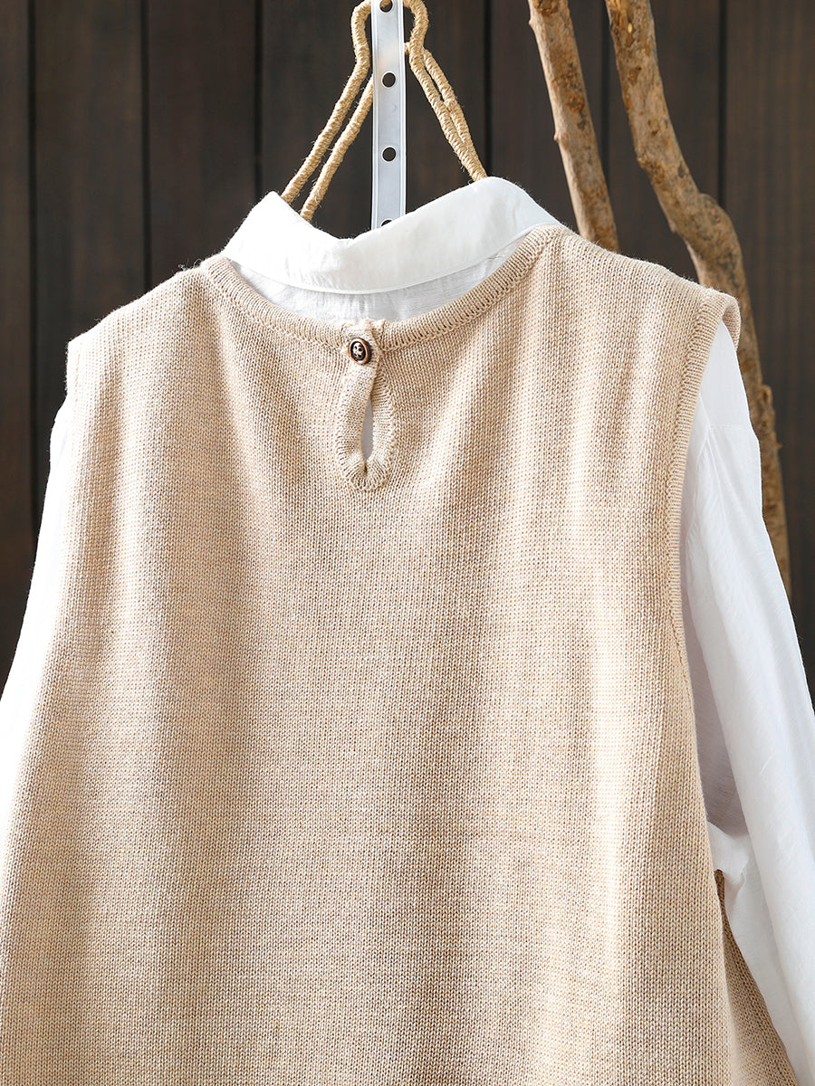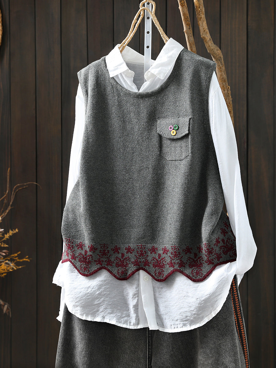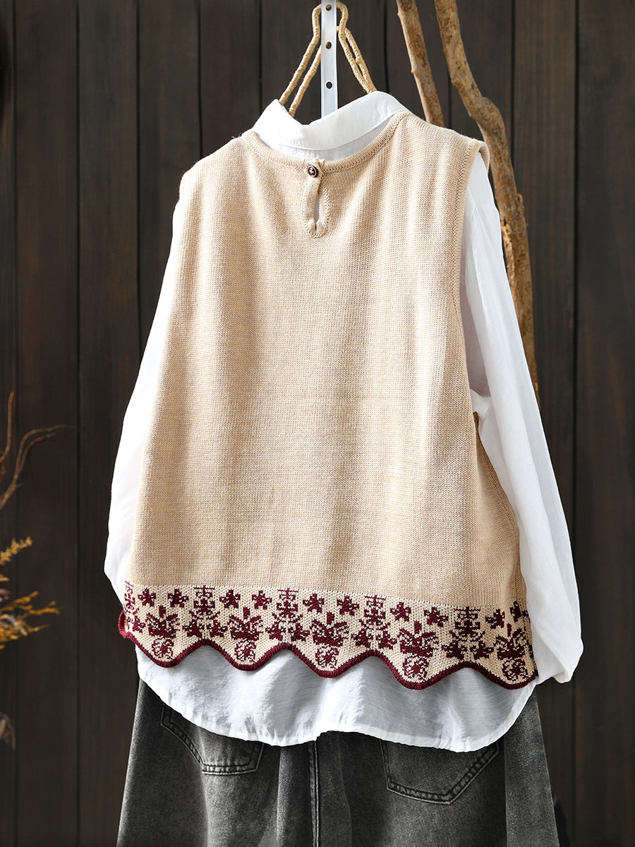 Women Autumn Artsy Wave Hem O-Neck Knitted Vest