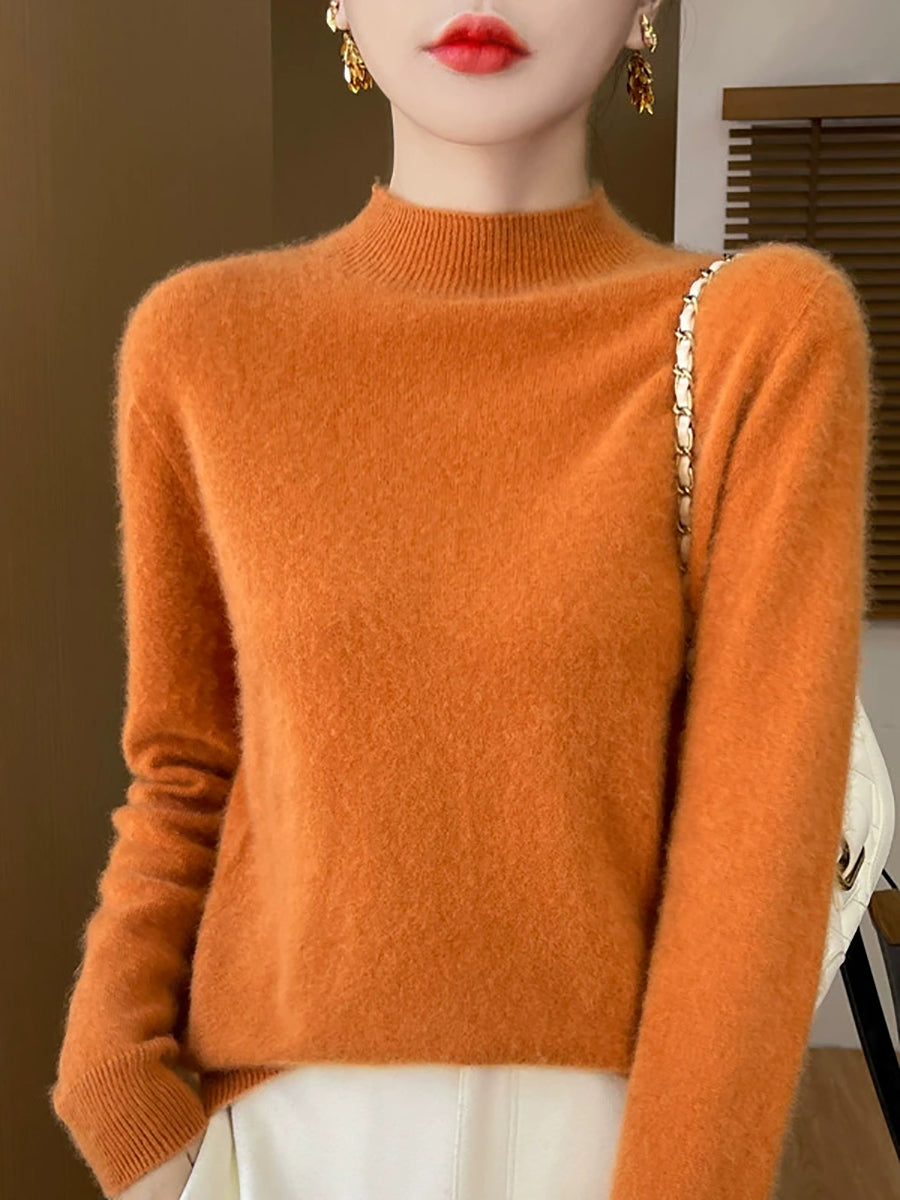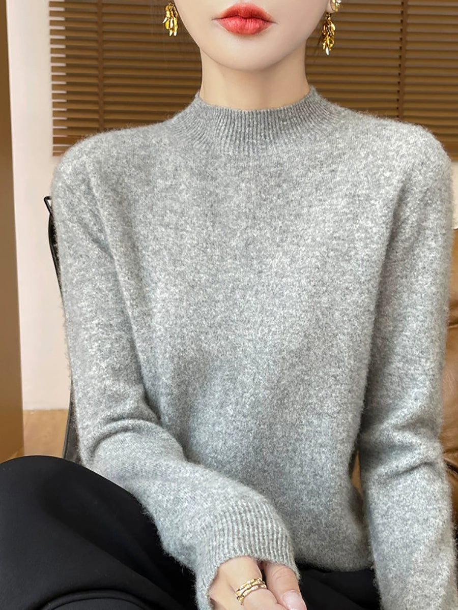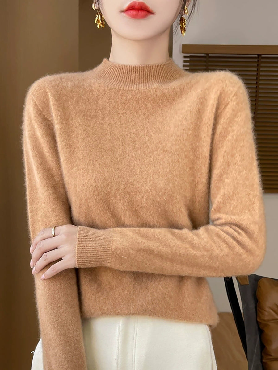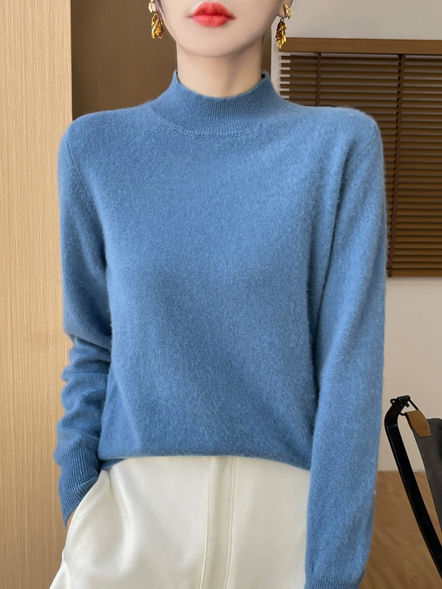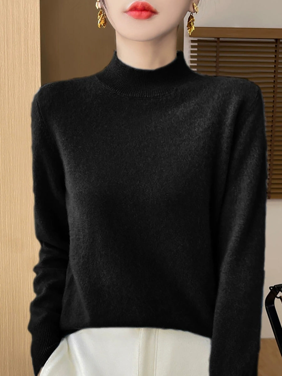 Women Autumn Casual Pure Color Half-Turtleneck Sweater