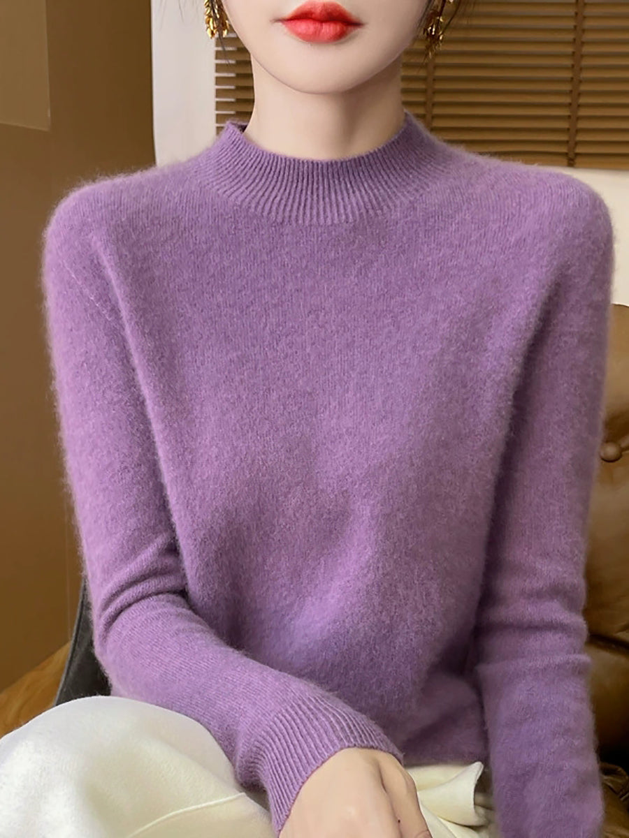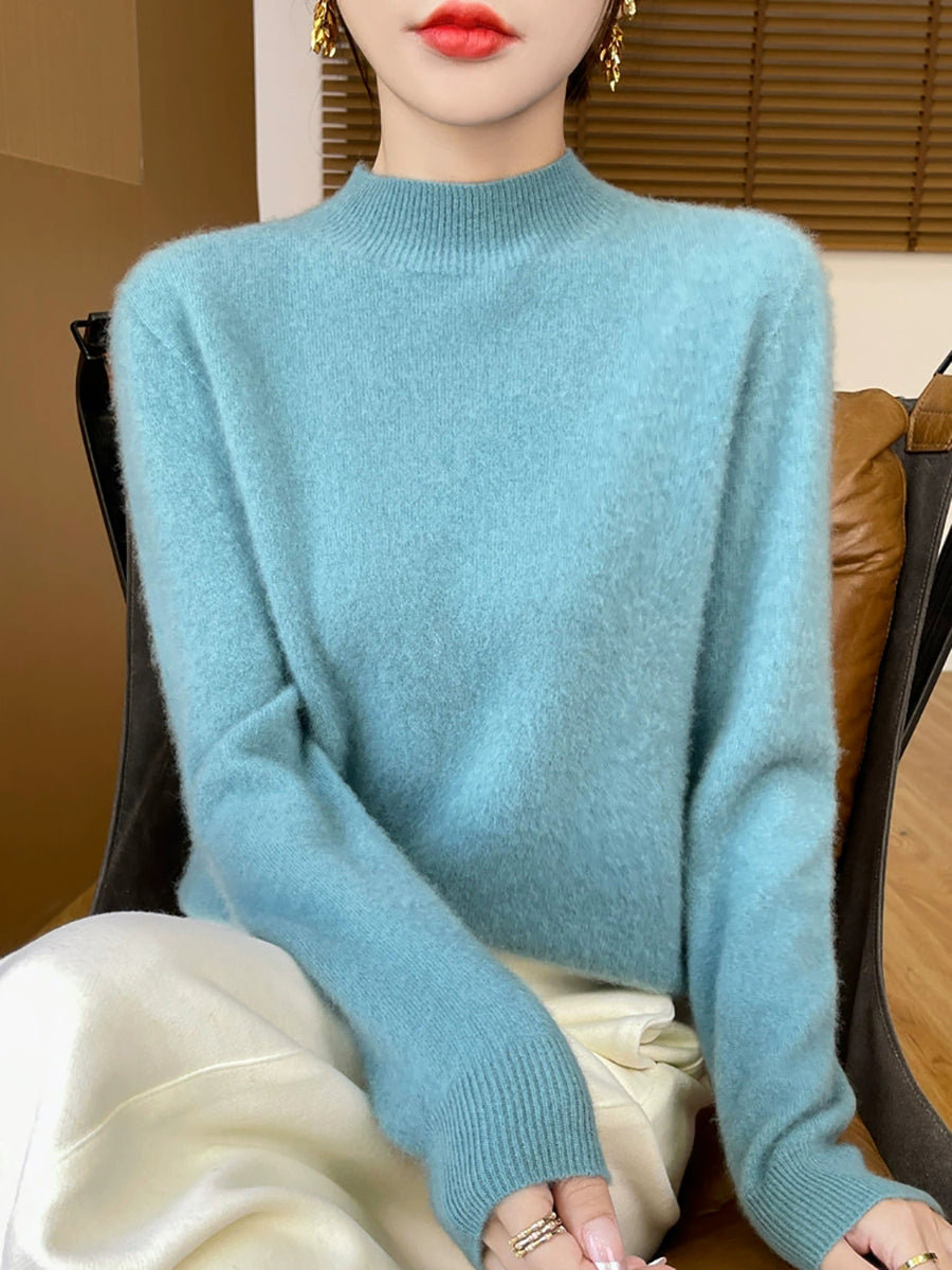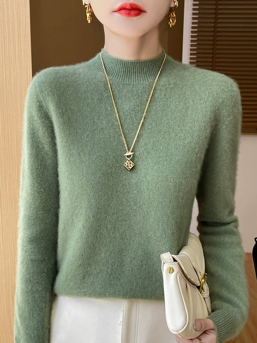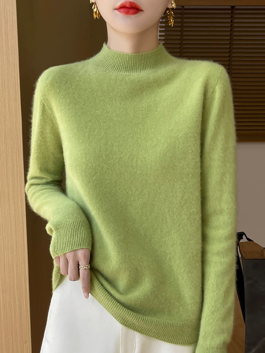 Women Autumn Casual Pure Color Half-Turtleneck Sweater