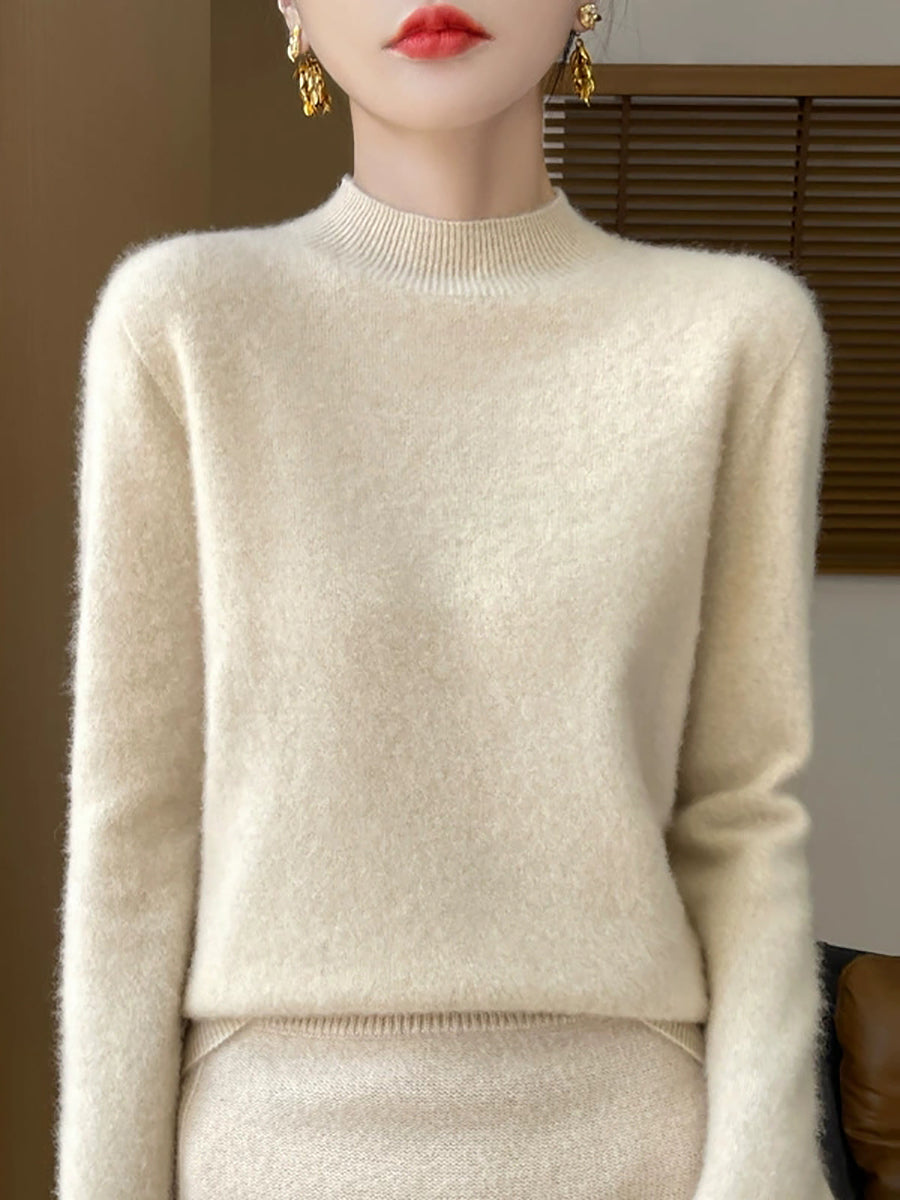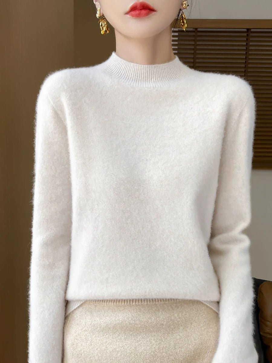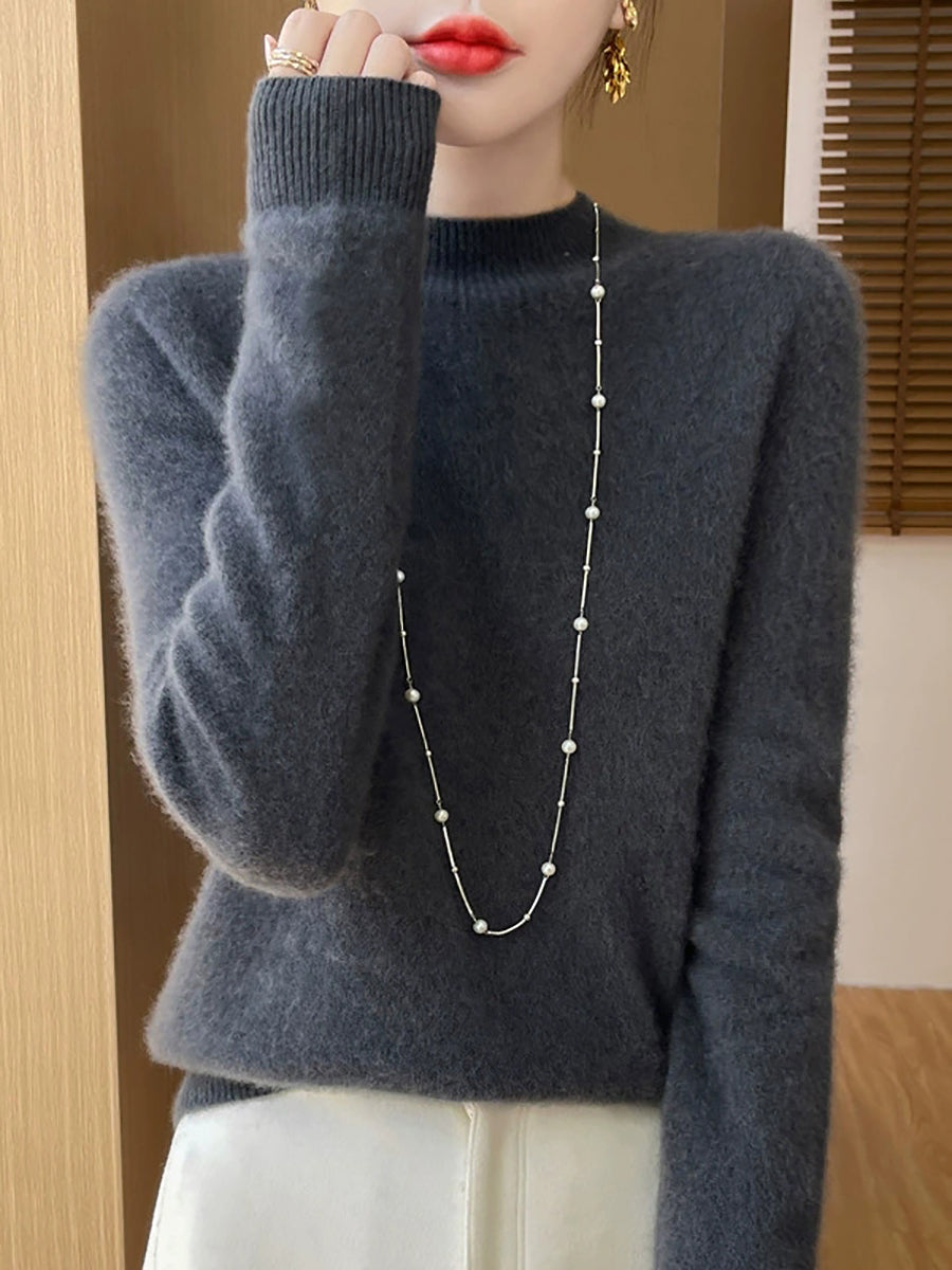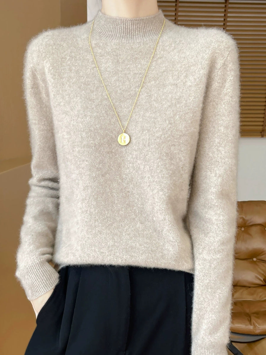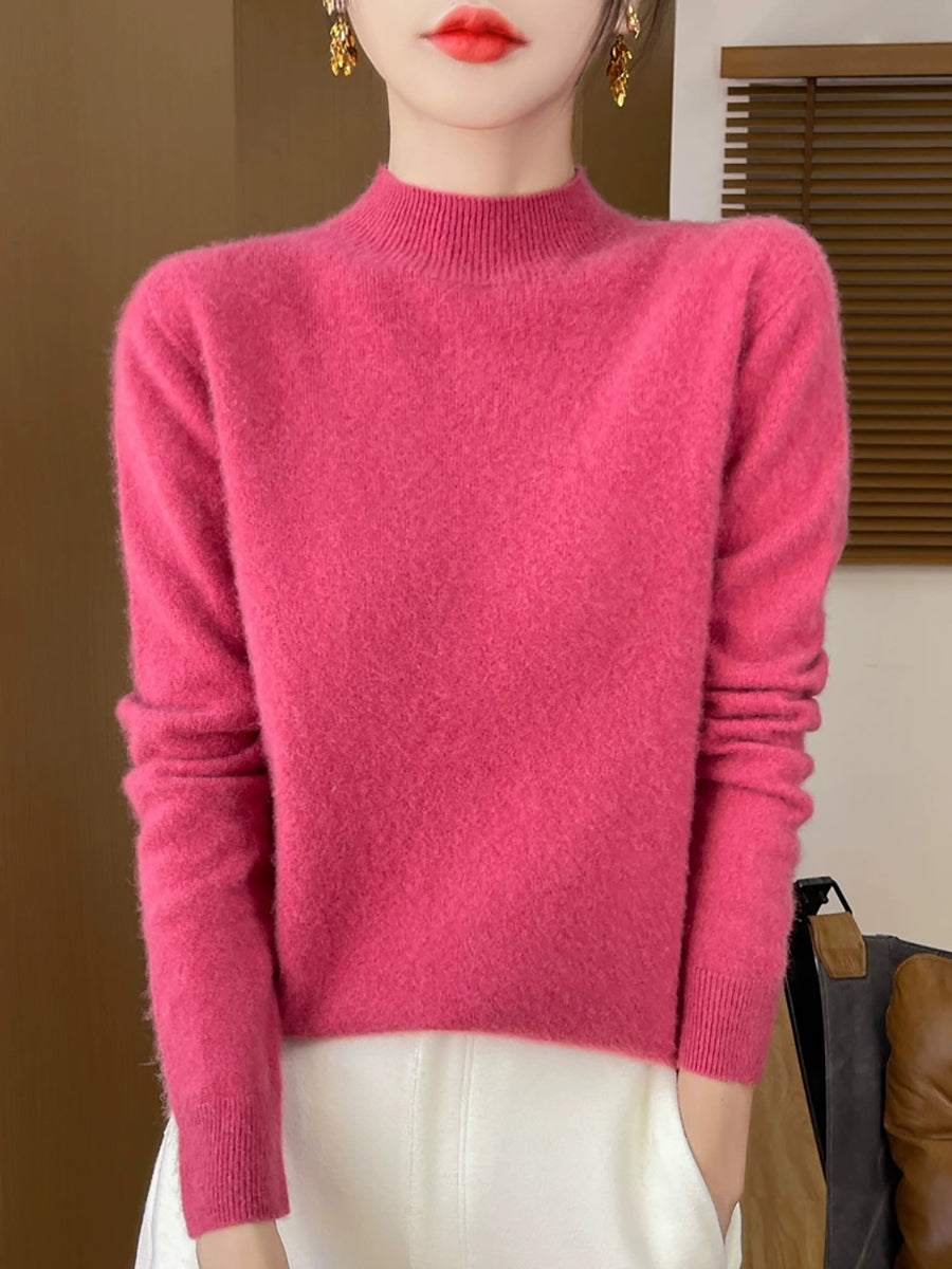 Women Autumn Casual Pure Color Half-Turtleneck Sweater