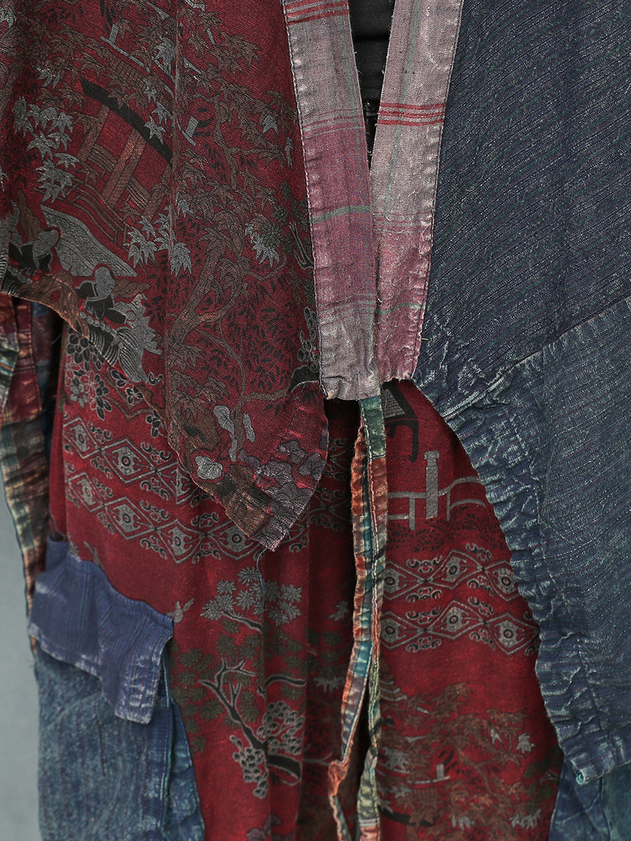 Women Autumn Ethnic Patchwork V-Neck Loose Cotton Suits