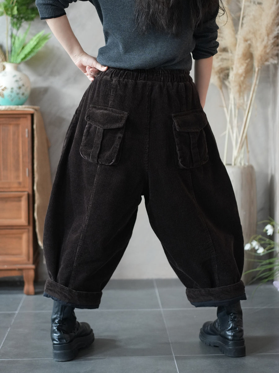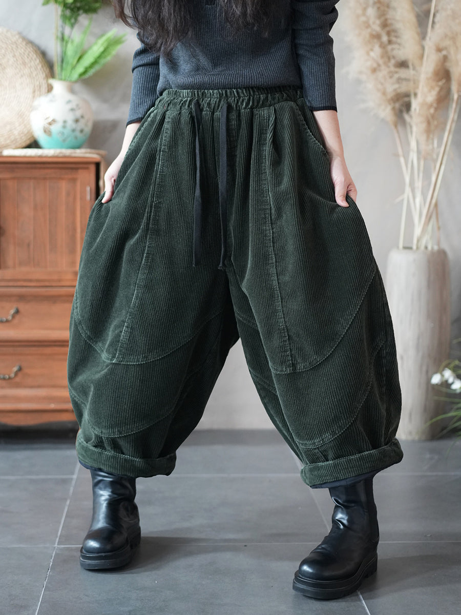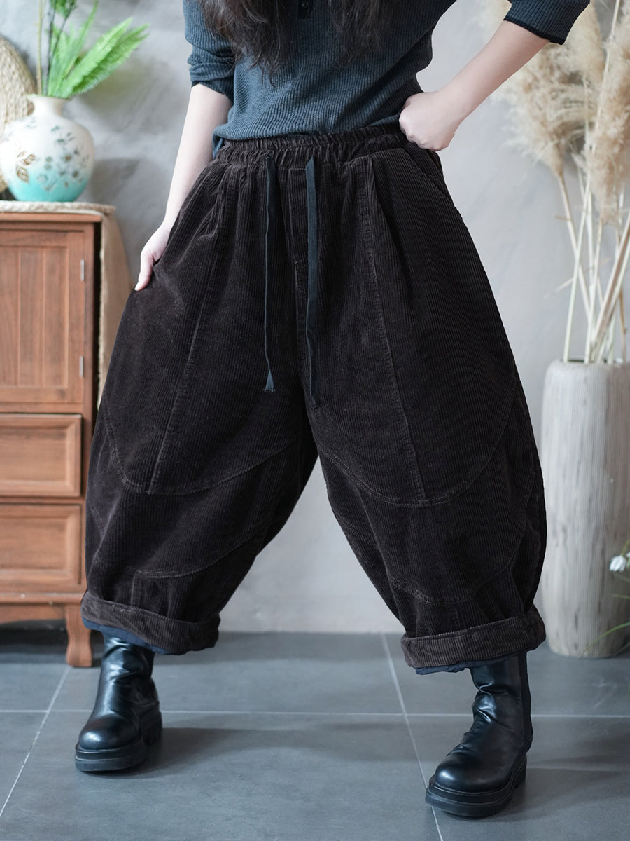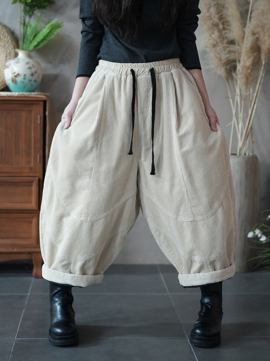 Women Autumn Retro Pure Color Corduroy Harem Pants