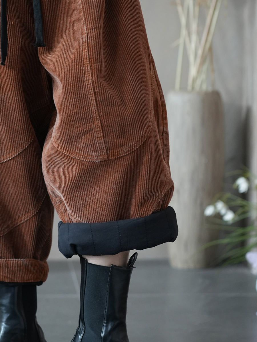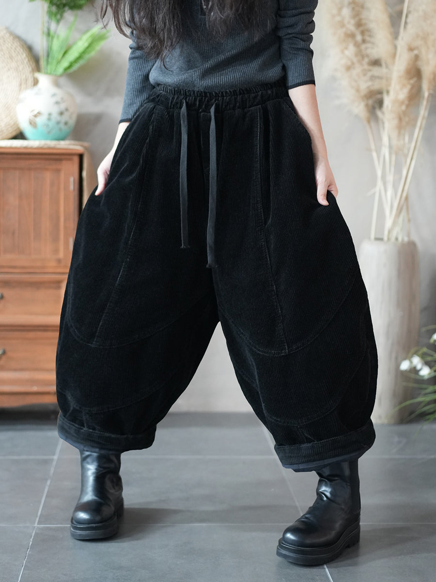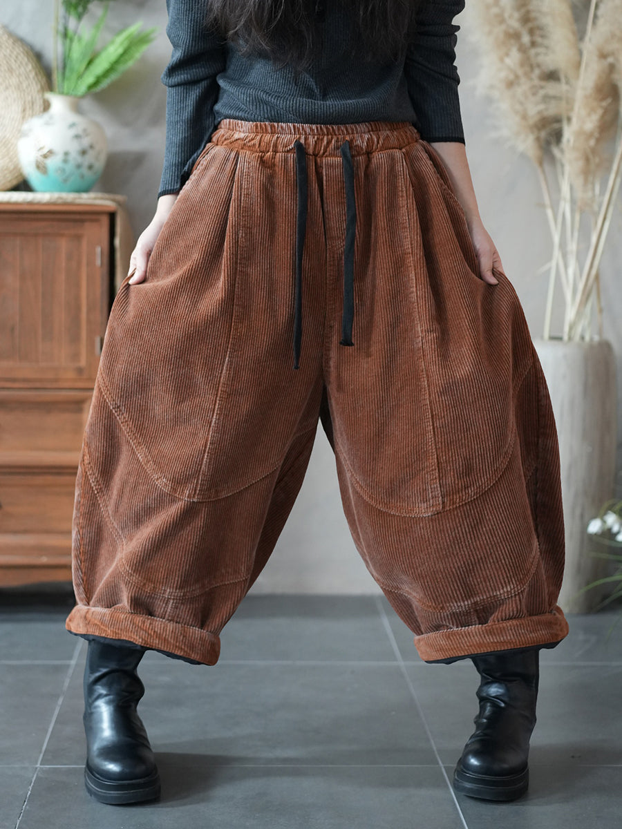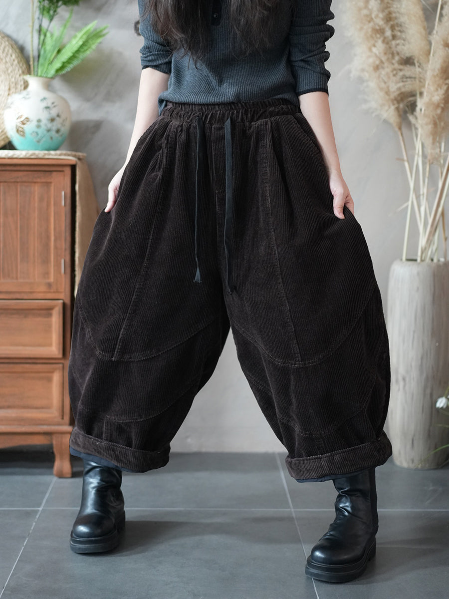Women Autumn Retro Pure Color Corduroy Harem Pants