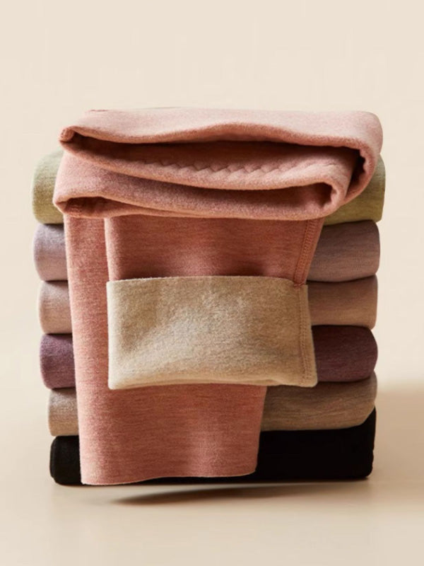 Women Autumn Warm Pure Color High Waist Leggings