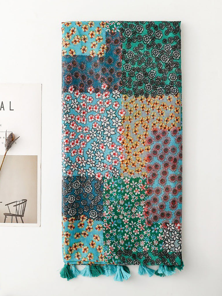 Women Bohemia Floral Patchwork Tassel Shawl Scarf