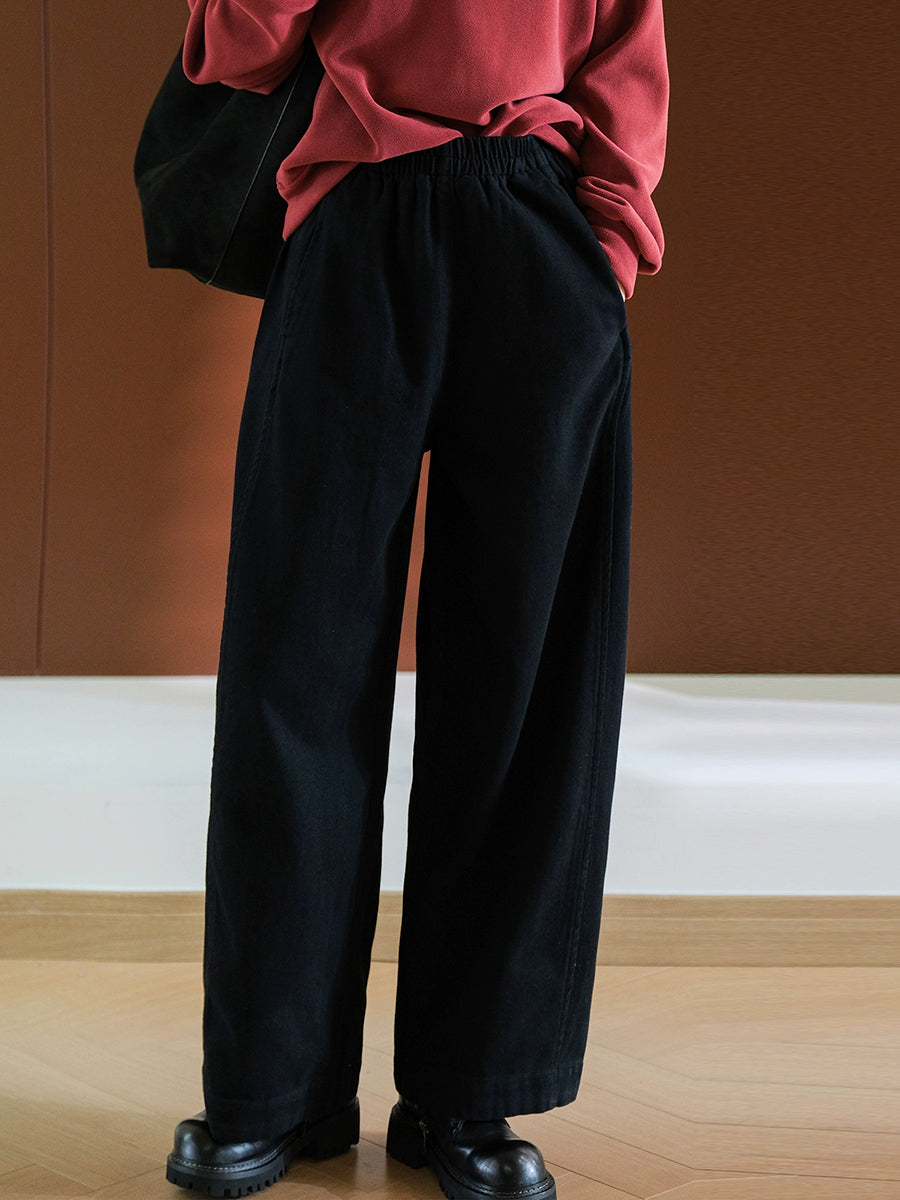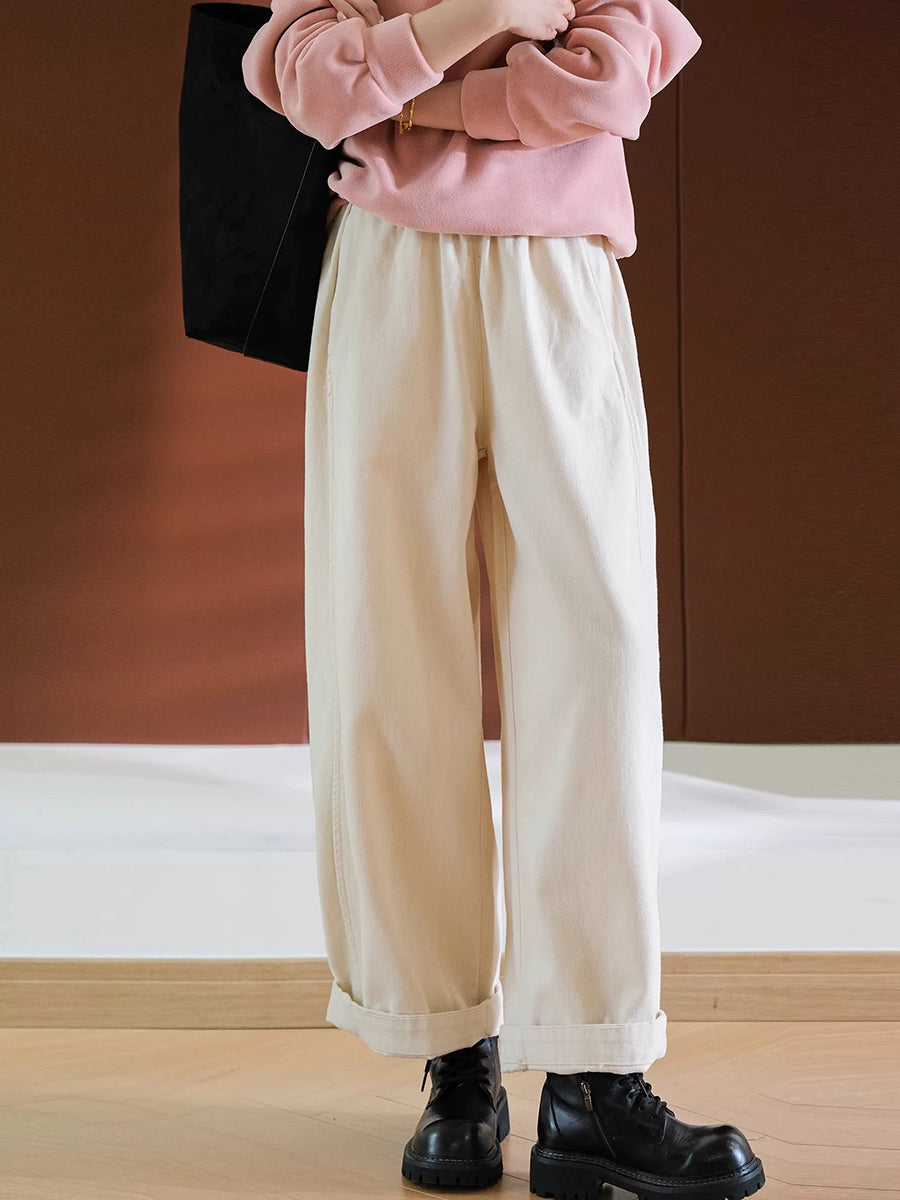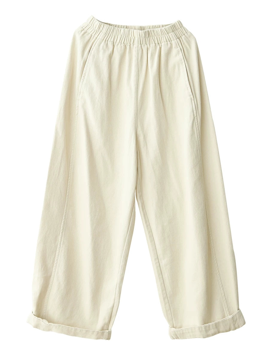 Women Spring Pure Color 100%Cotton Wide-leg Pants