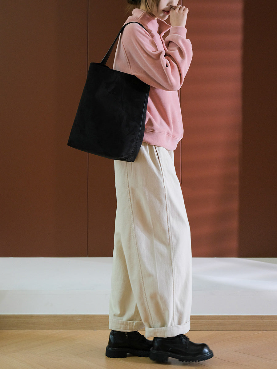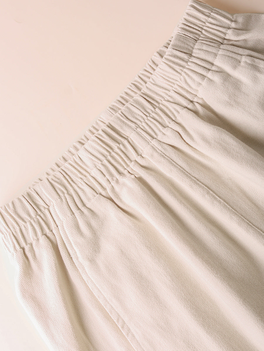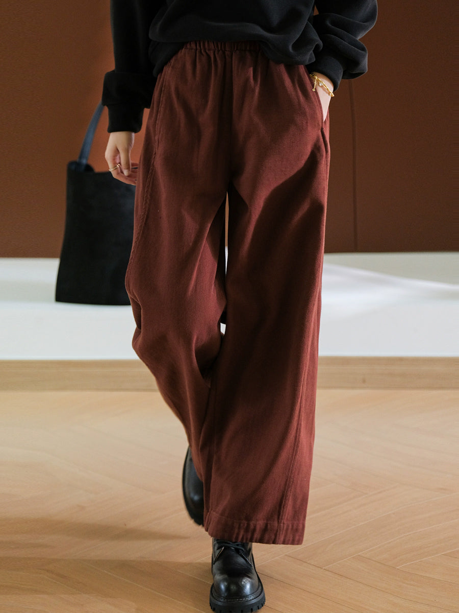 Women Spring Pure Color 100%Cotton Wide-leg Pants