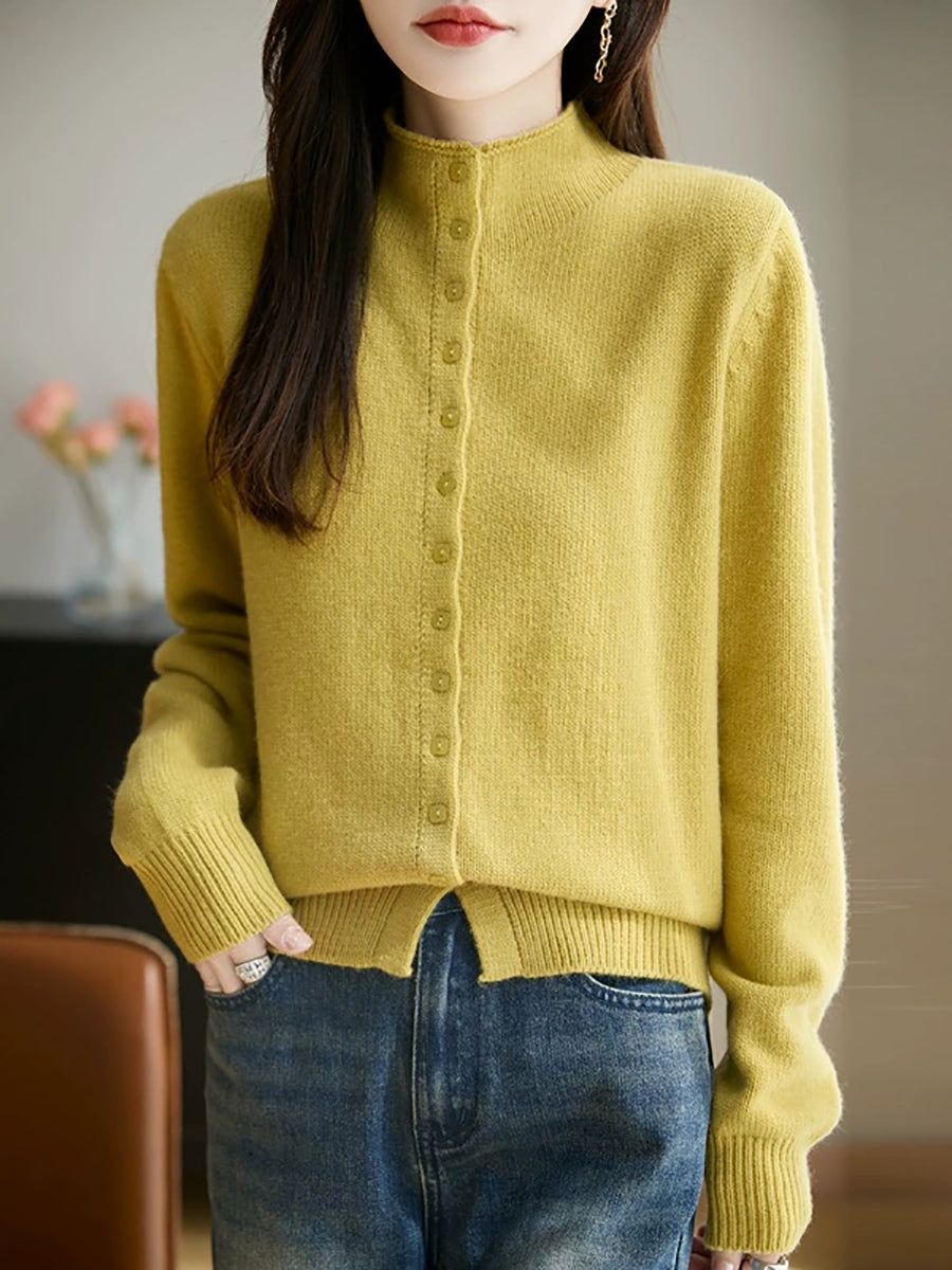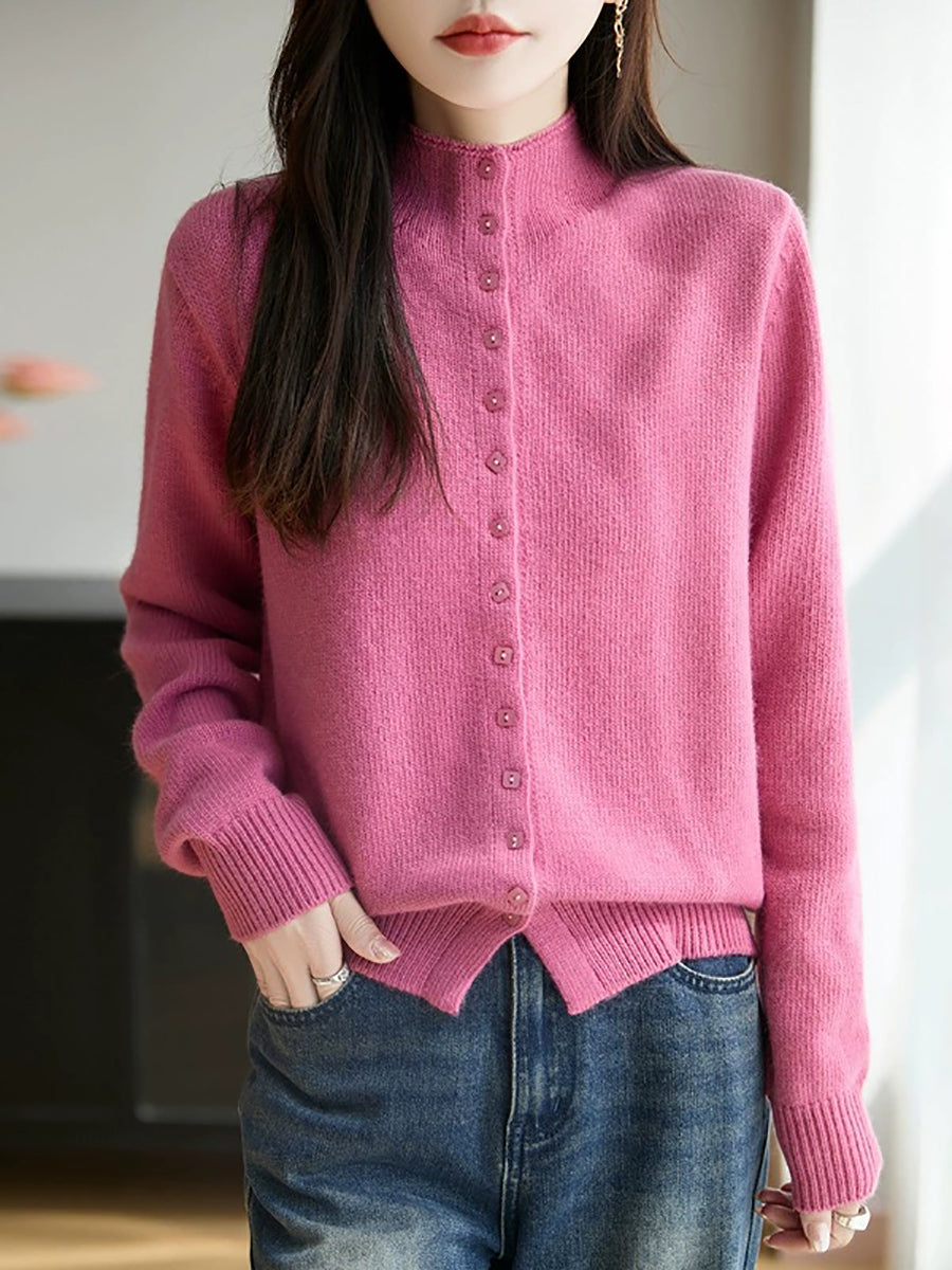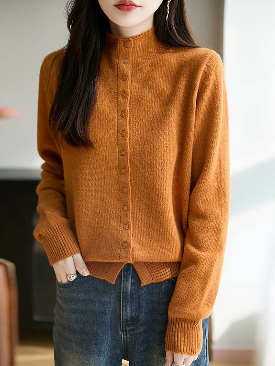 Women Casual Spring Pure Color Half-turtleneck Sweater