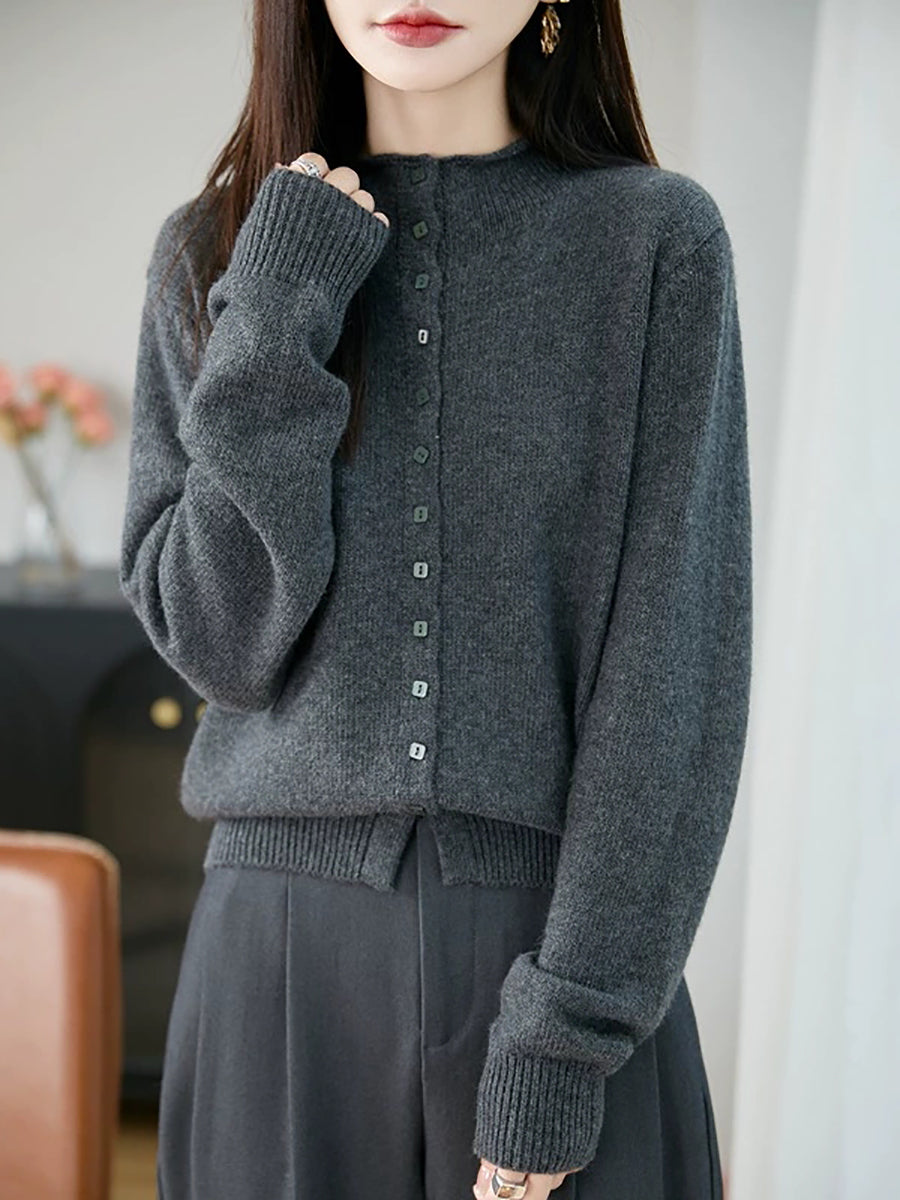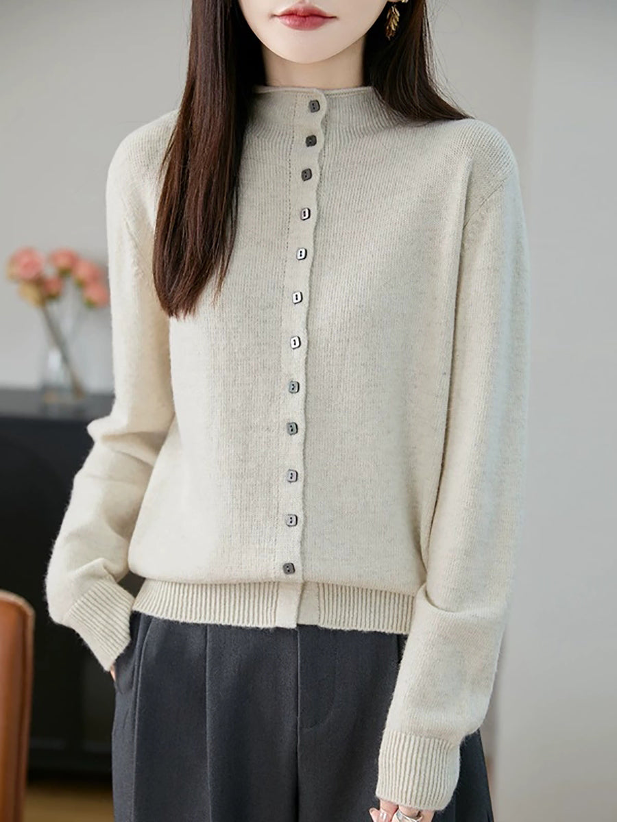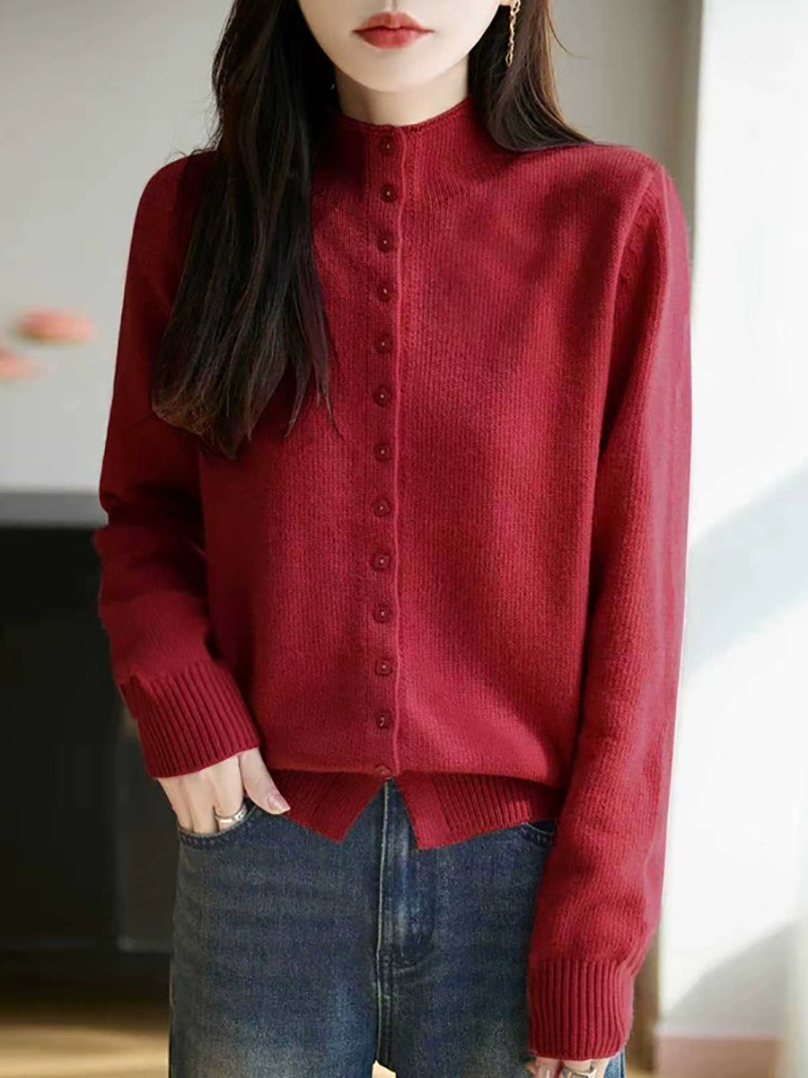 Women Casual Spring Pure Color Half-turtleneck Sweater