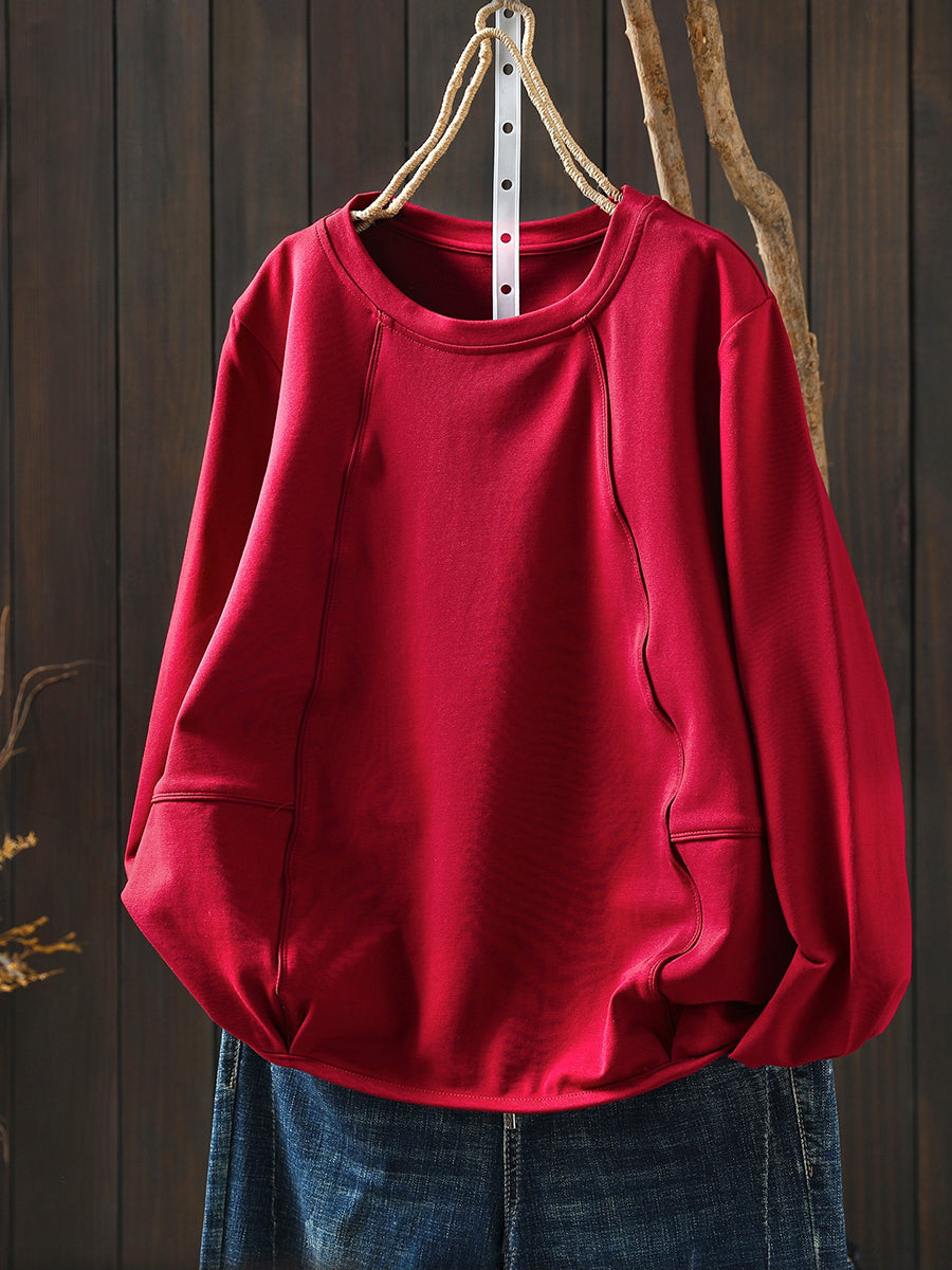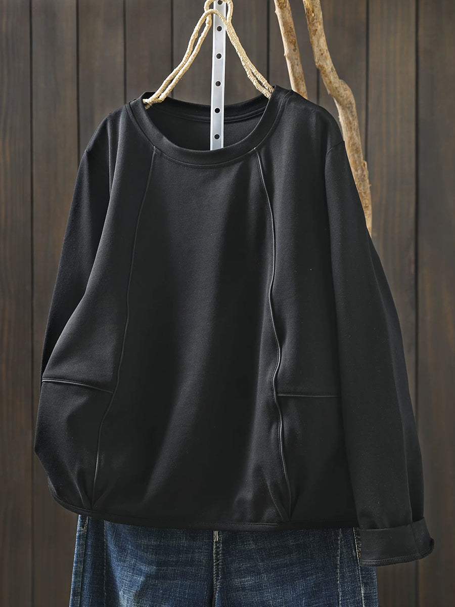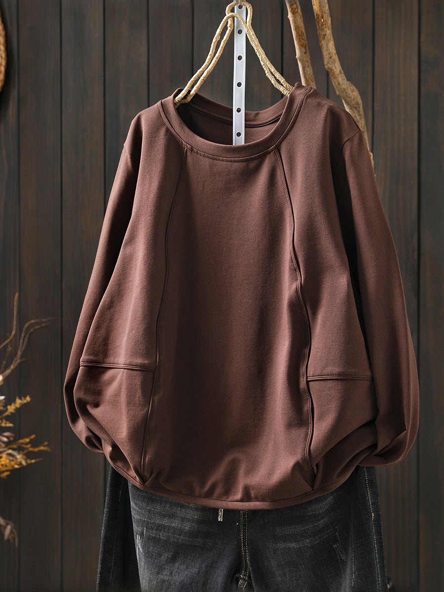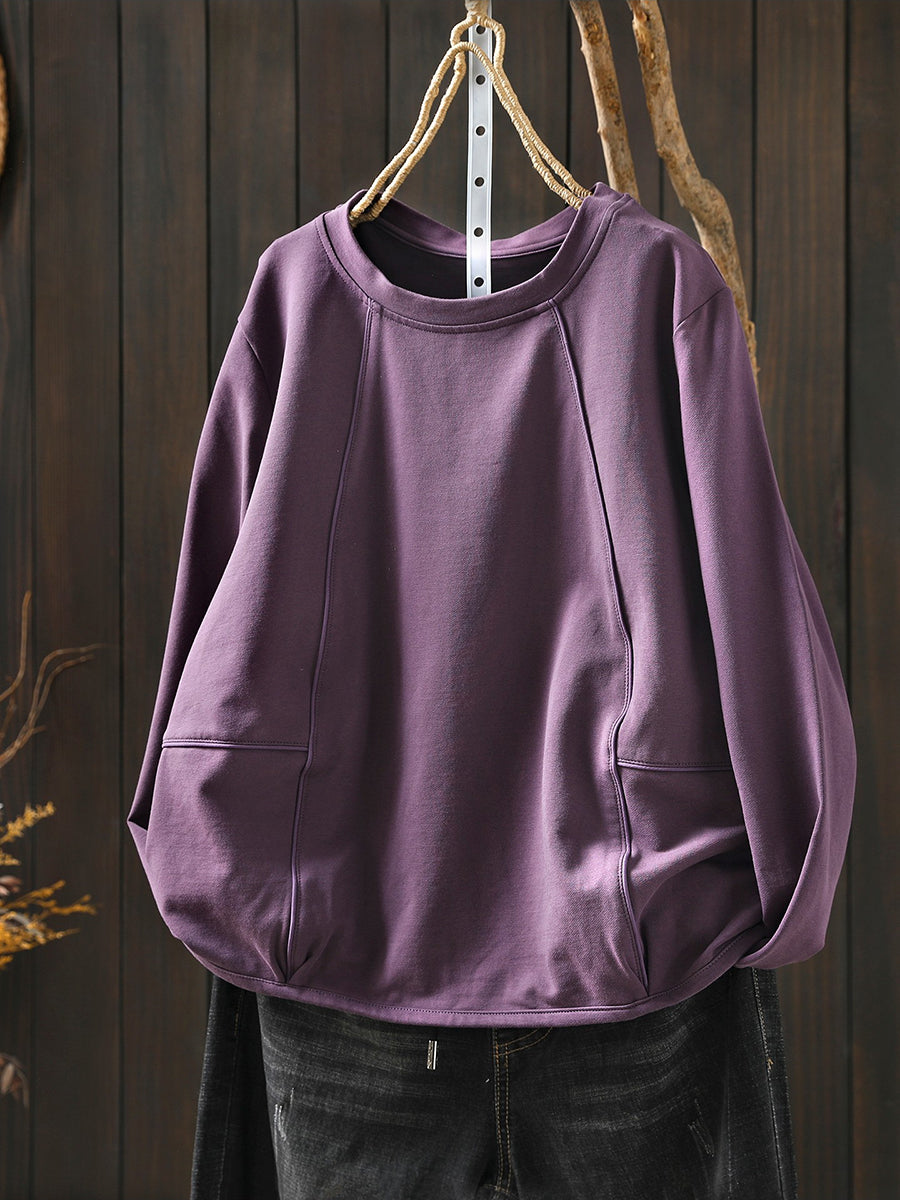 Women Casual Spring Pure Color O-Neck Blouse