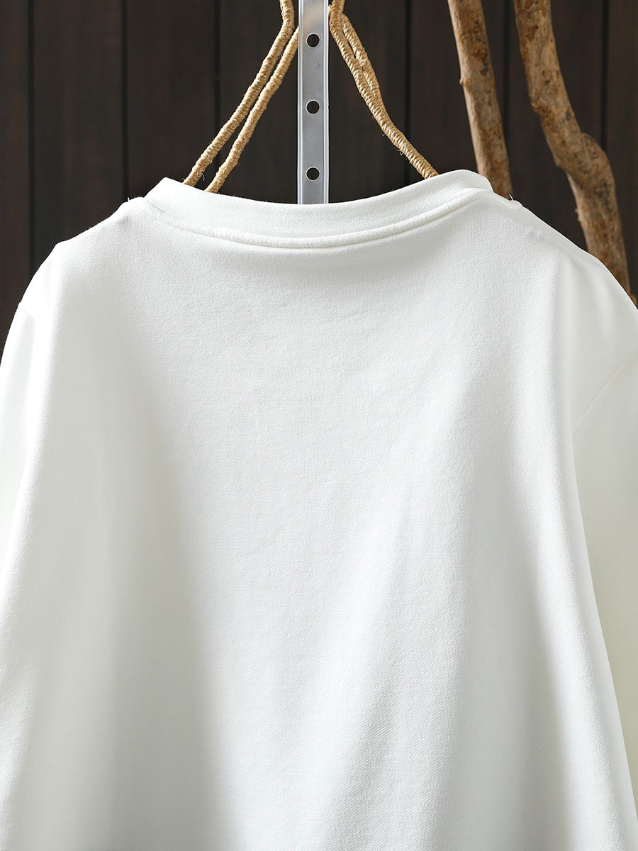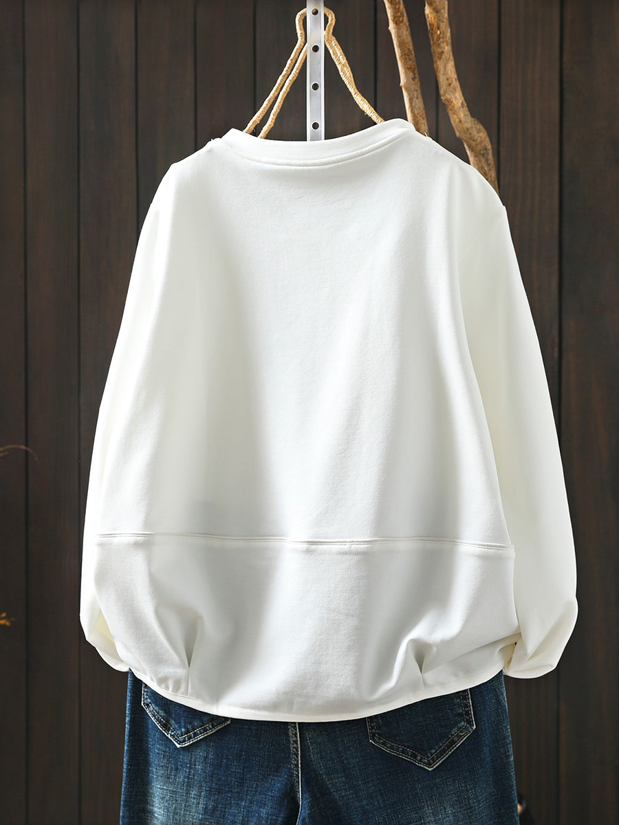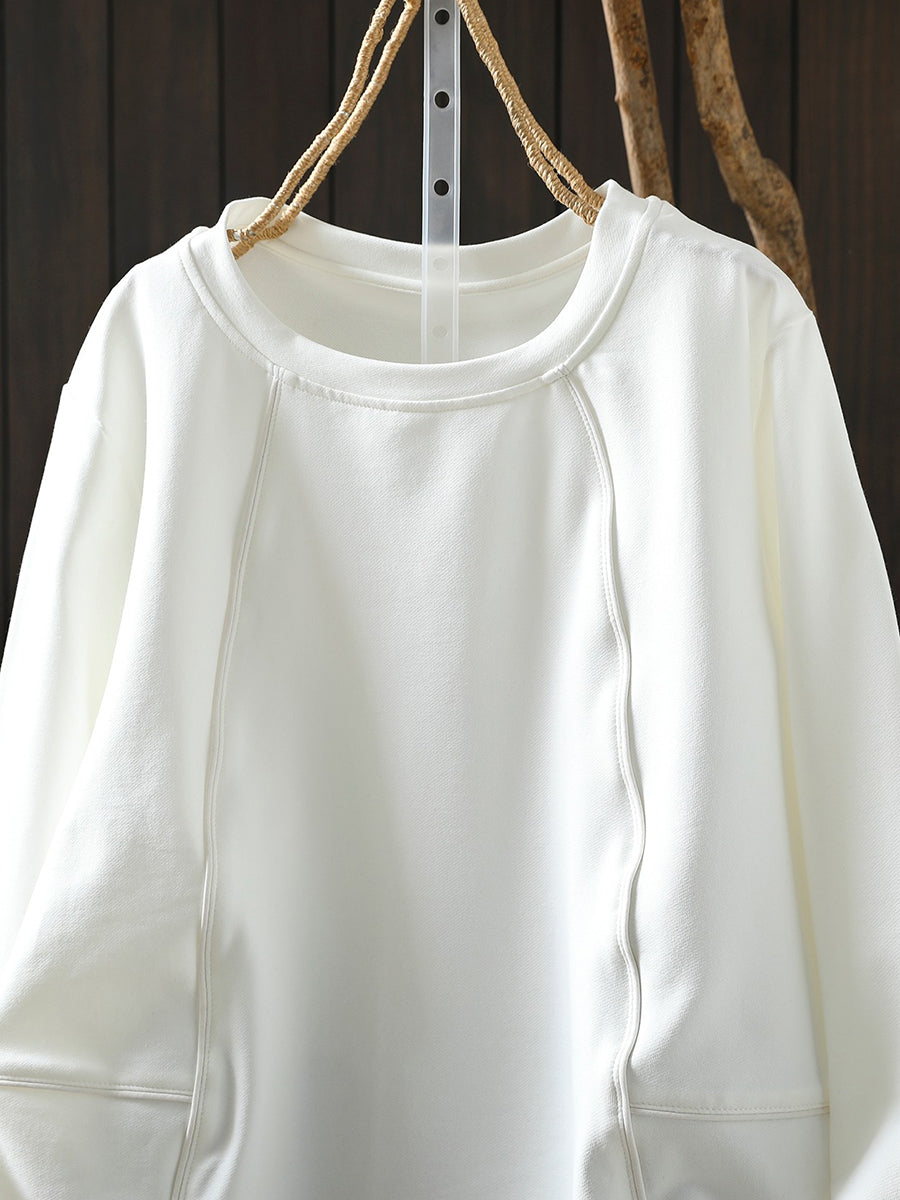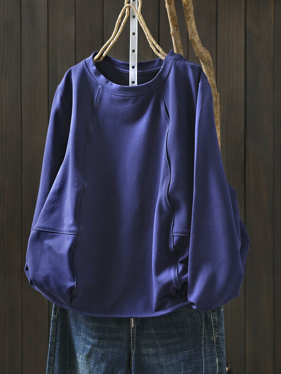 Women Casual Spring Pure Color O-Neck Blouse