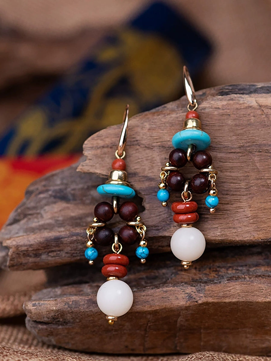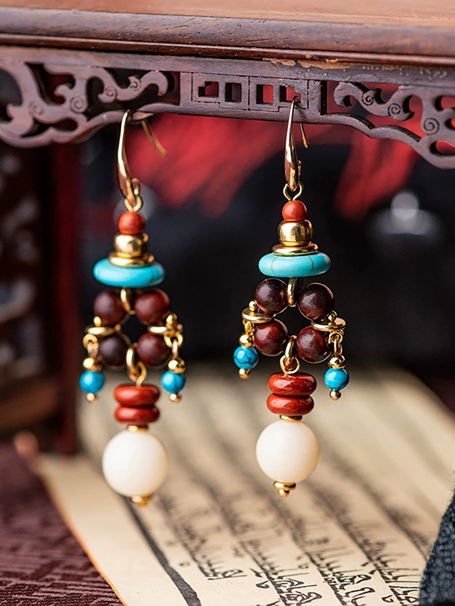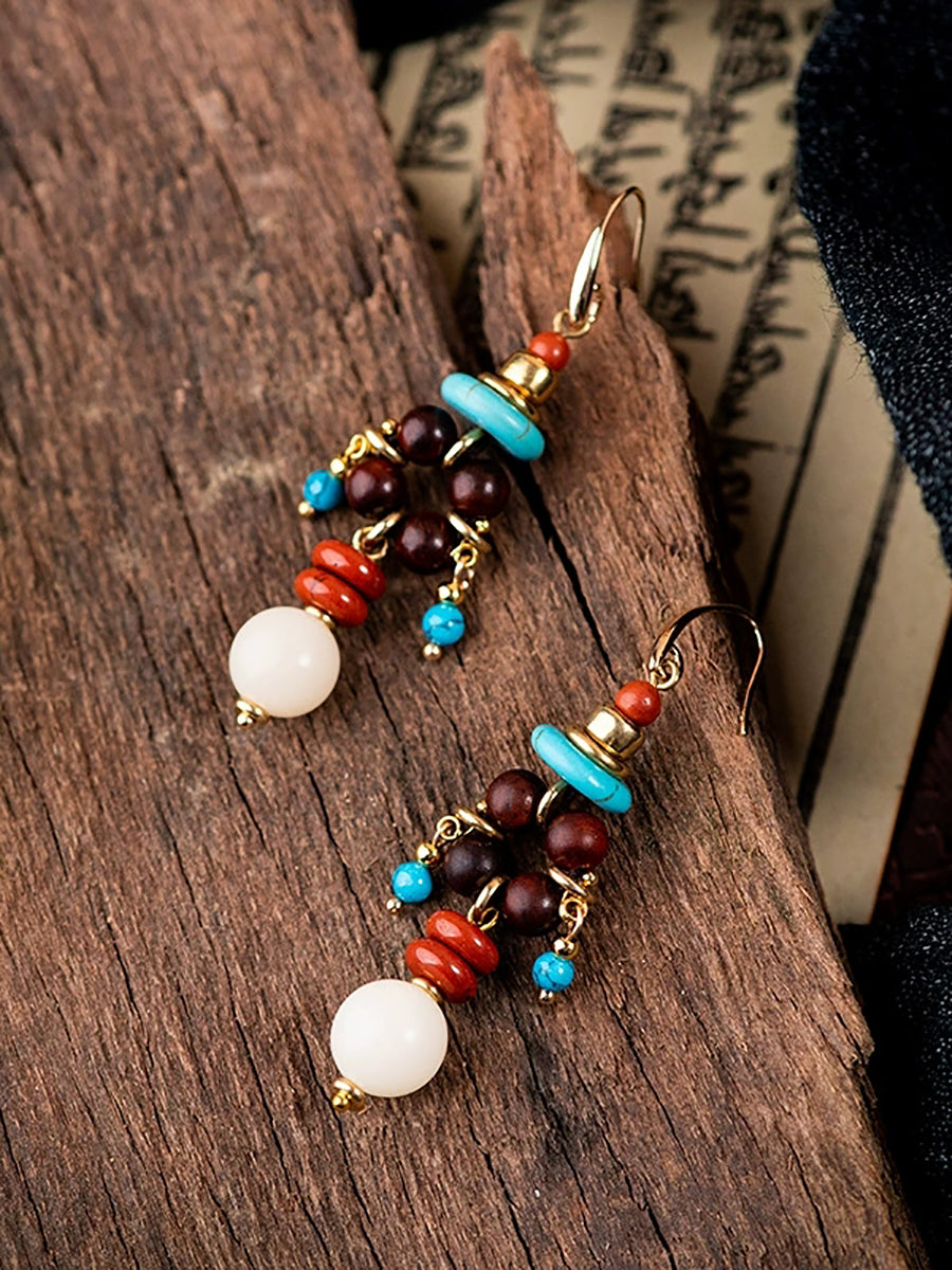 Women Ethnic Beads Alloy Tassel Earrings