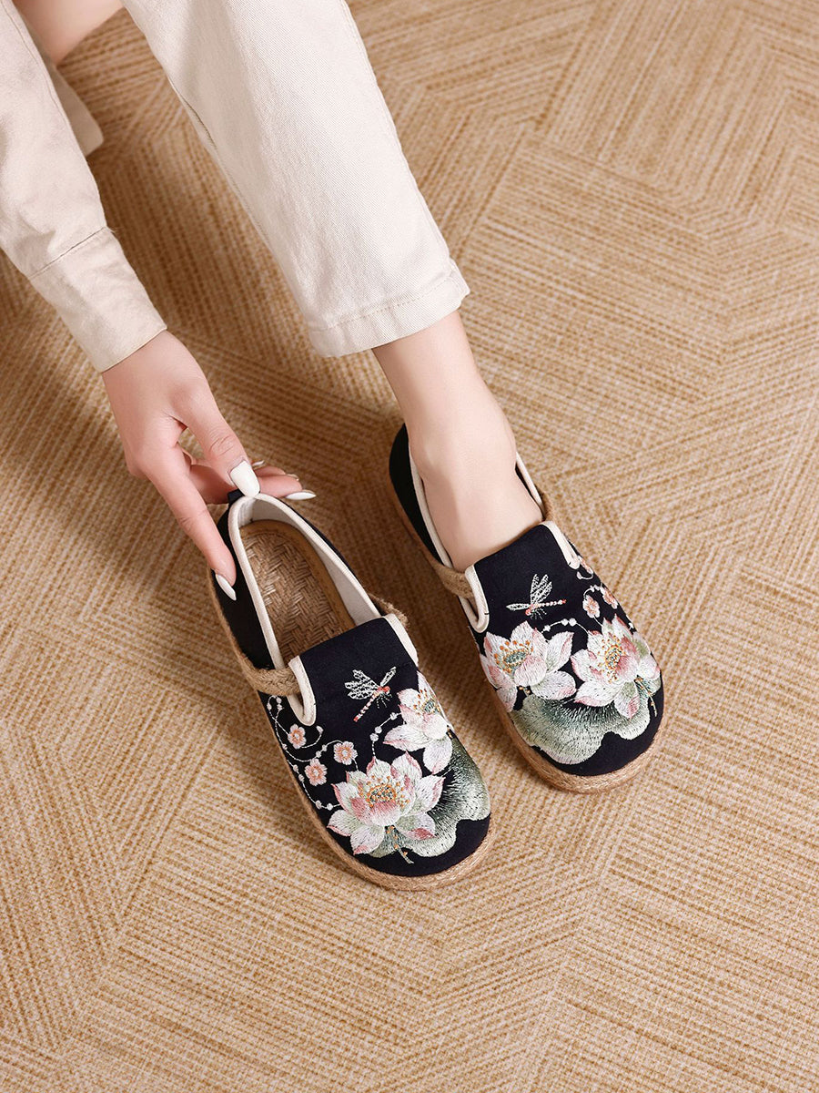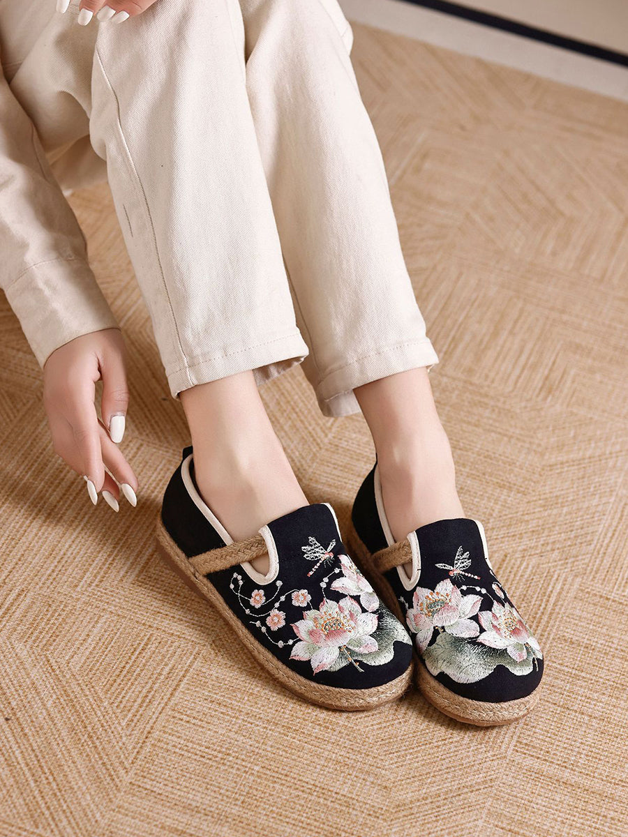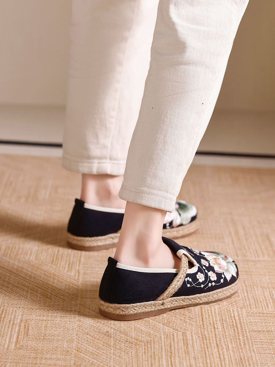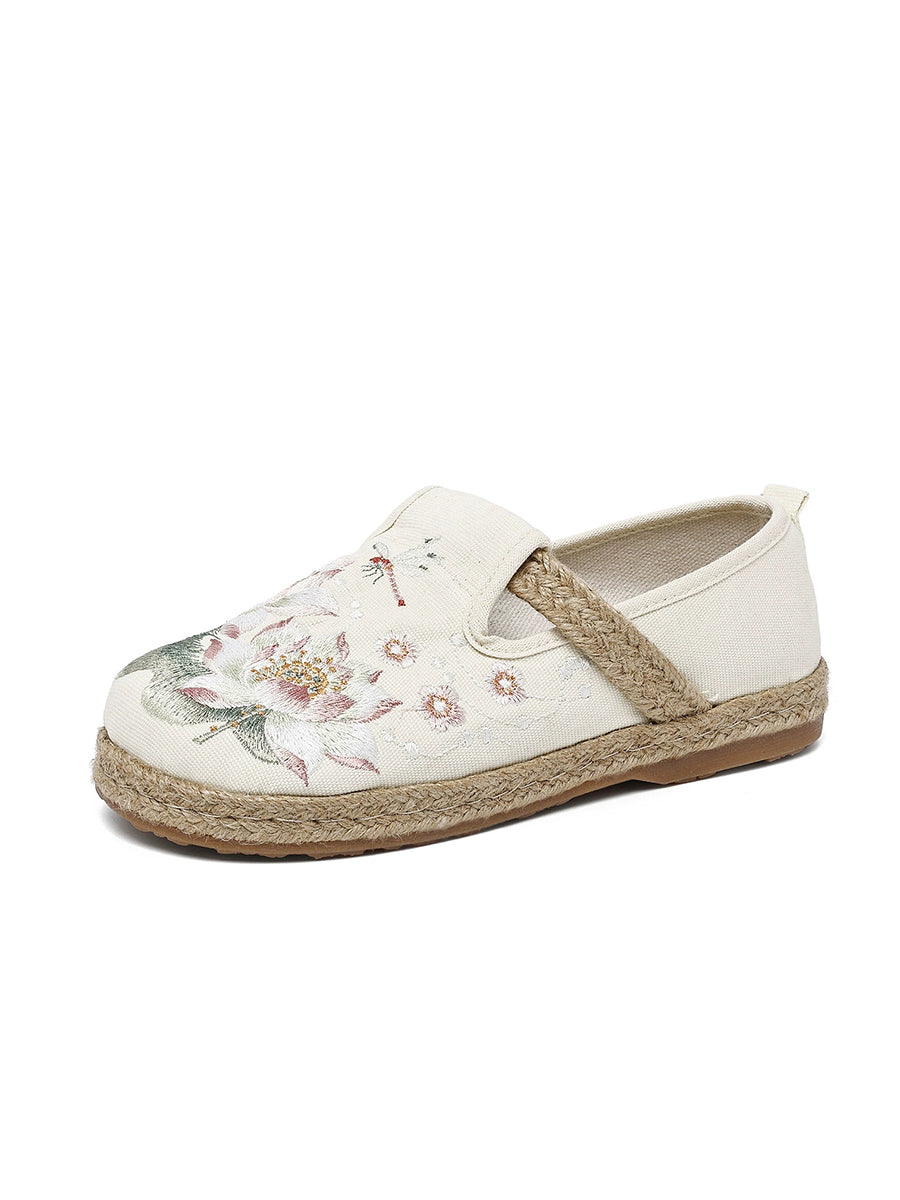 Women Ethnic Flower Embroidery Canvas Shoes