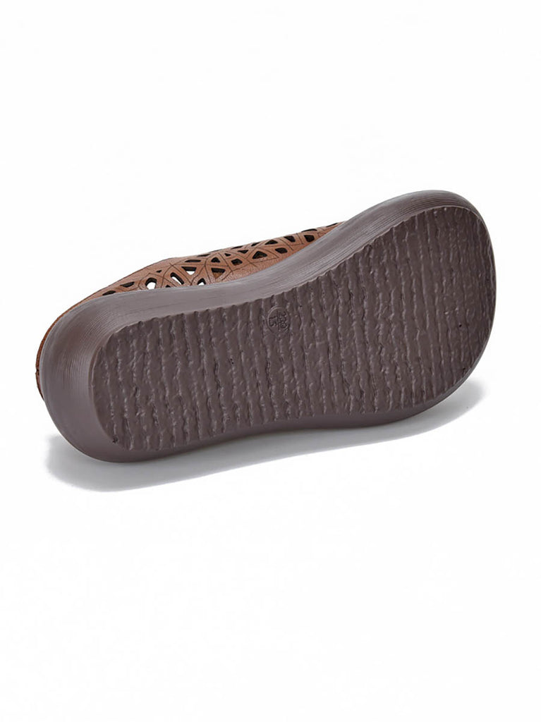 Women Ethnic Flower Leather Hollow Out Platfrom Slippers