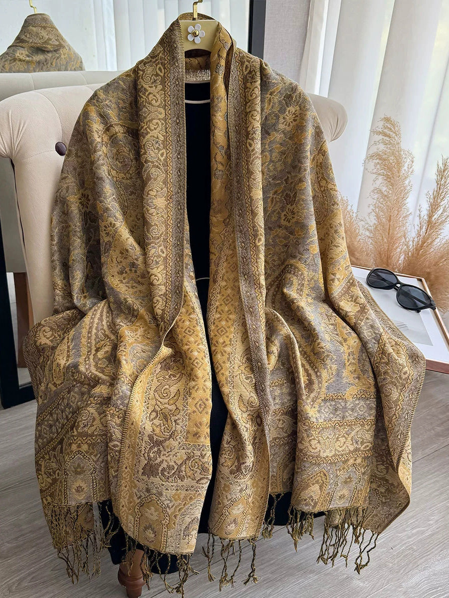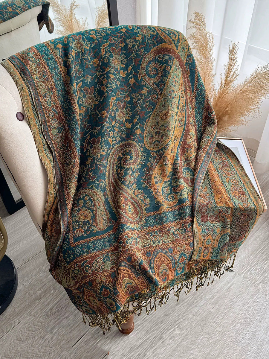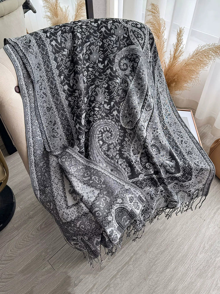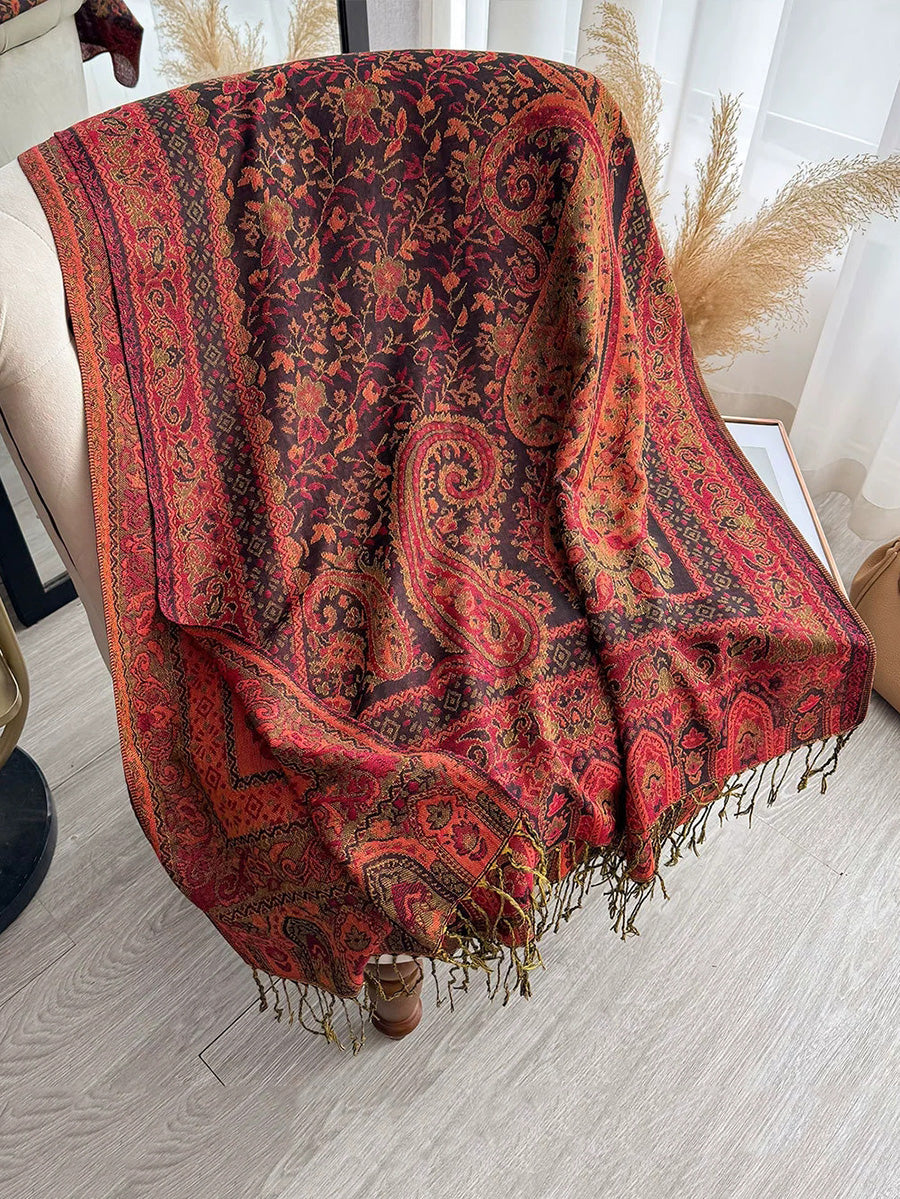 Women Ethnic Flower Tassel Shawl Scarf