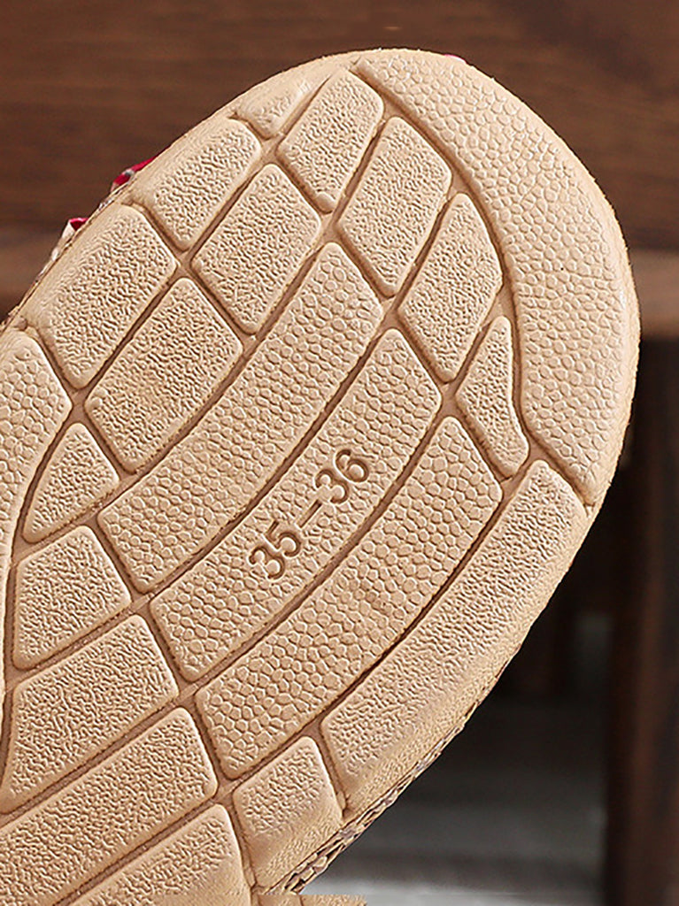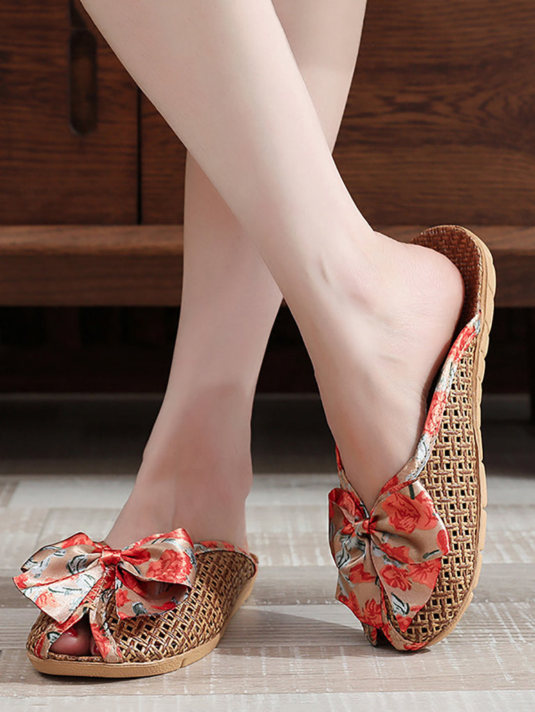 Women Ethnic Straw Weave Flower Bowknot Indoor Slippers