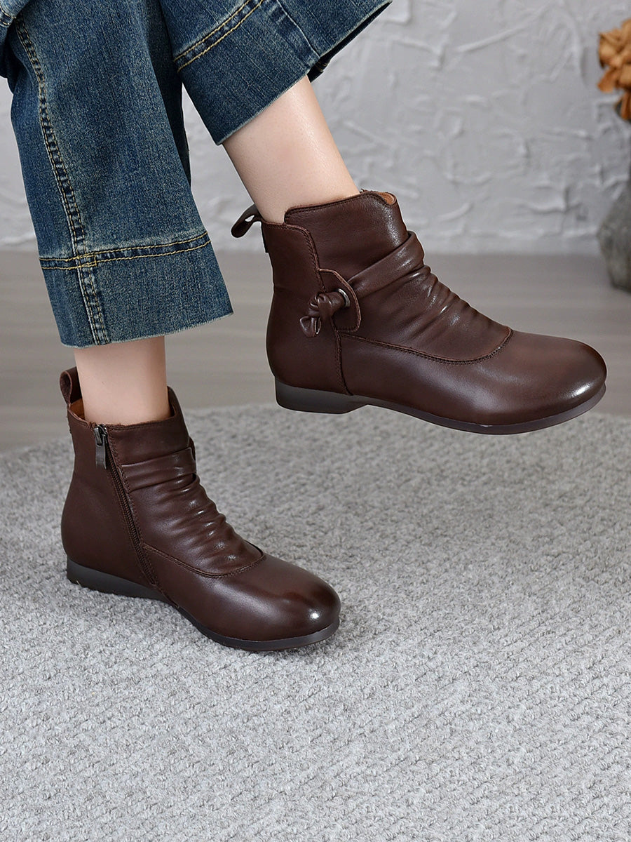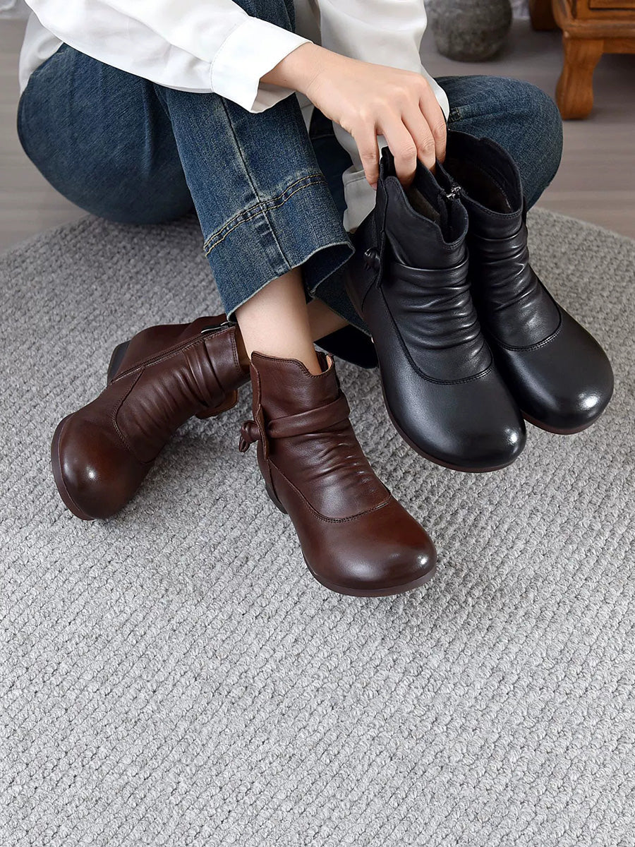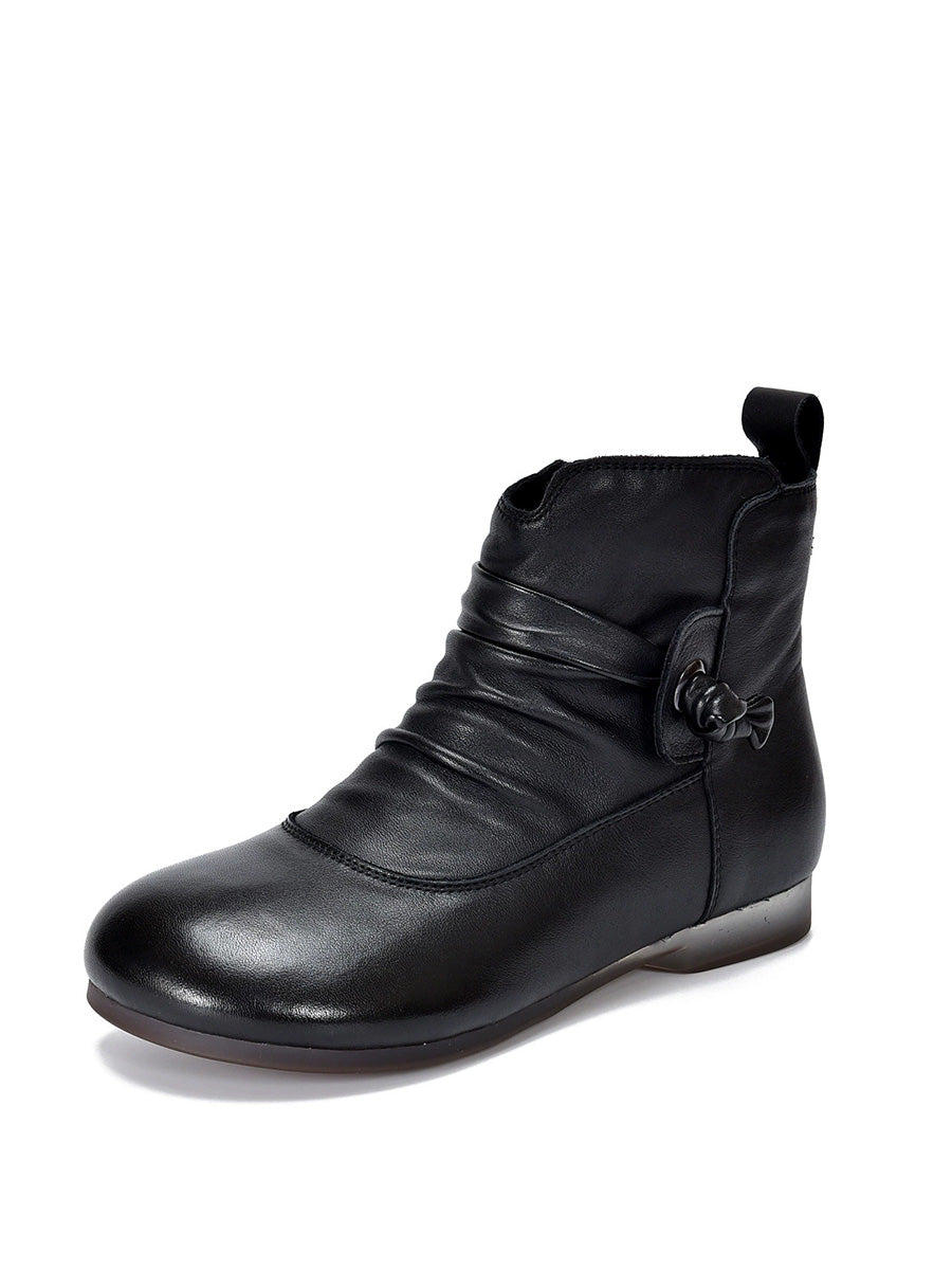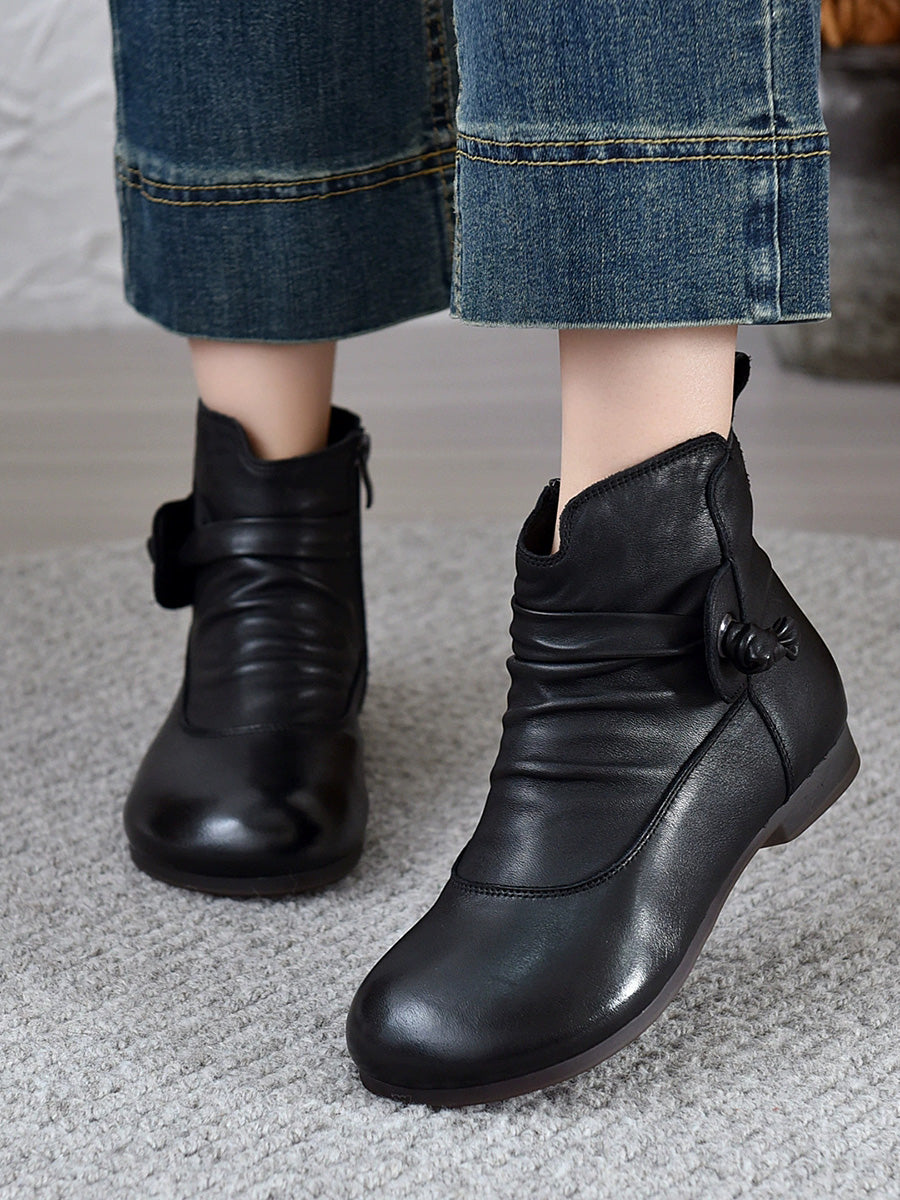Women Genuine Leather Soft Low Heel Ankle Boots