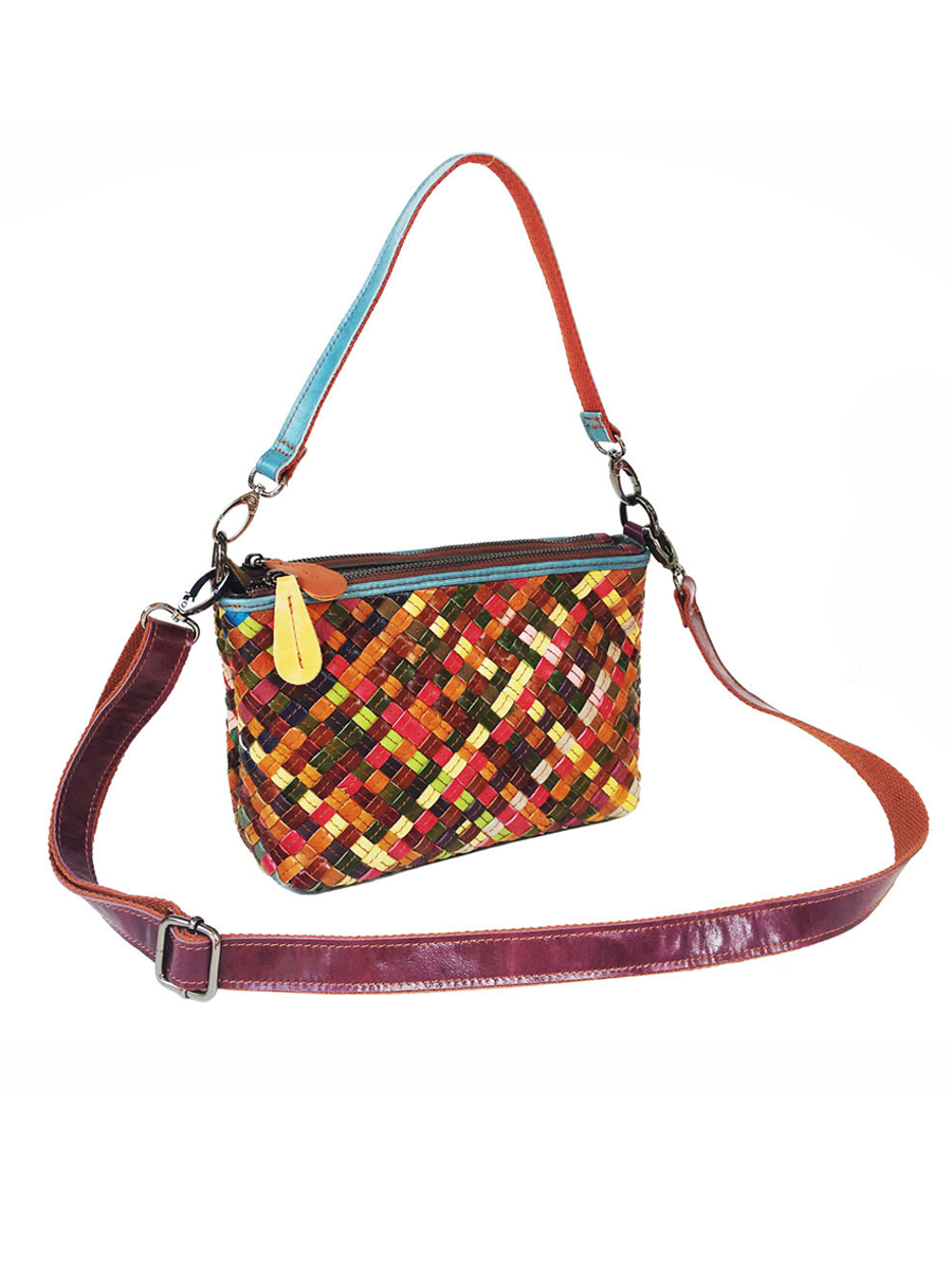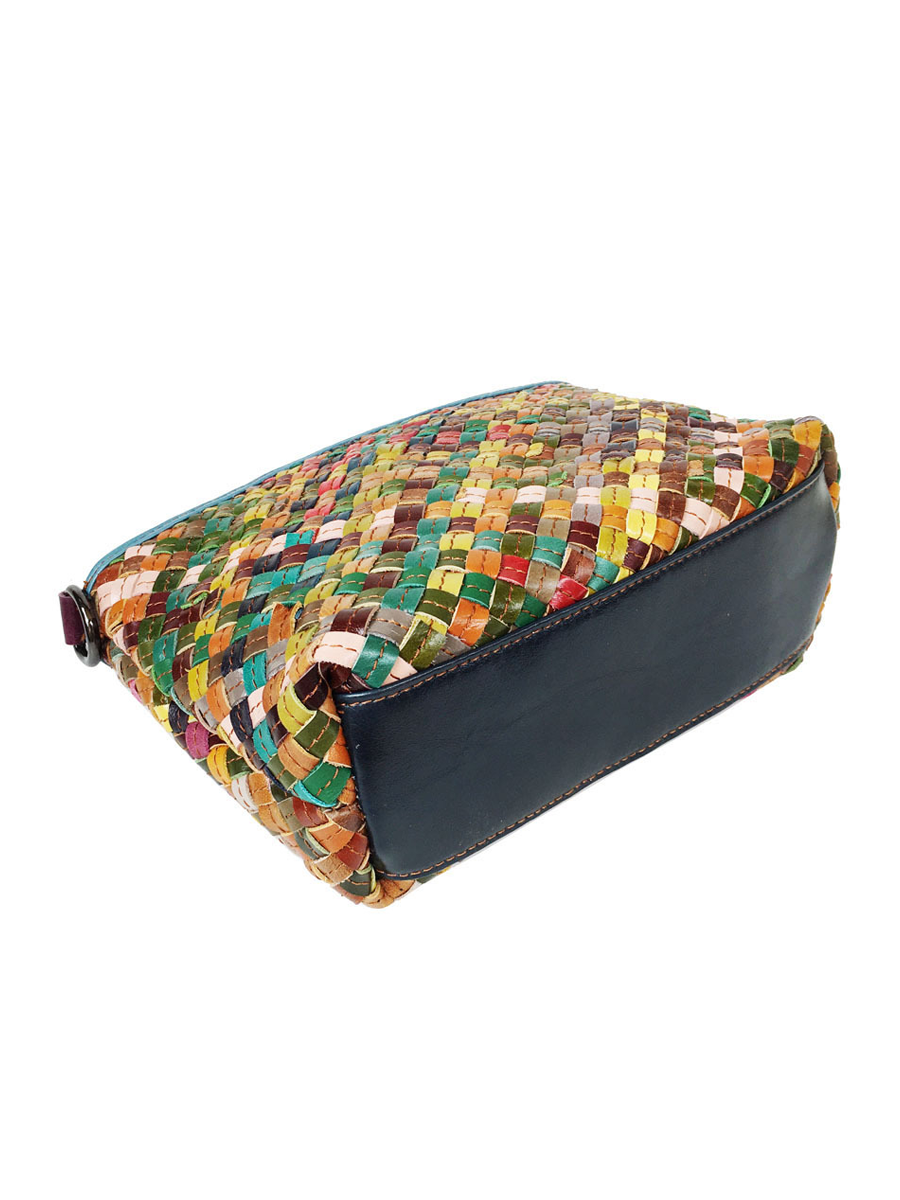 Women Colorblocking Hand Woven Leather Crossbody Bag