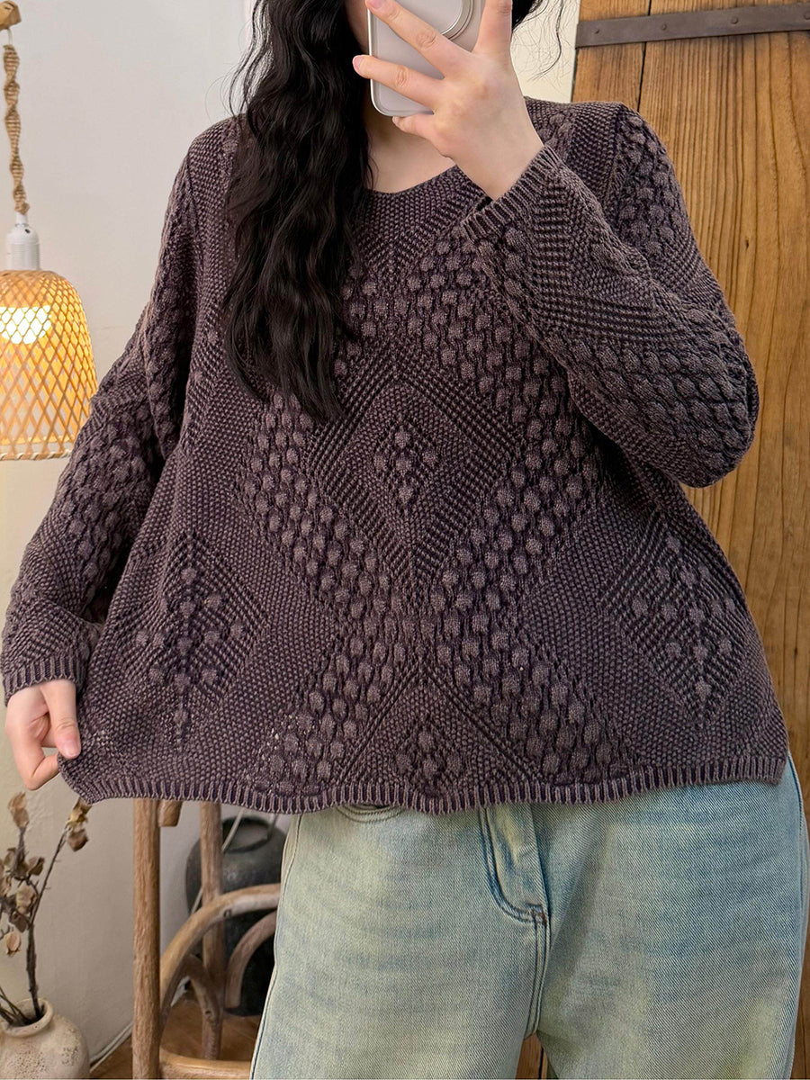 Women Retro Spring Cable Knitted V-Neck Sweater