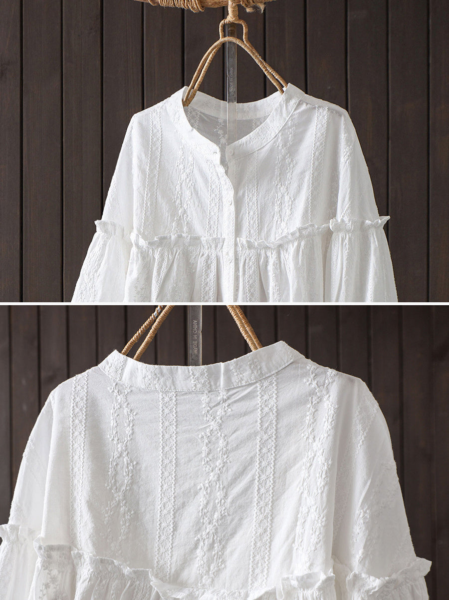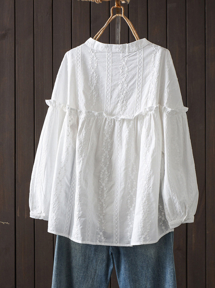 Women Spring Artsy Embroidery Stand Collar Blouse