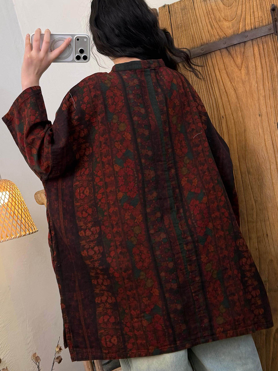 Women Spring Artsy Floral Cotton Stand Collar Blouse