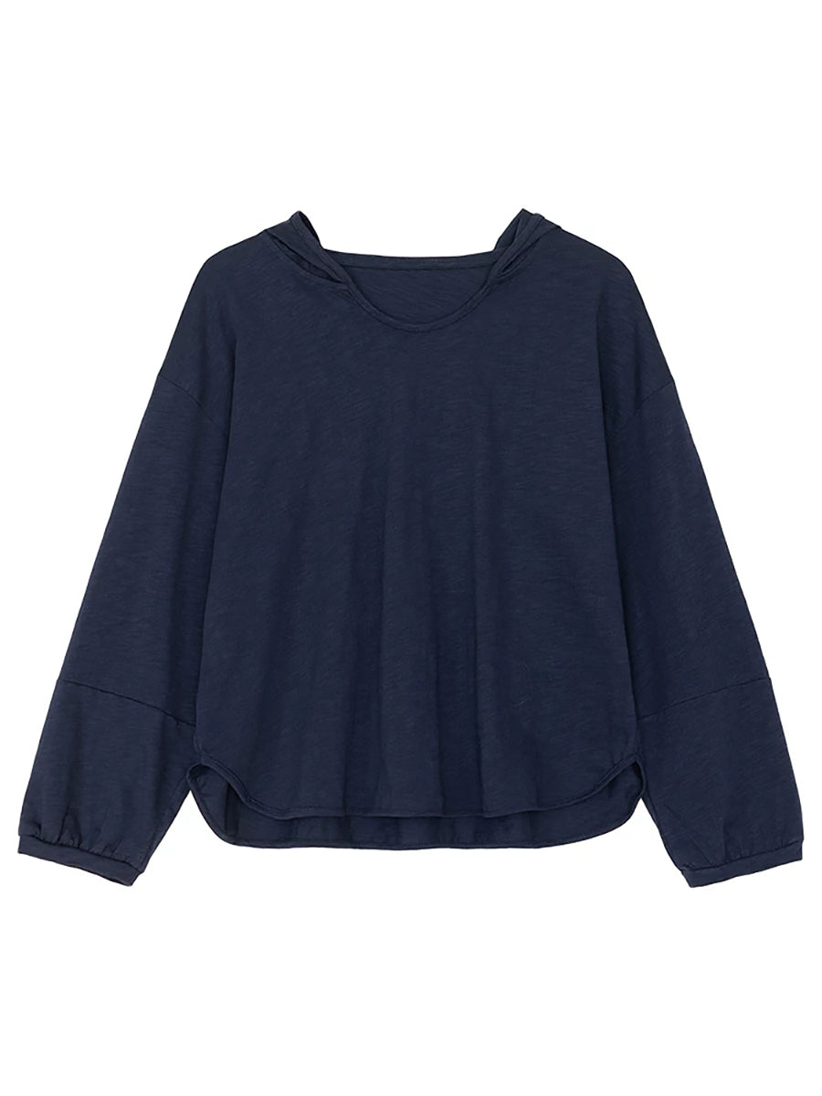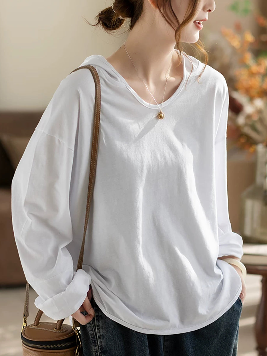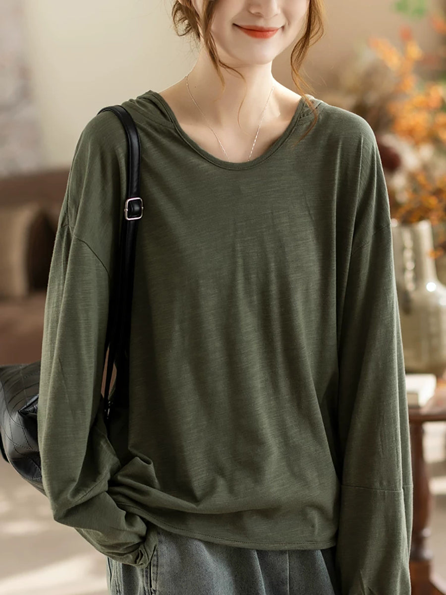 Women Spring Artsy Pure Color 100%Cotton Hoodie