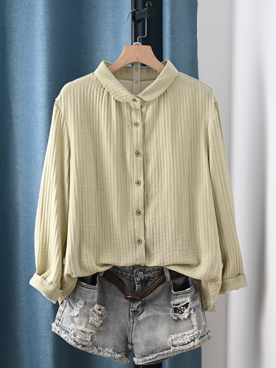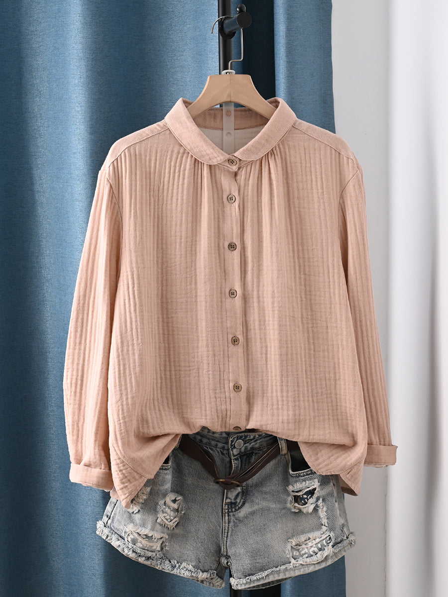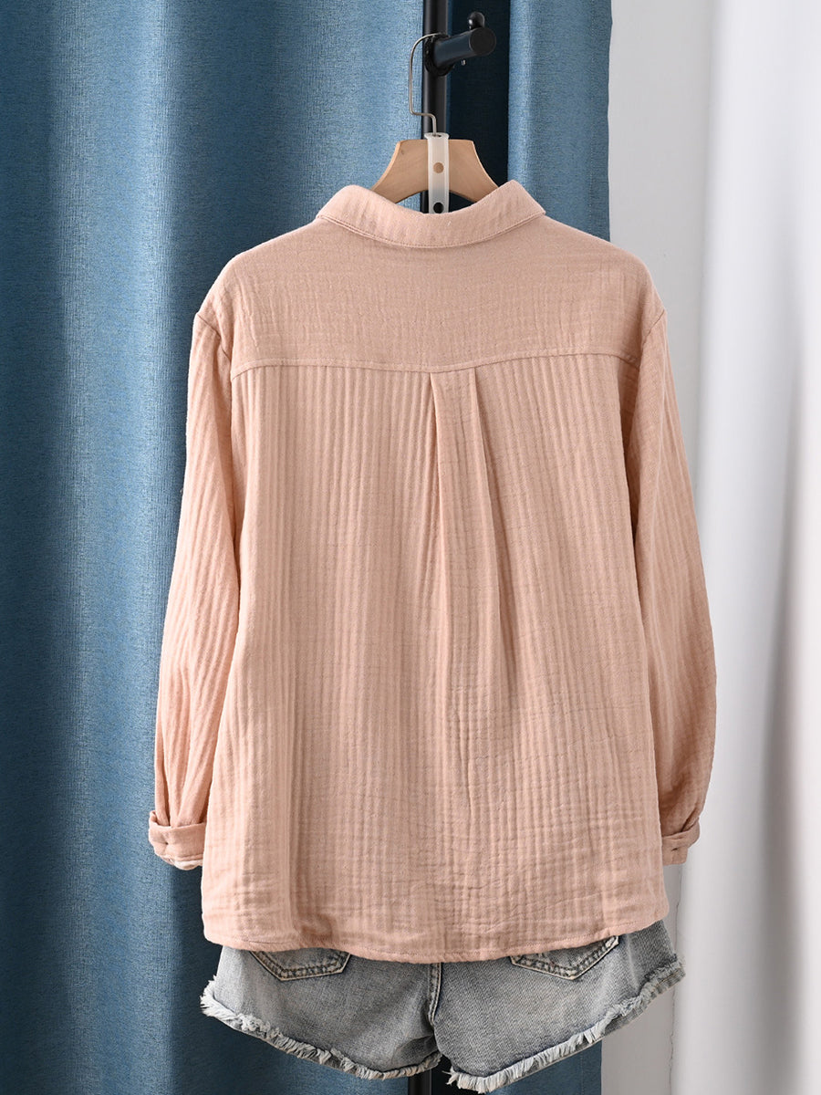 Women Spring Artsy Pure Color 100%Cotton Shirt