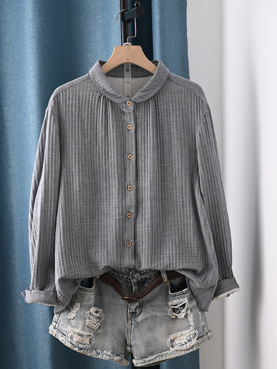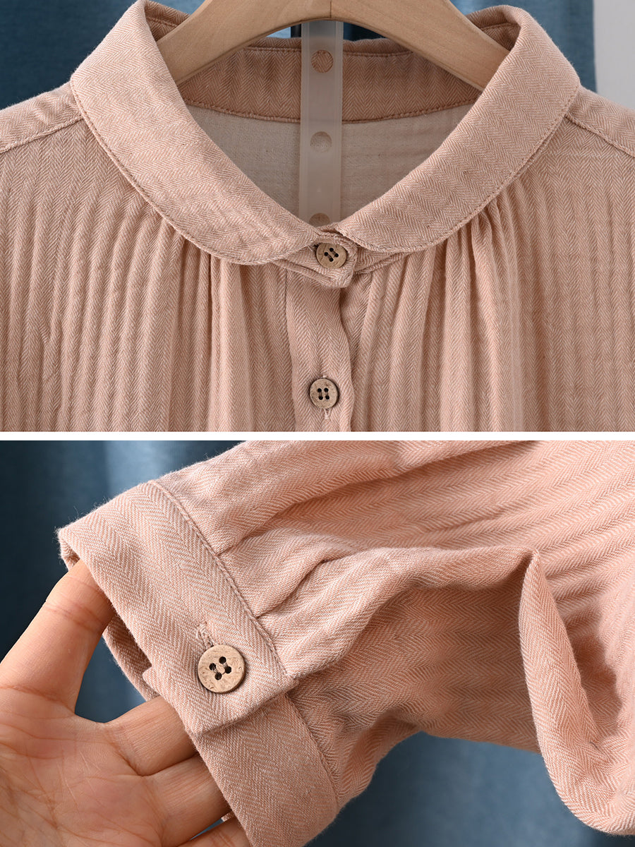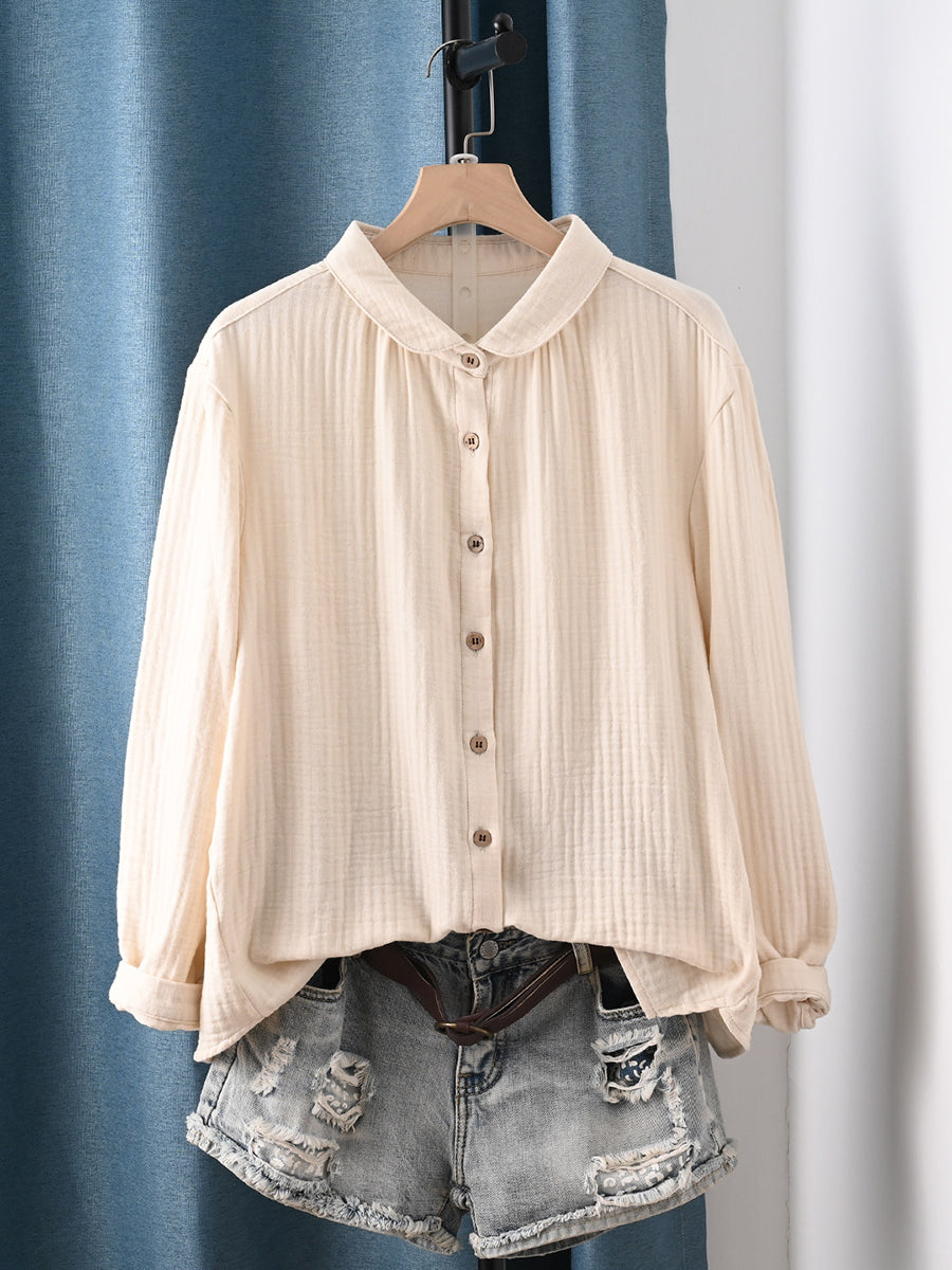 Women Spring Artsy Pure Color 100%Cotton Shirt