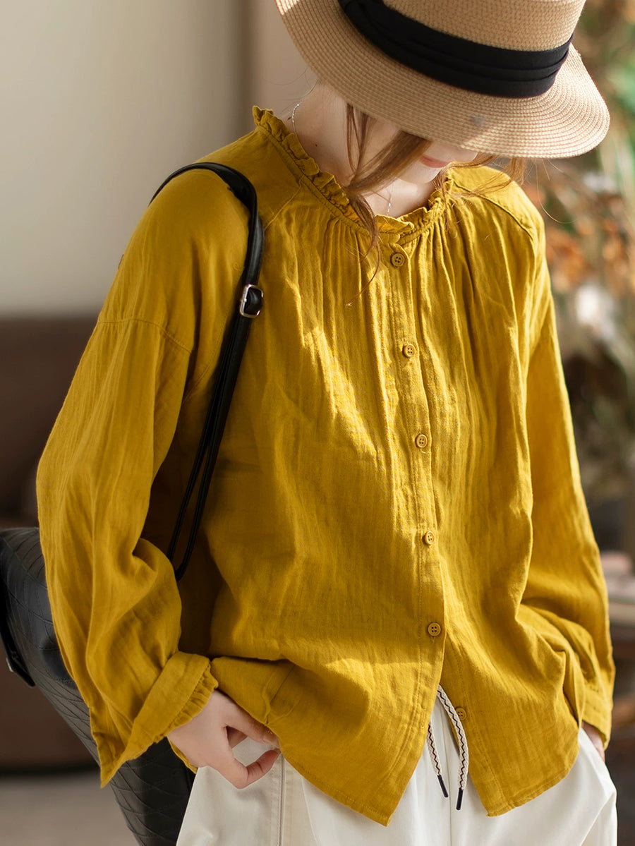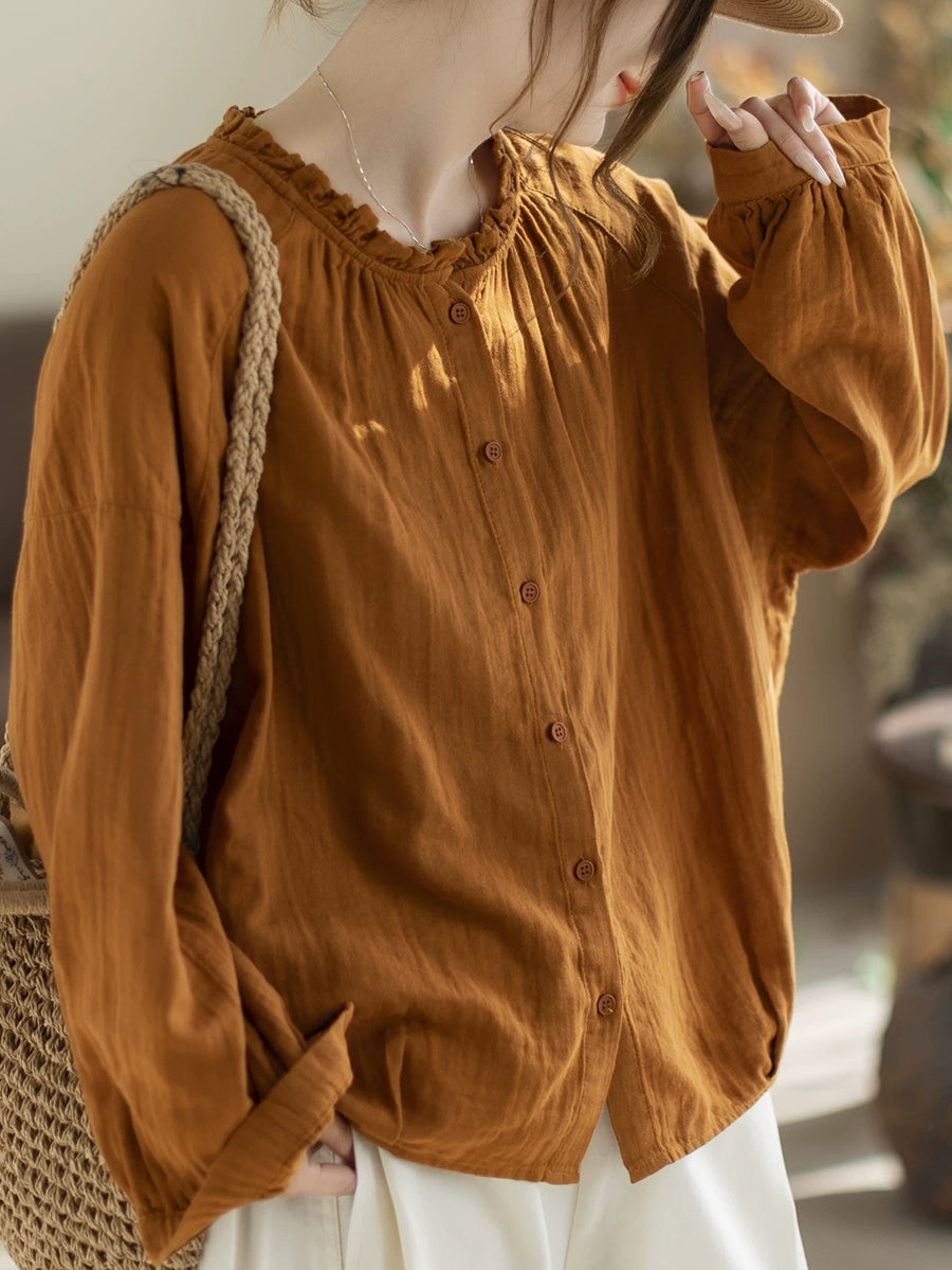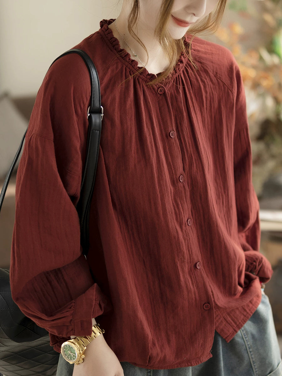 Women Spring Artsy Pure Color Blouse