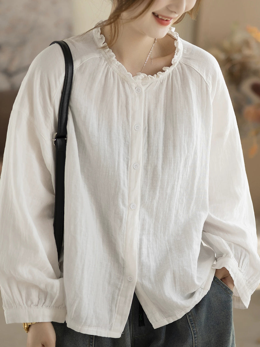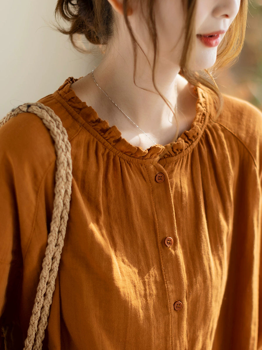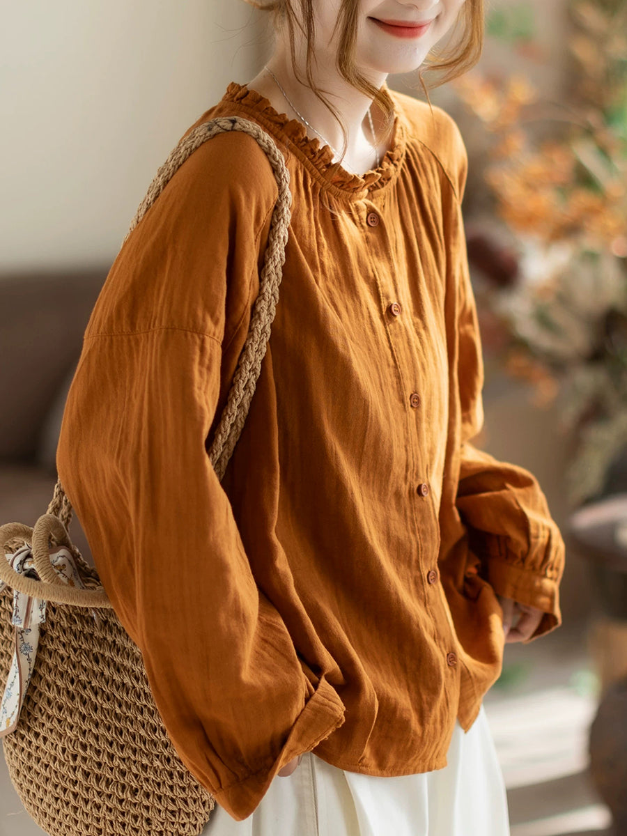 Women Spring Artsy Pure Color Blouse