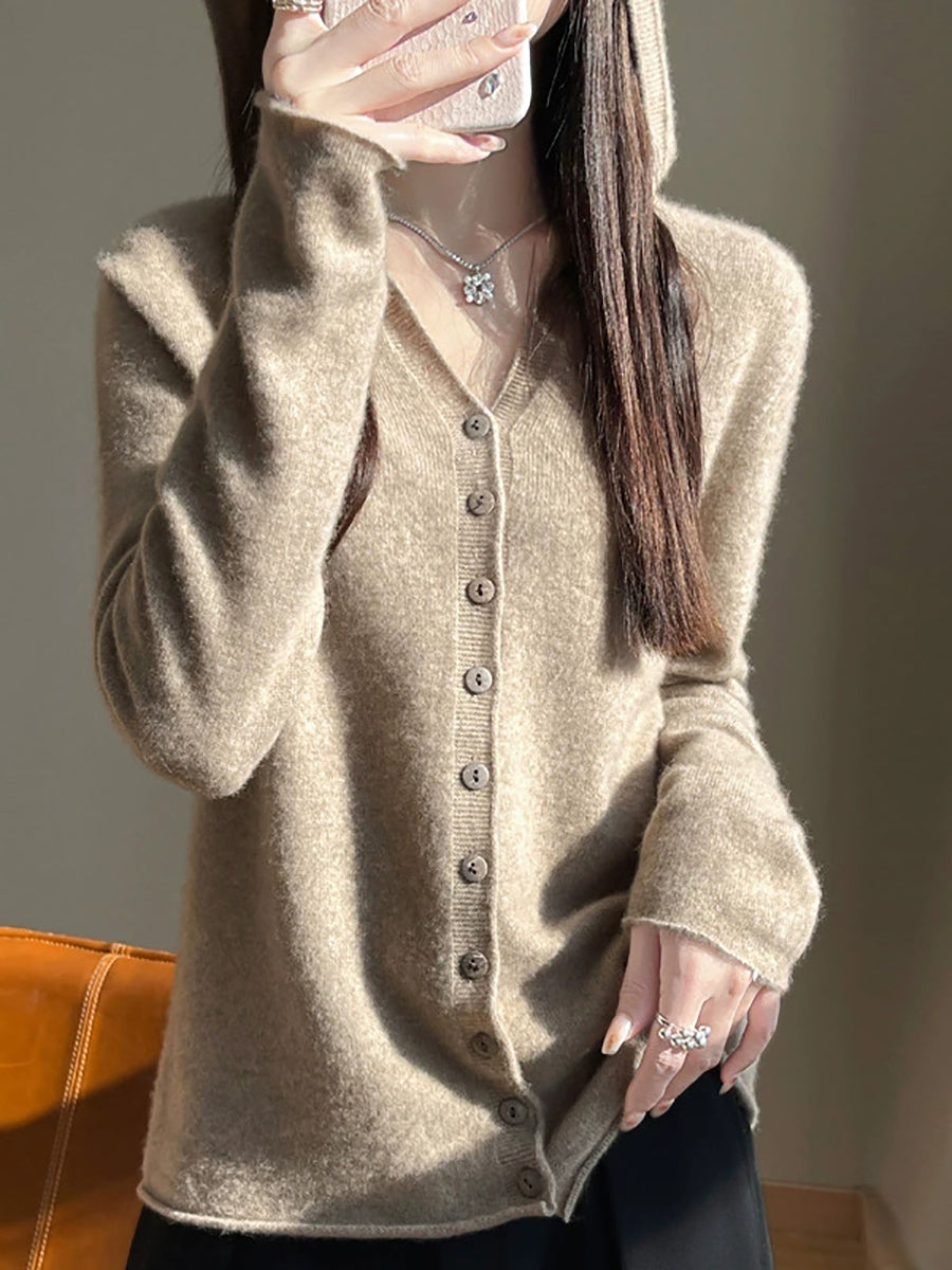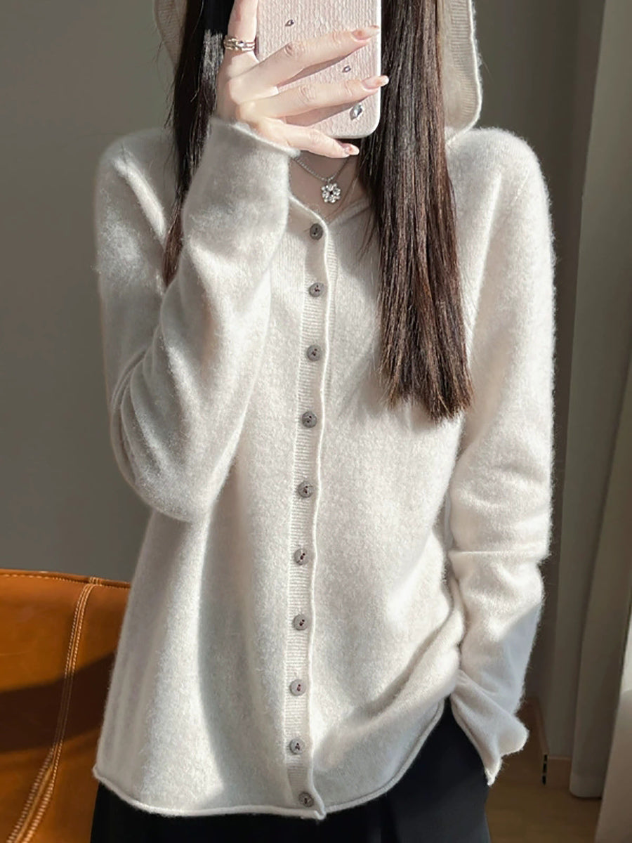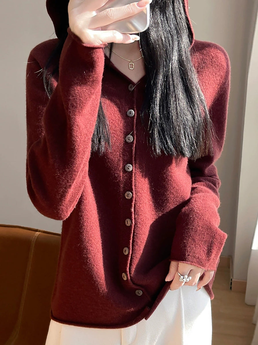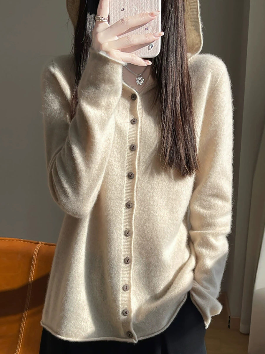 Women Spring Artsy Pure Color Cardigan Hoodie