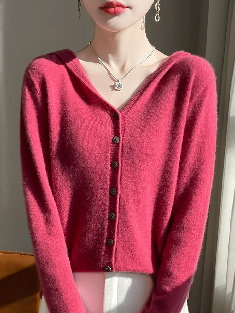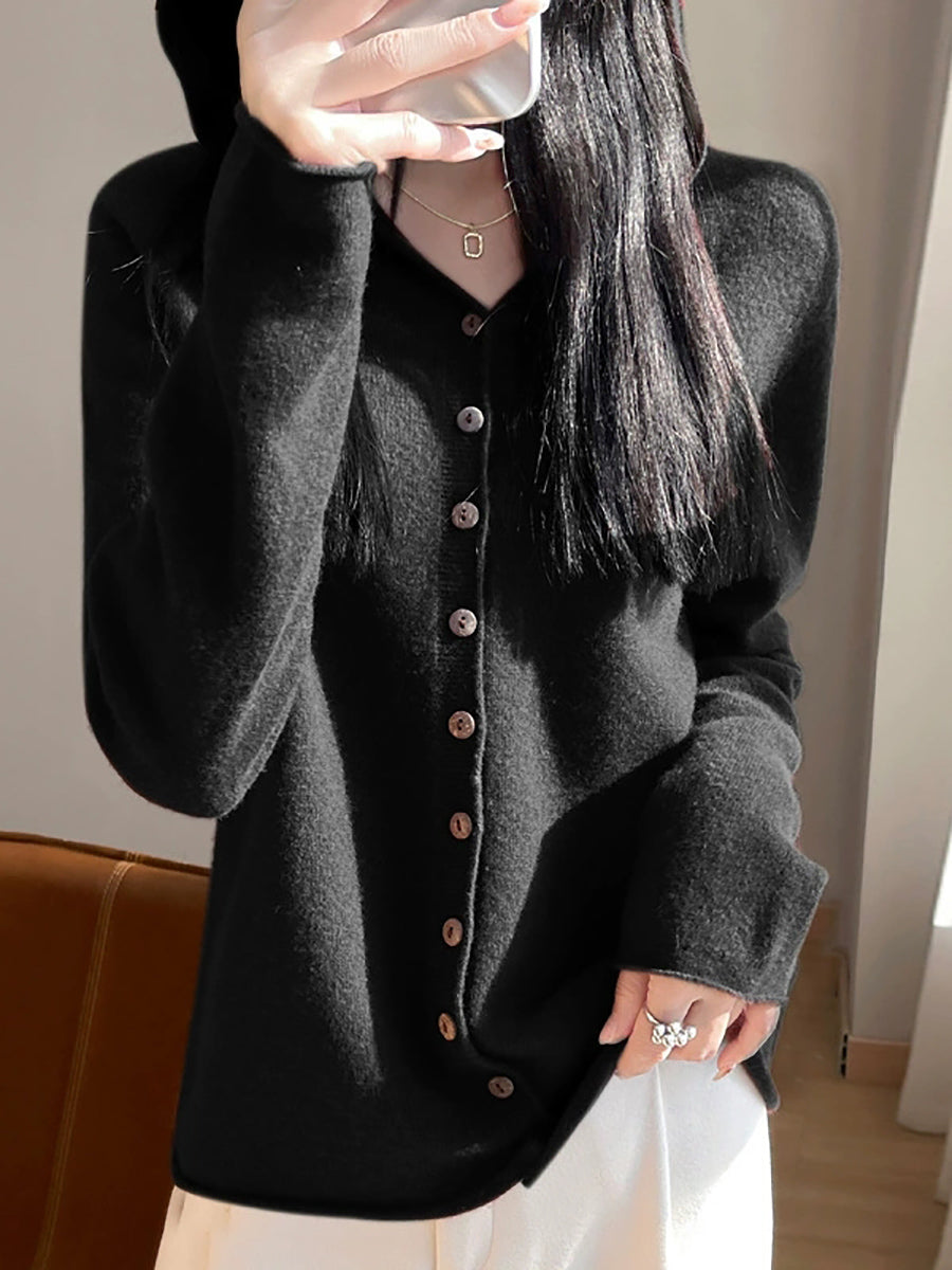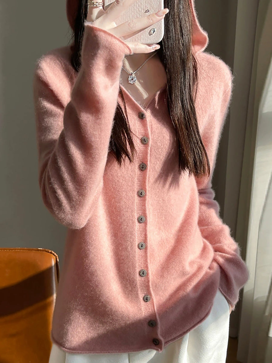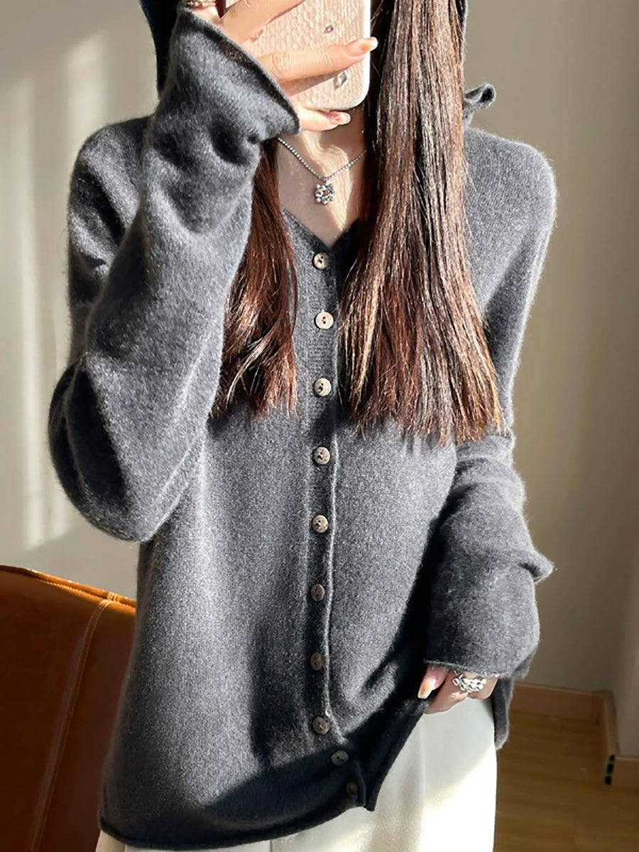 Women Spring Artsy Pure Color Cardigan Hoodie