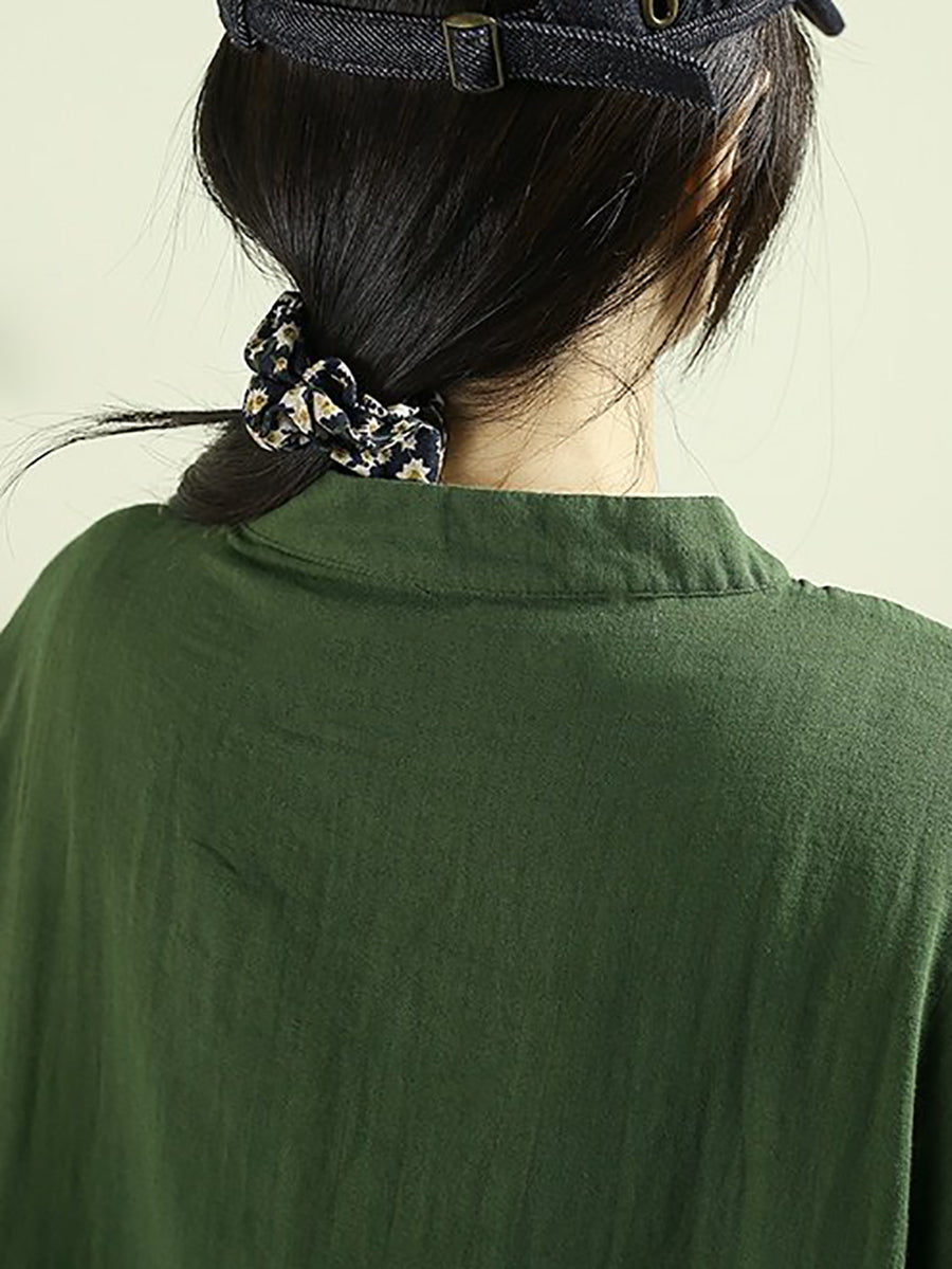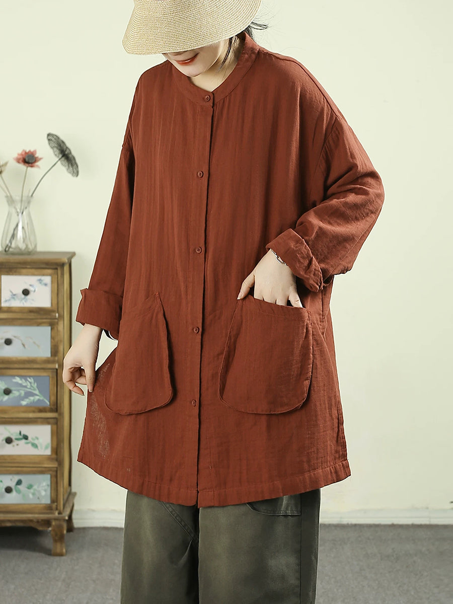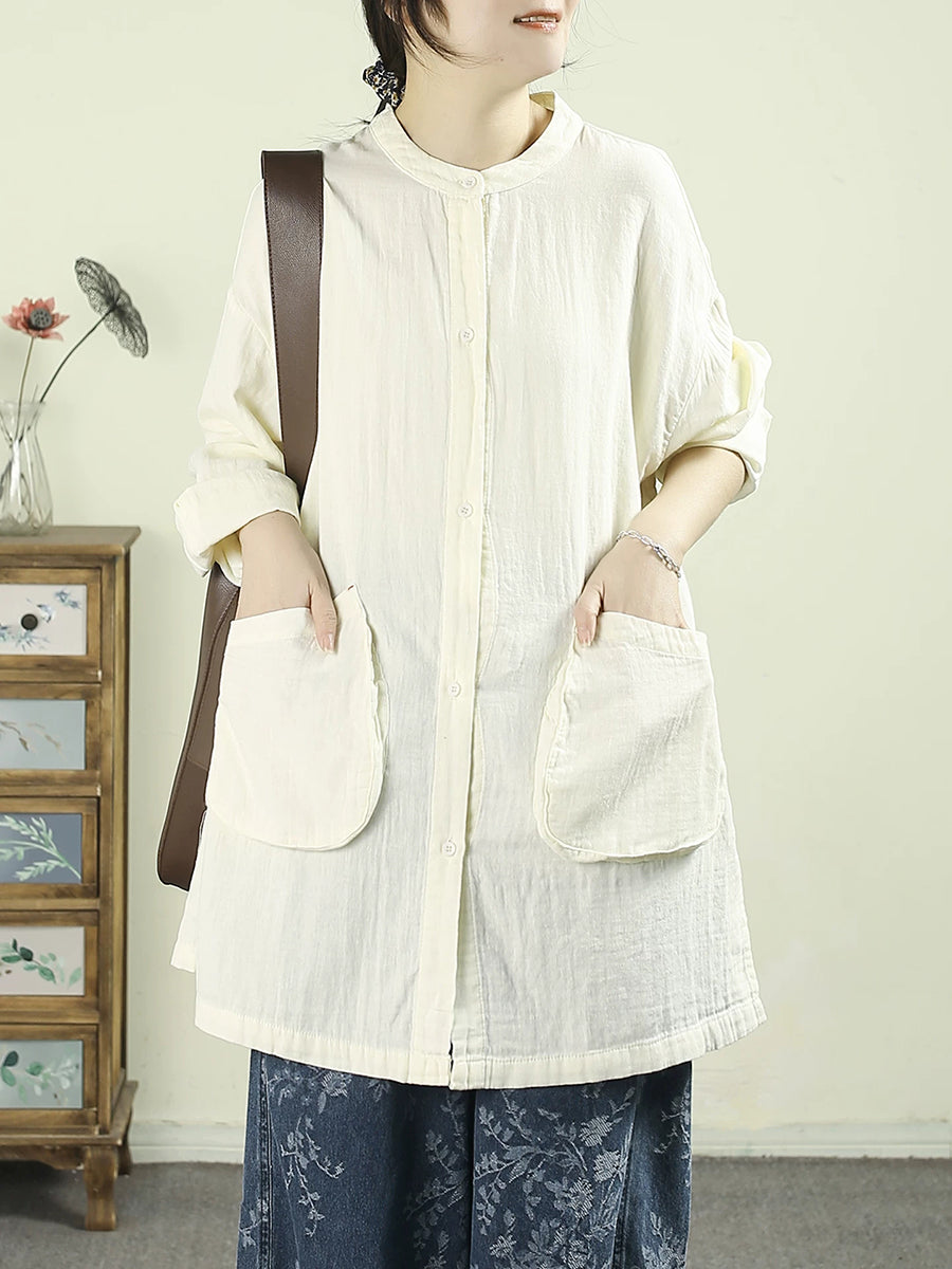 Women Spring Artsy Pure Color Cotton Long Shirt