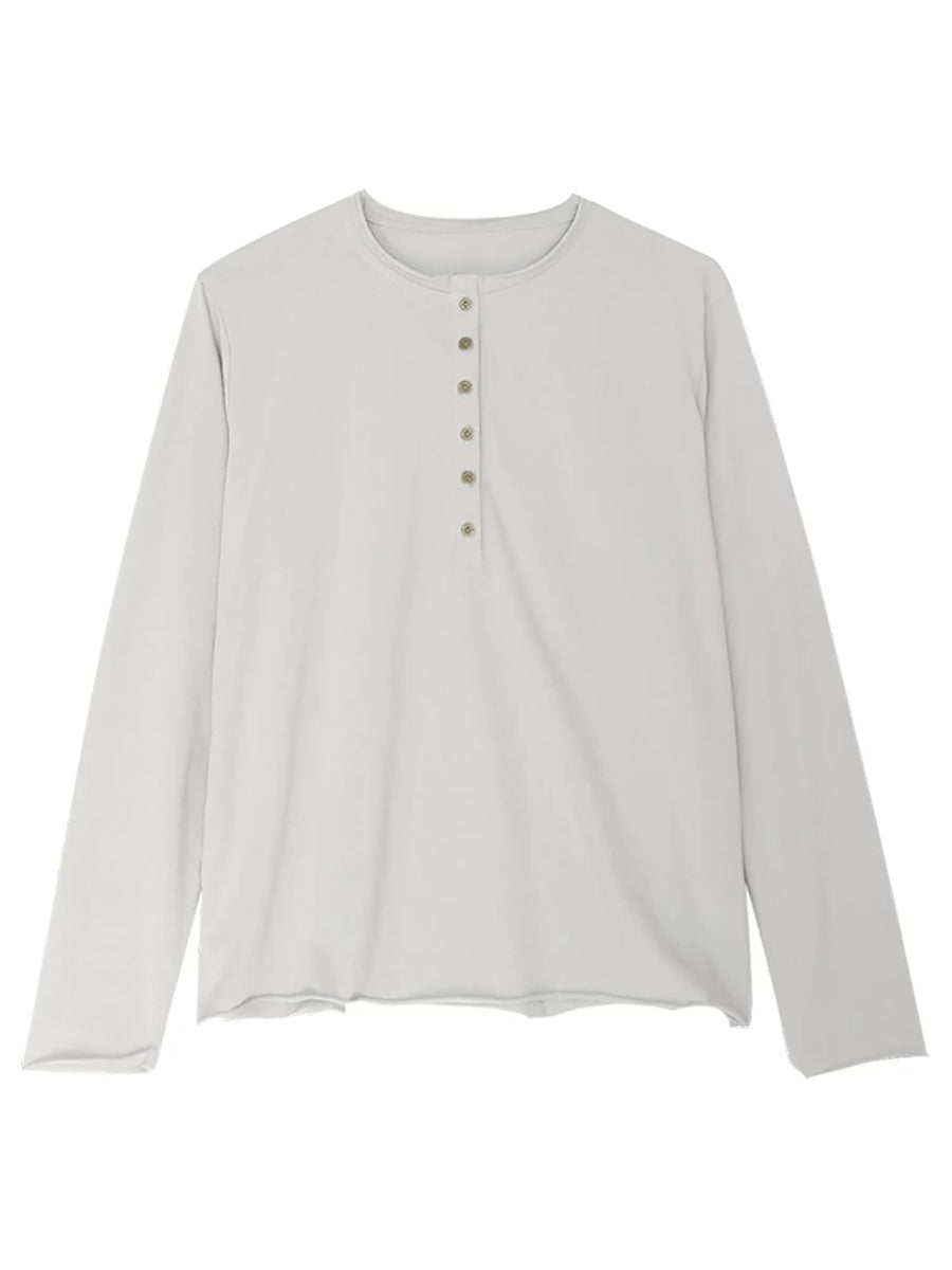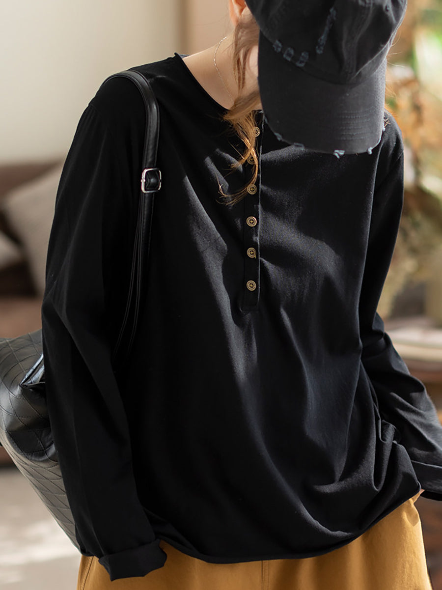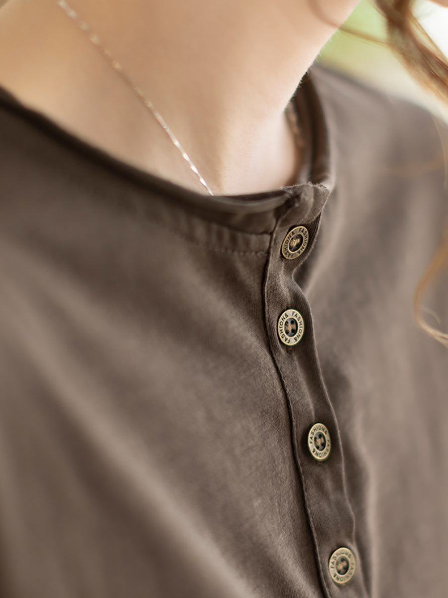 Women Spring Artsy Pure Color Cotton O-Neck Blouse