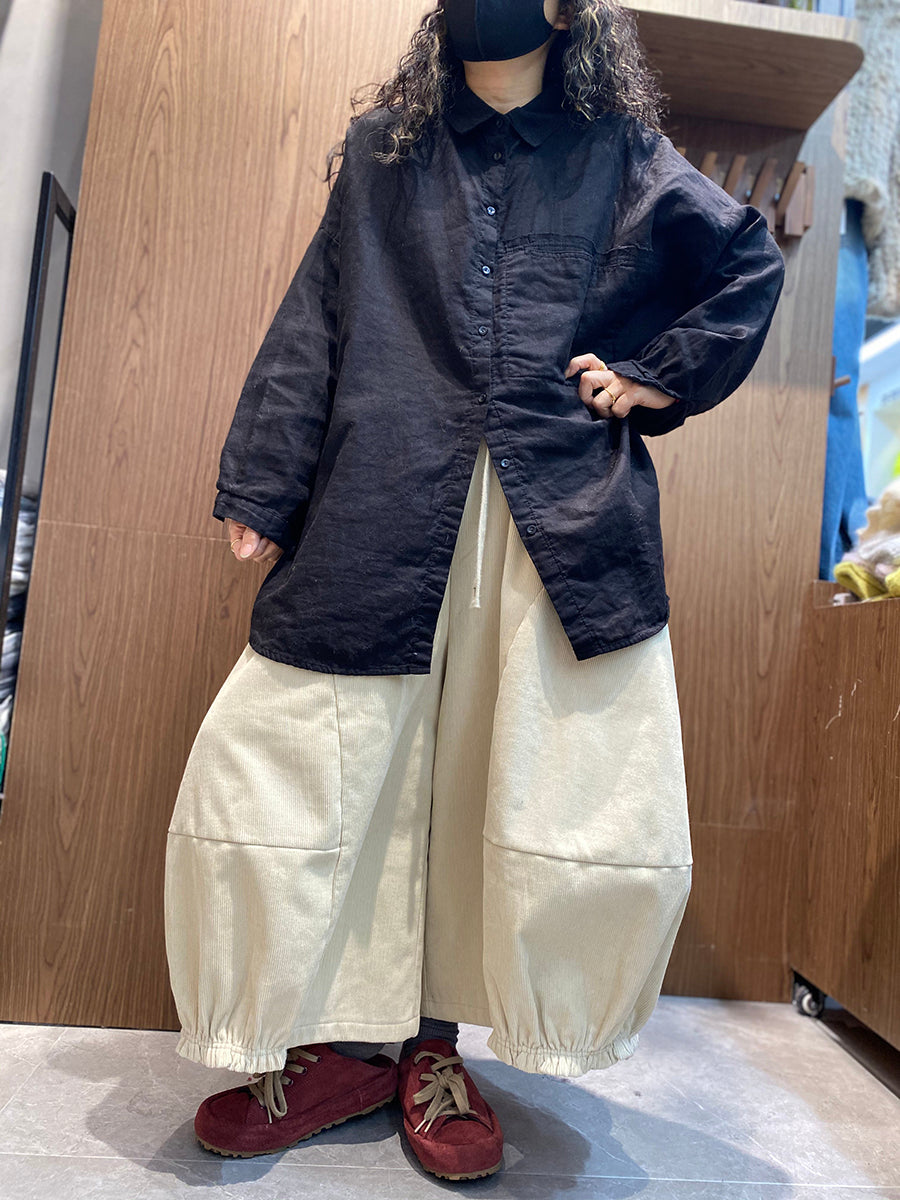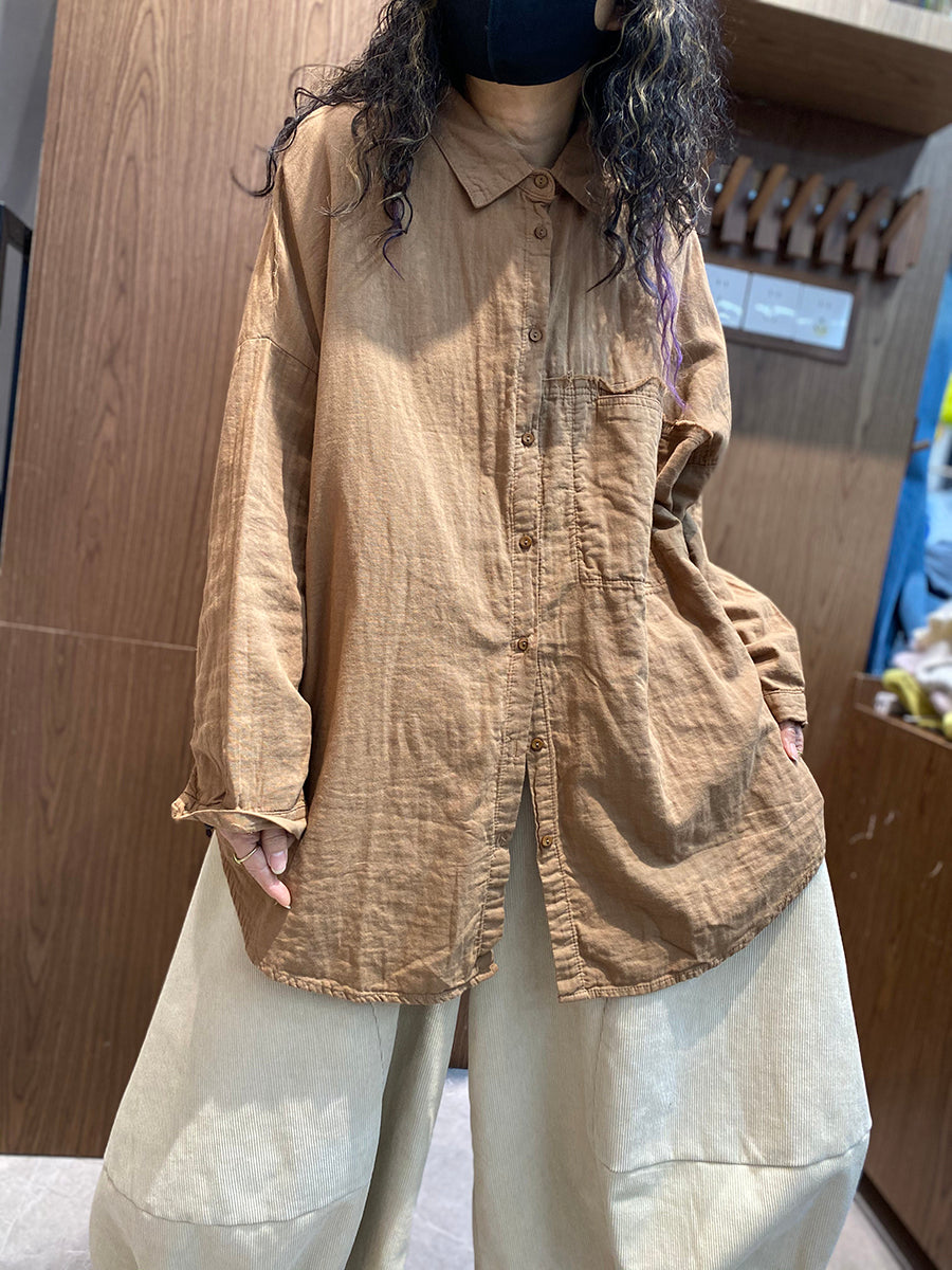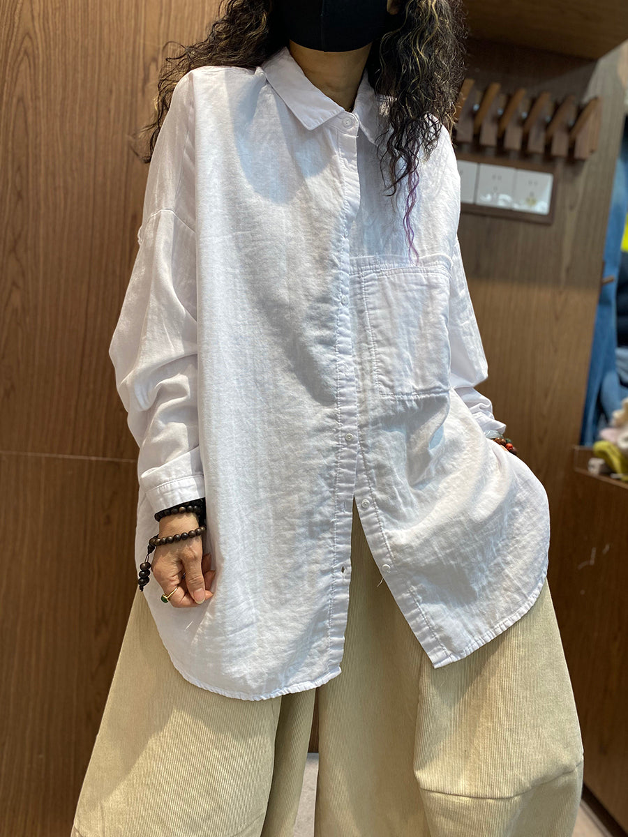 Women Spring Artsy Pure Color Turn-down Collar Shirt