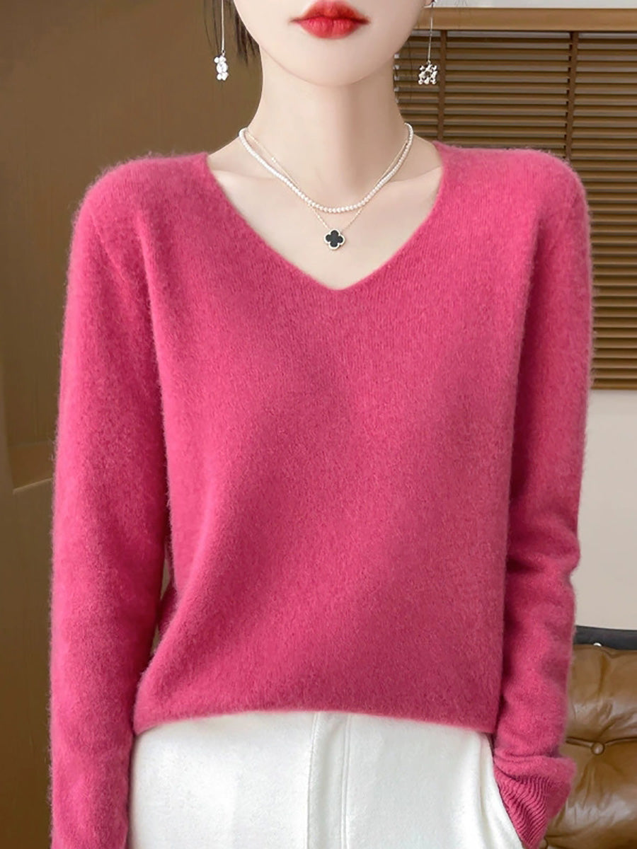 Women Spring Artsy Pure Color V-Neck Sweater