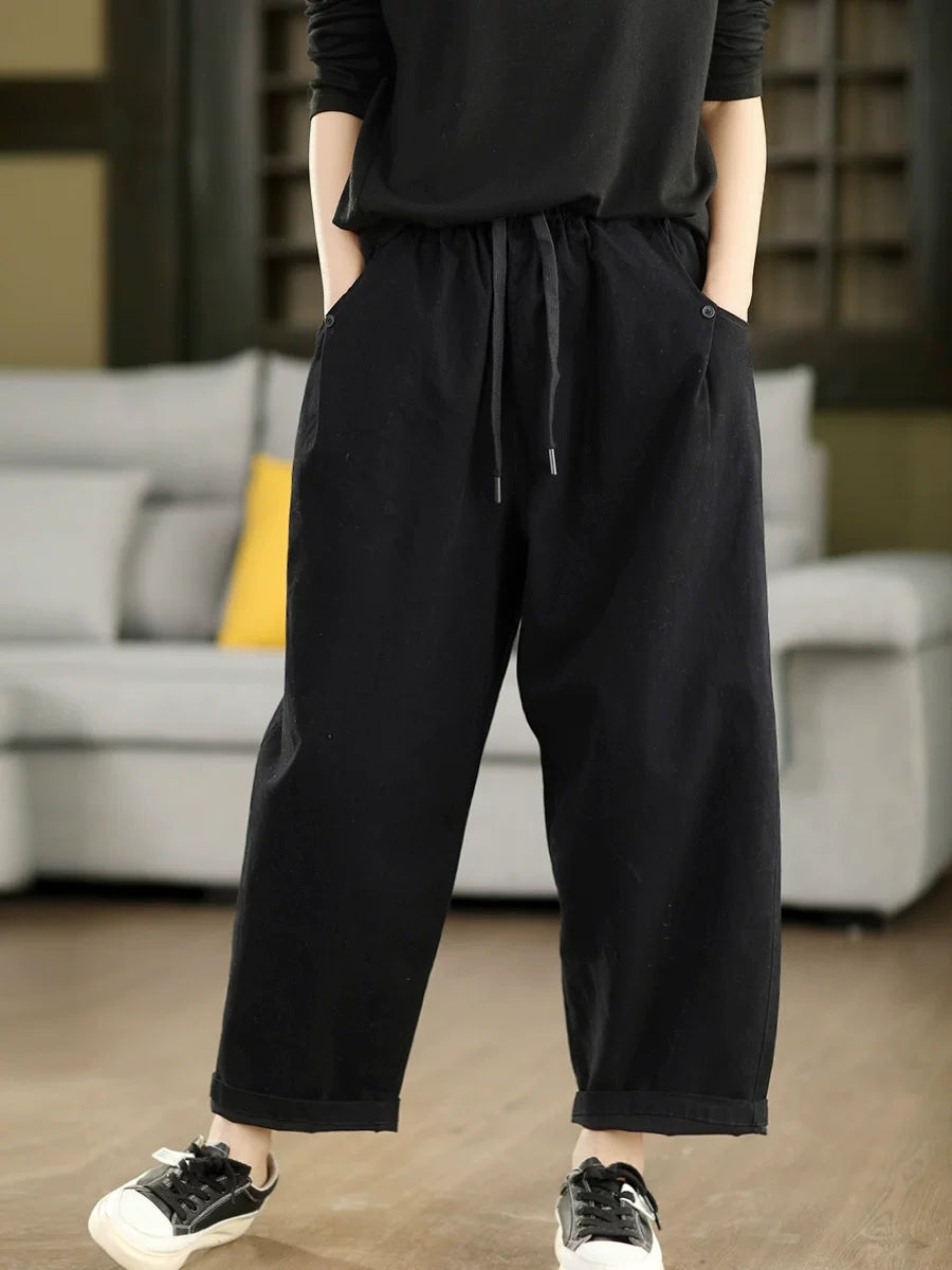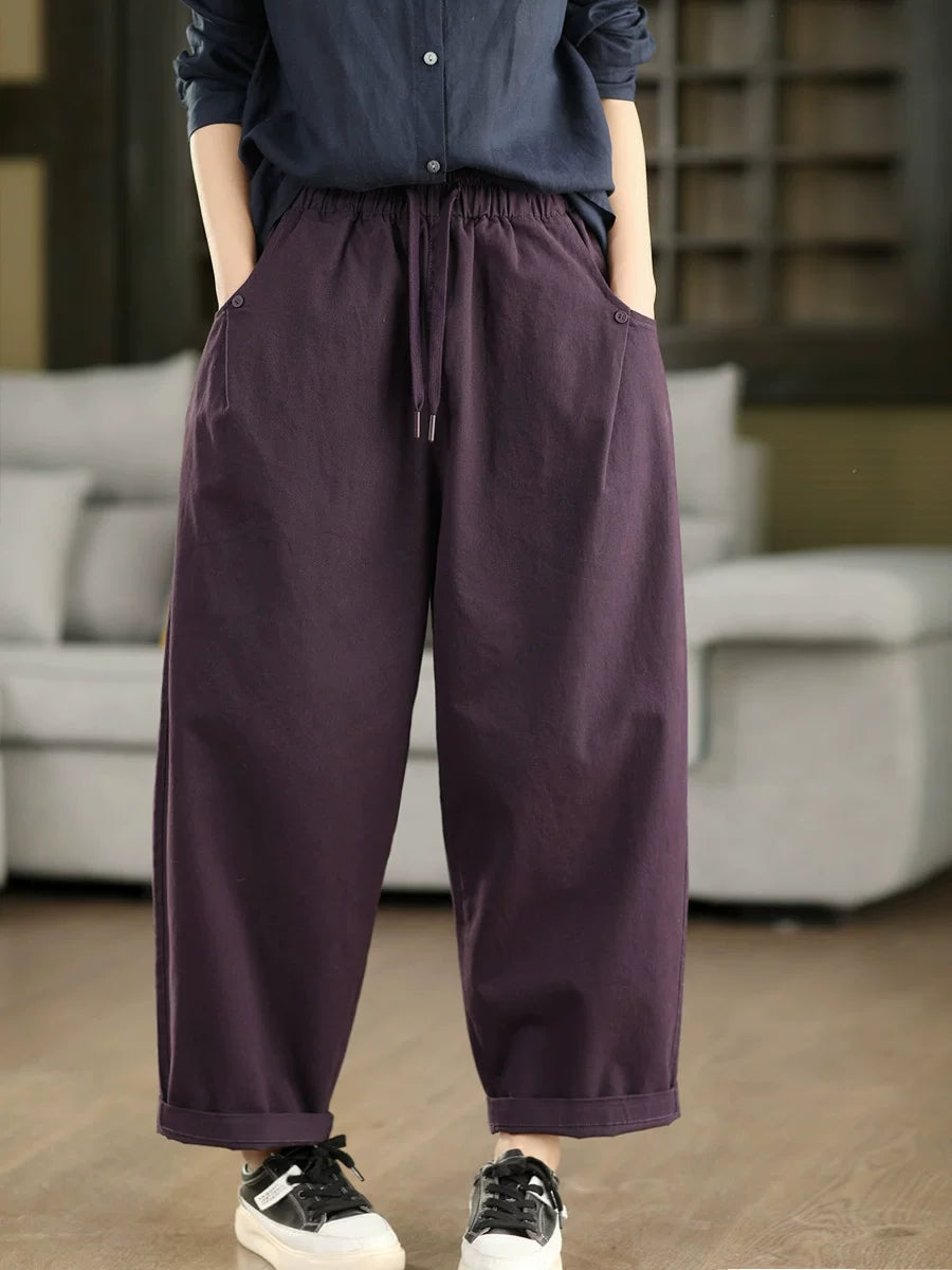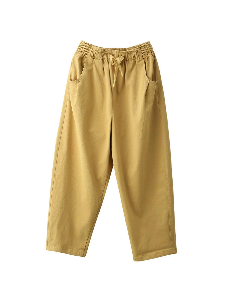 Women Spring Casual Pure Color 100%Cotton Harem Pants
