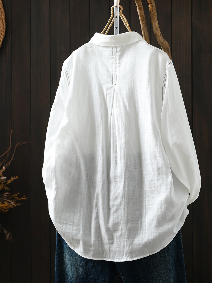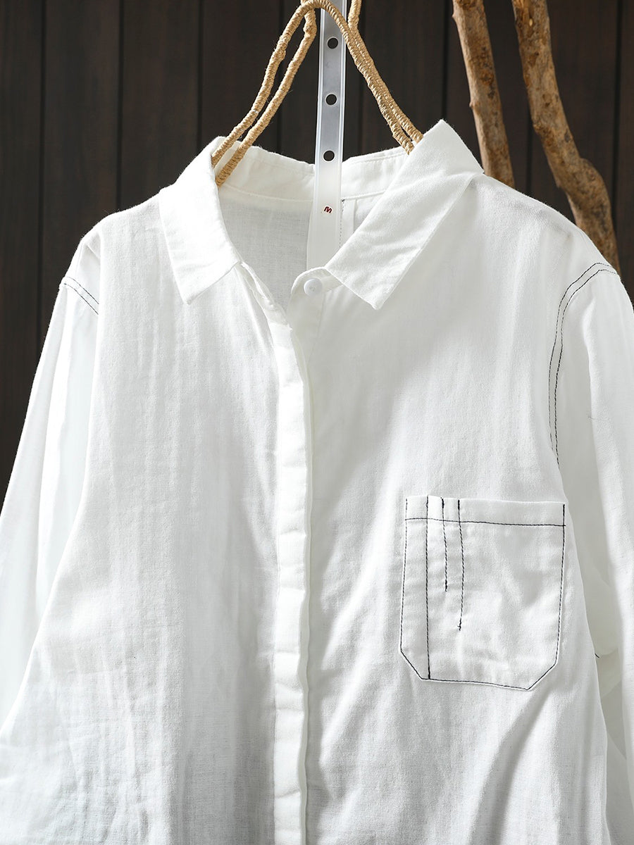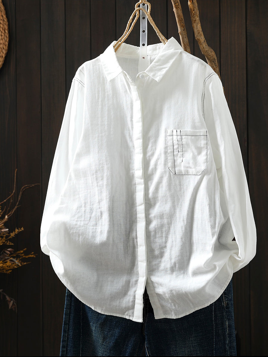 Women Spring Casual Pure Color 100%Cotton Shirt